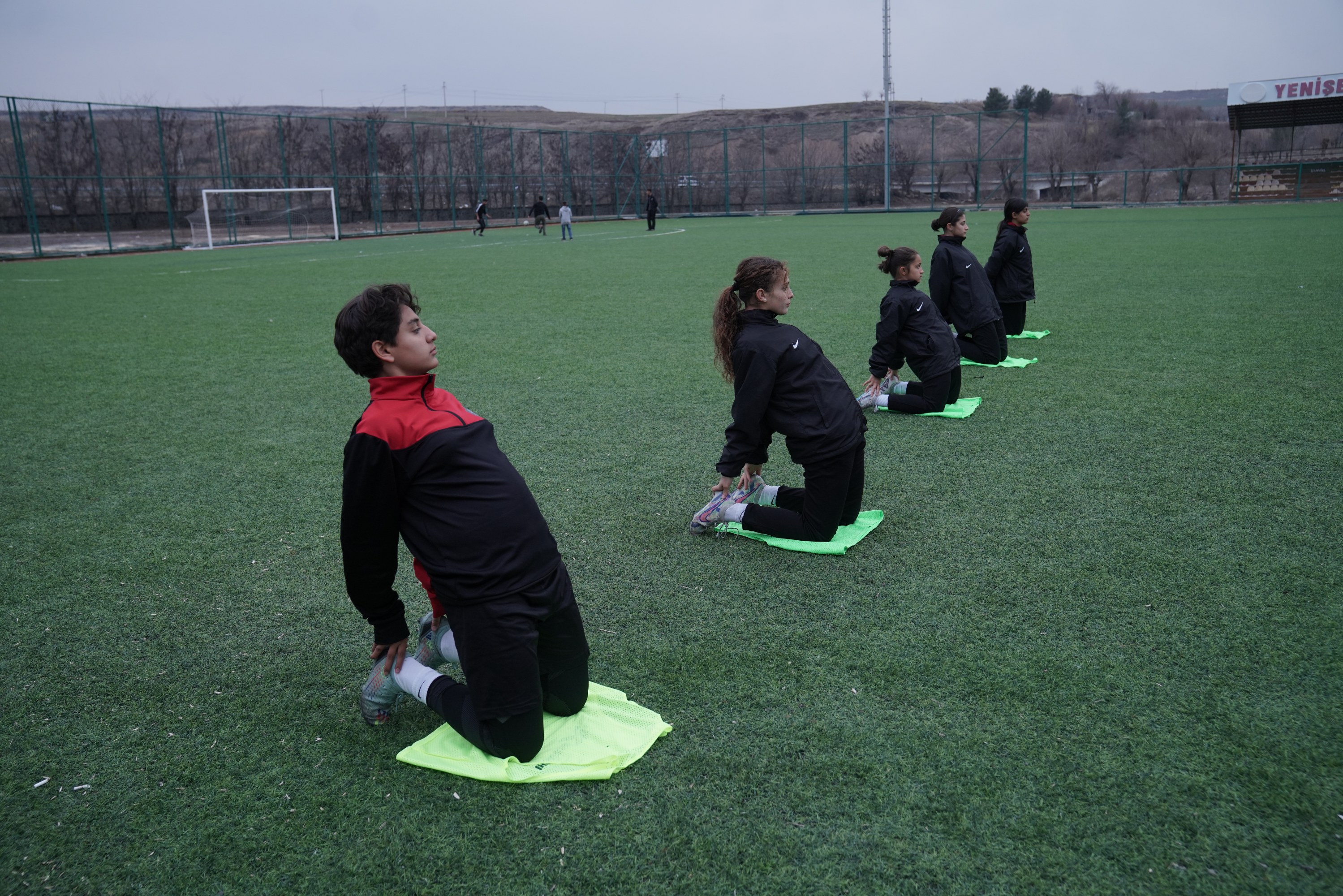 The Women’s Football Team began training one and a half months ago and carries out its sessions at the football field located in Karaköprü (Fidanlık) Social Life Park and Recreation Area. Most of the players in the team, aged between 14 and 19, are also students at sports high schools.