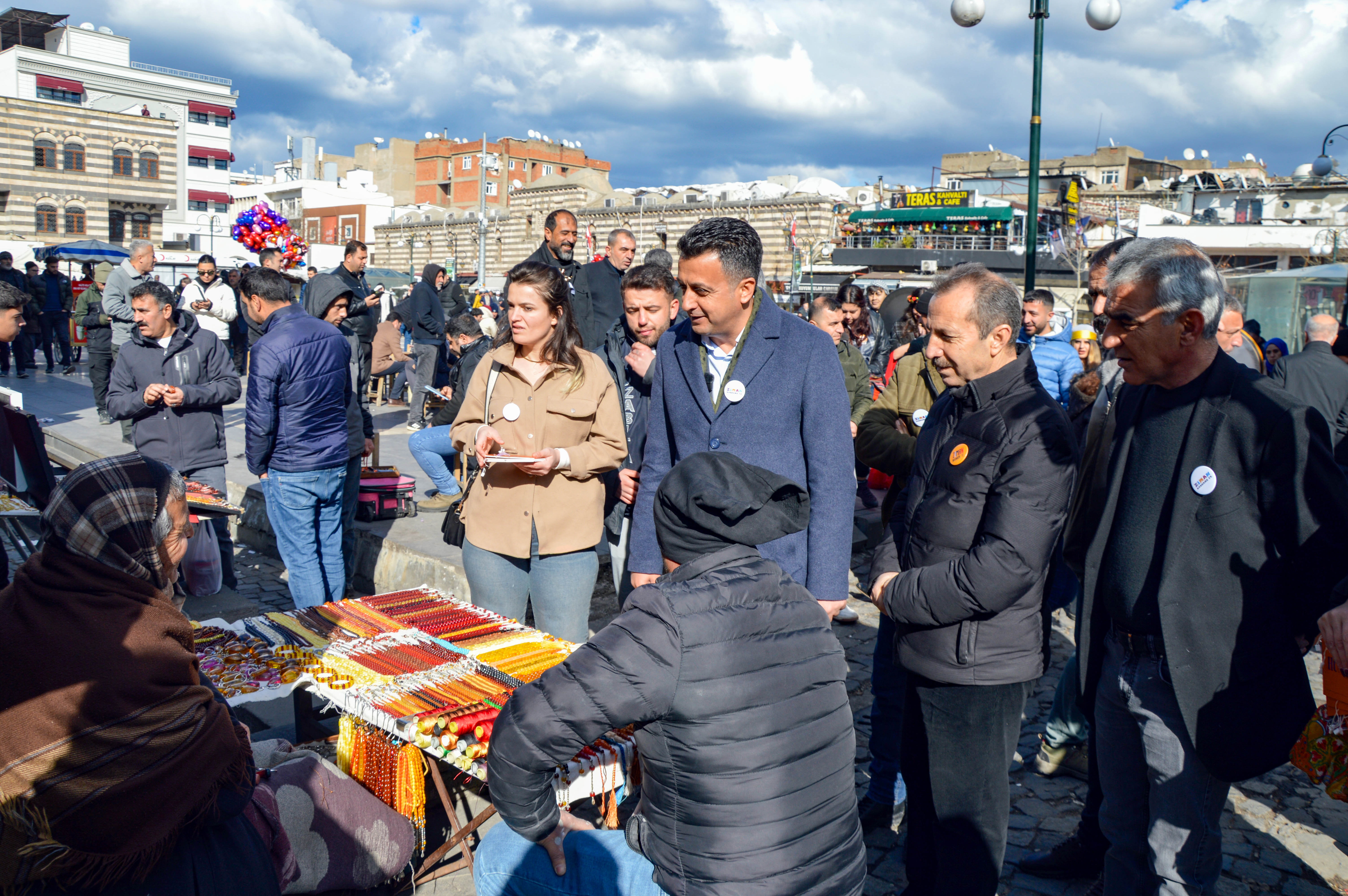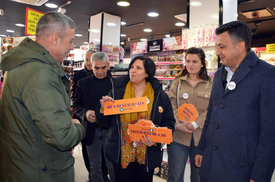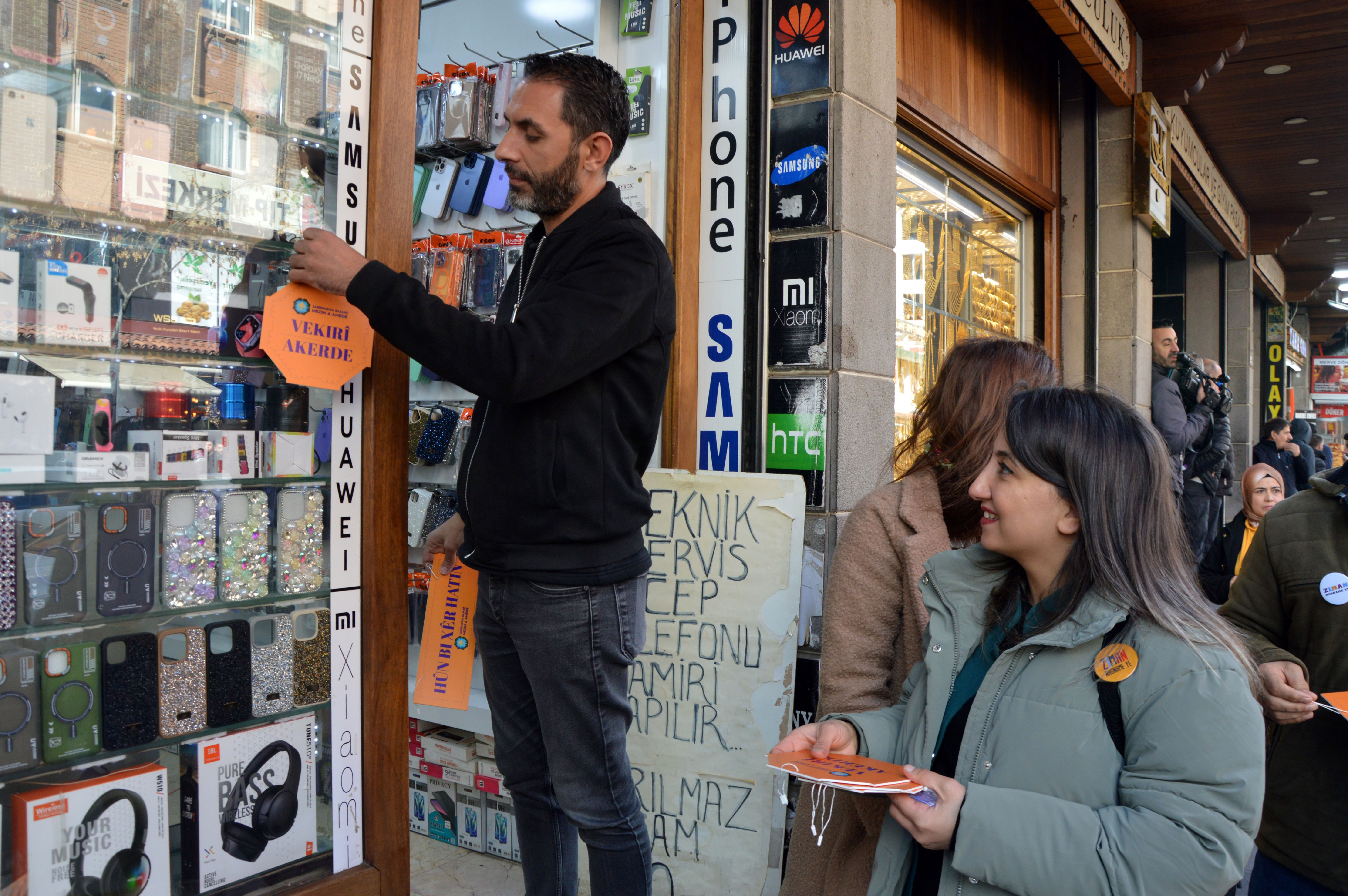 Sur Municipality Co-Mayor Örhan and the Metropolitan Municipality department heads conversed with the tradespeople, emphasised the importance of the mother language, and distributed the signs they had brought with them.