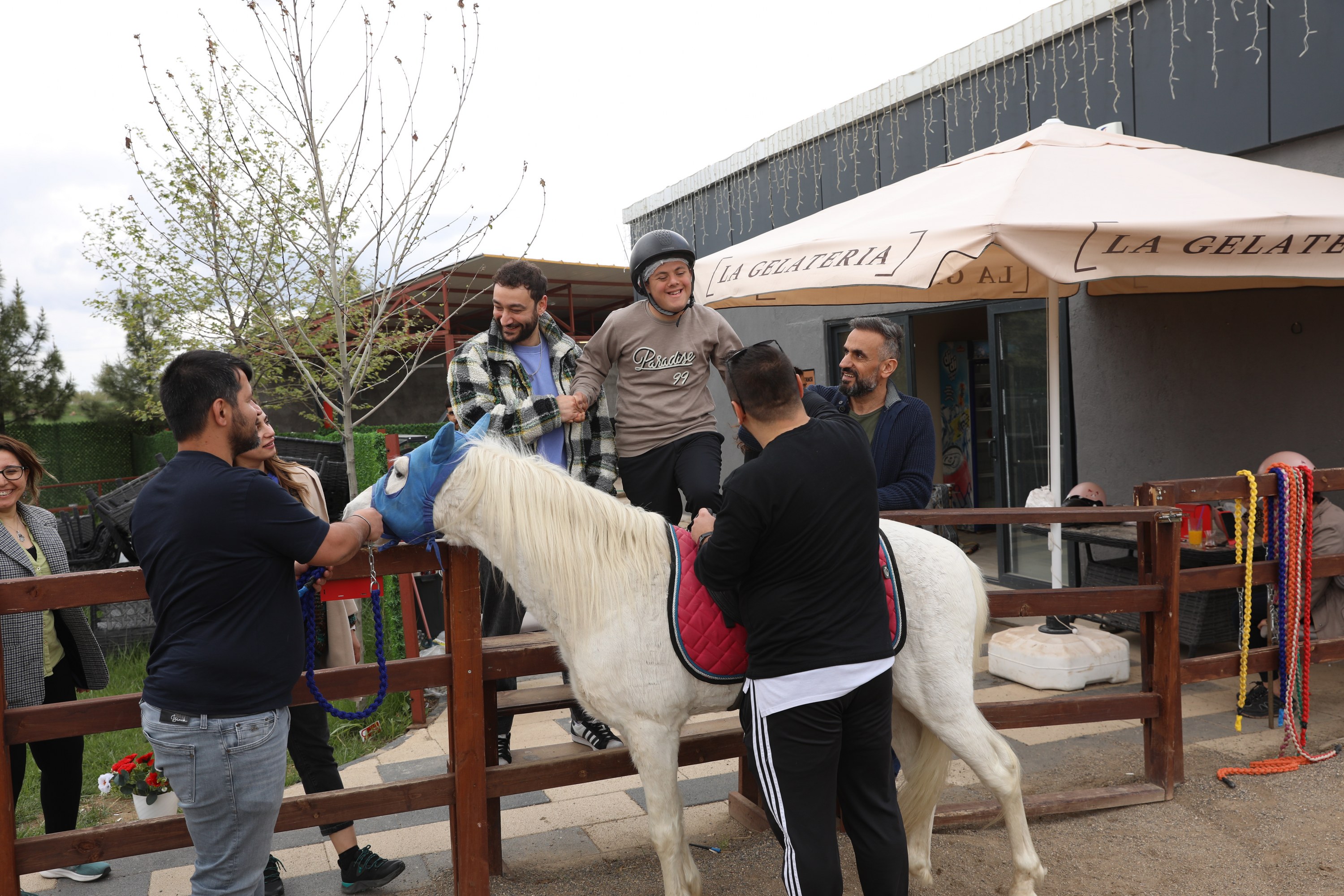 Collected from the Kayapınar Respite Home by service vehicle, the students spent an enjoyable day riding horses under the guidance of trainers at a private facility.