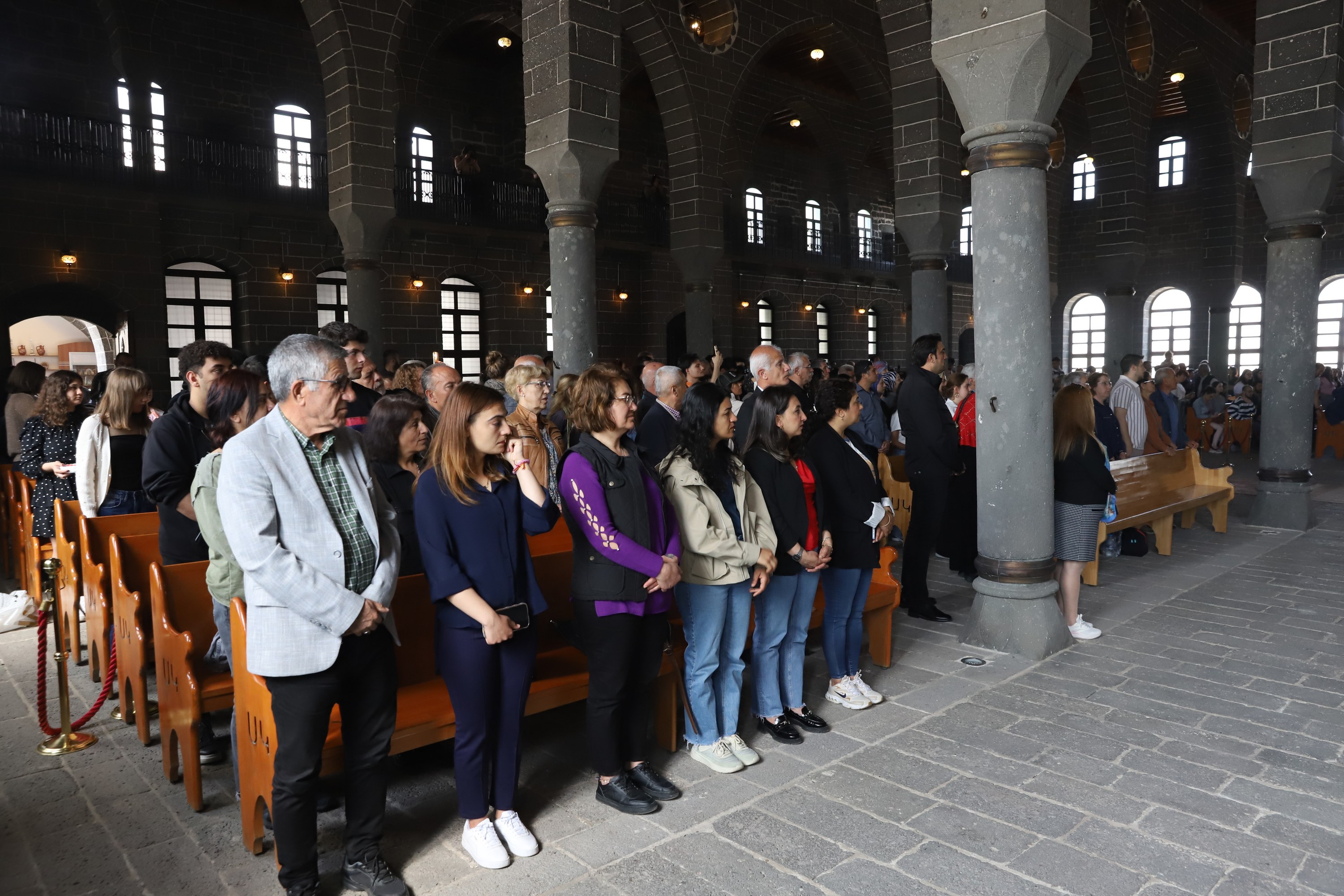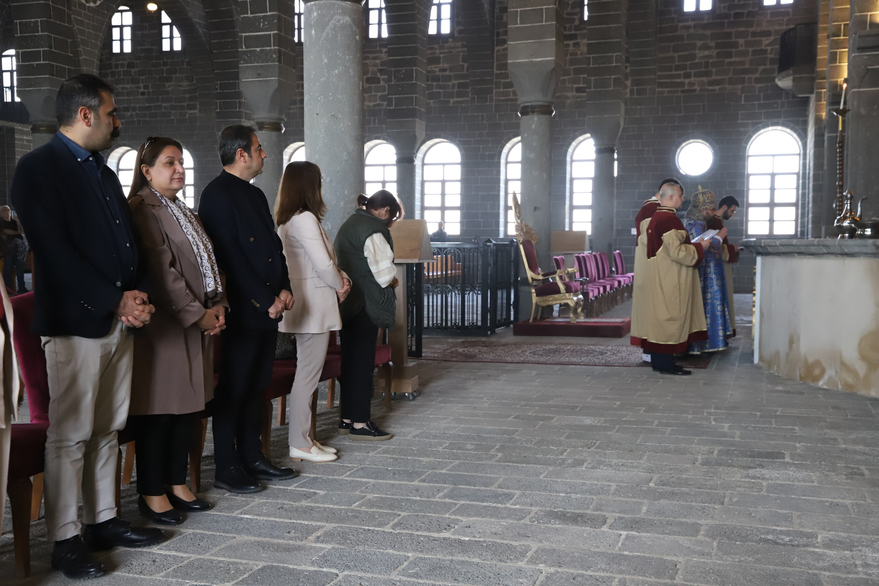 Diyarbakır Metropolitan Municipality Co-Mayors Serra Bucak and Doğan Hatun attended the Easter Mass held at the Surp Giragos Church.
