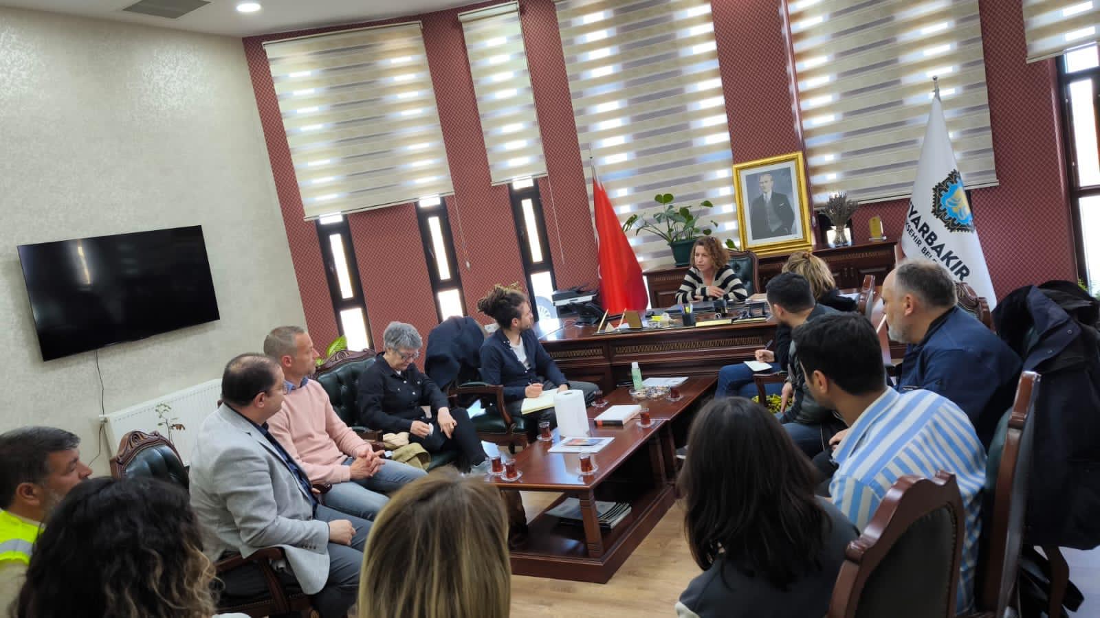 Coming from the city of Rennes in France, the delegation of the Brittany Kurdish Friendship Association visited the Department of Zero Waste and Climate Change of Diyarbakır Metropolitan Municipality. Evin Dinar, Head of the Department, shared the municipality’s work in the fields of environmental sustainability, zero waste and combating climate change with Association Chair Tony Rublon, board members, and Jeremie Chomette, Former President of the Danielle Mitterrand Foundation.