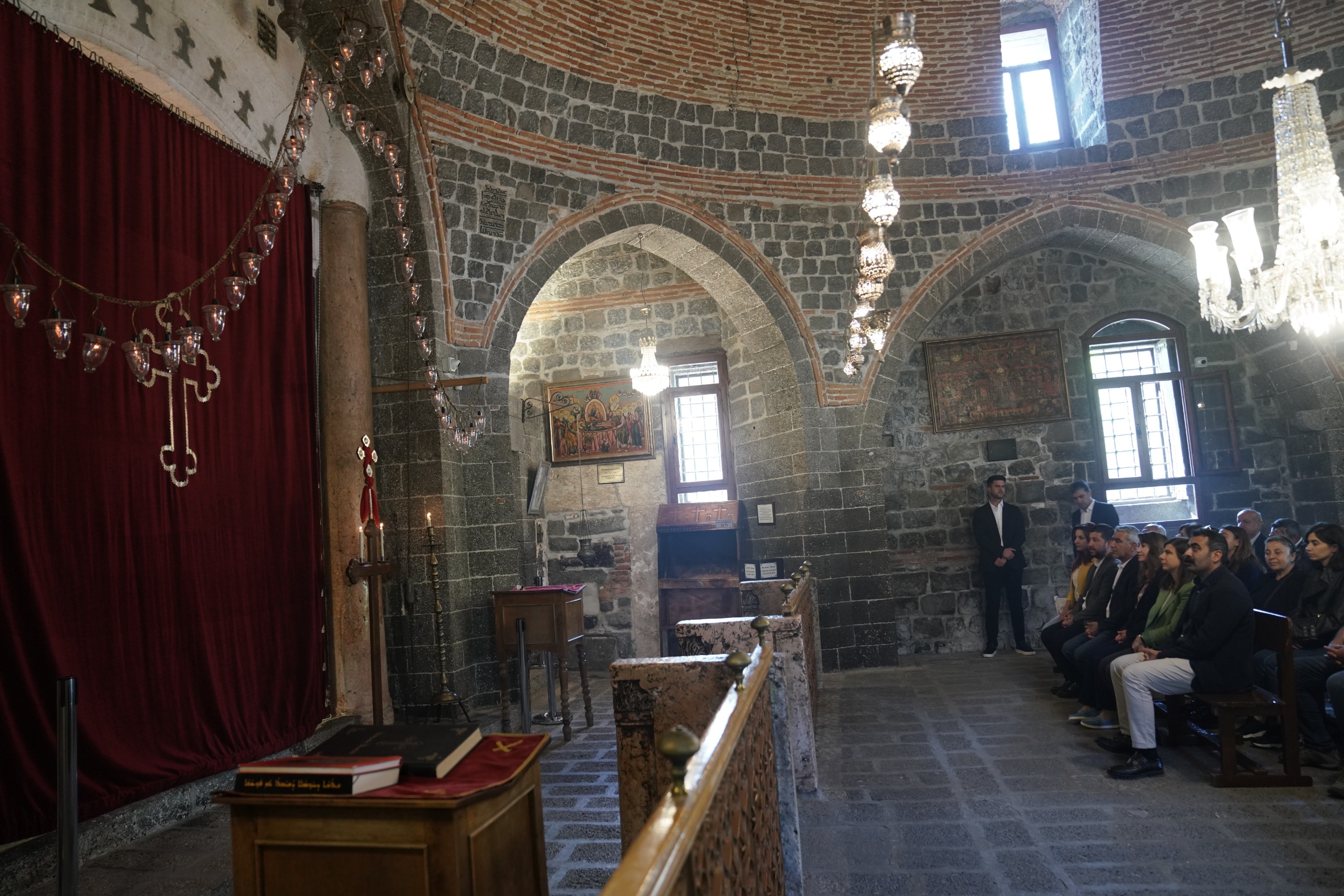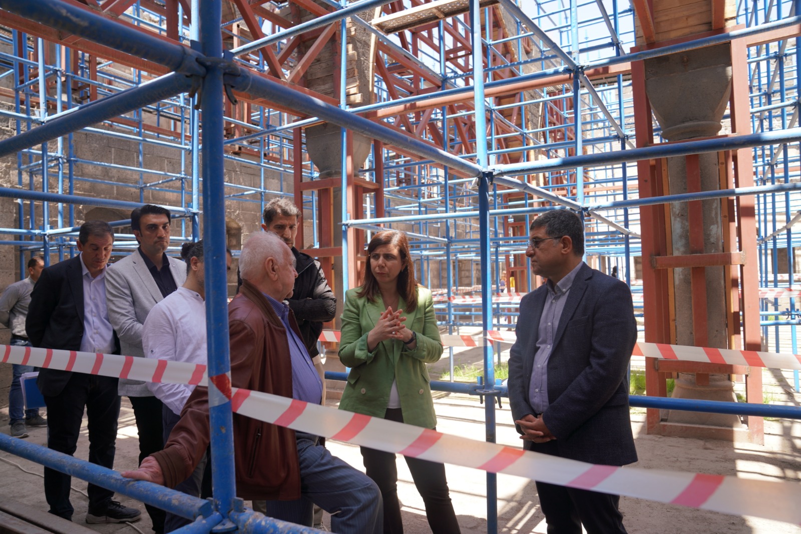 After the service, the Co-Mayors visited Surp Sarkis Church in the Alipaşa neighbourhood of Sur district, where restoration work has been ongoing for a year. Ergün Ayık, Chair of the Surp Giragos Armenian Church Foundation, provided the Co-Mayors with information about the church and the restoration process.