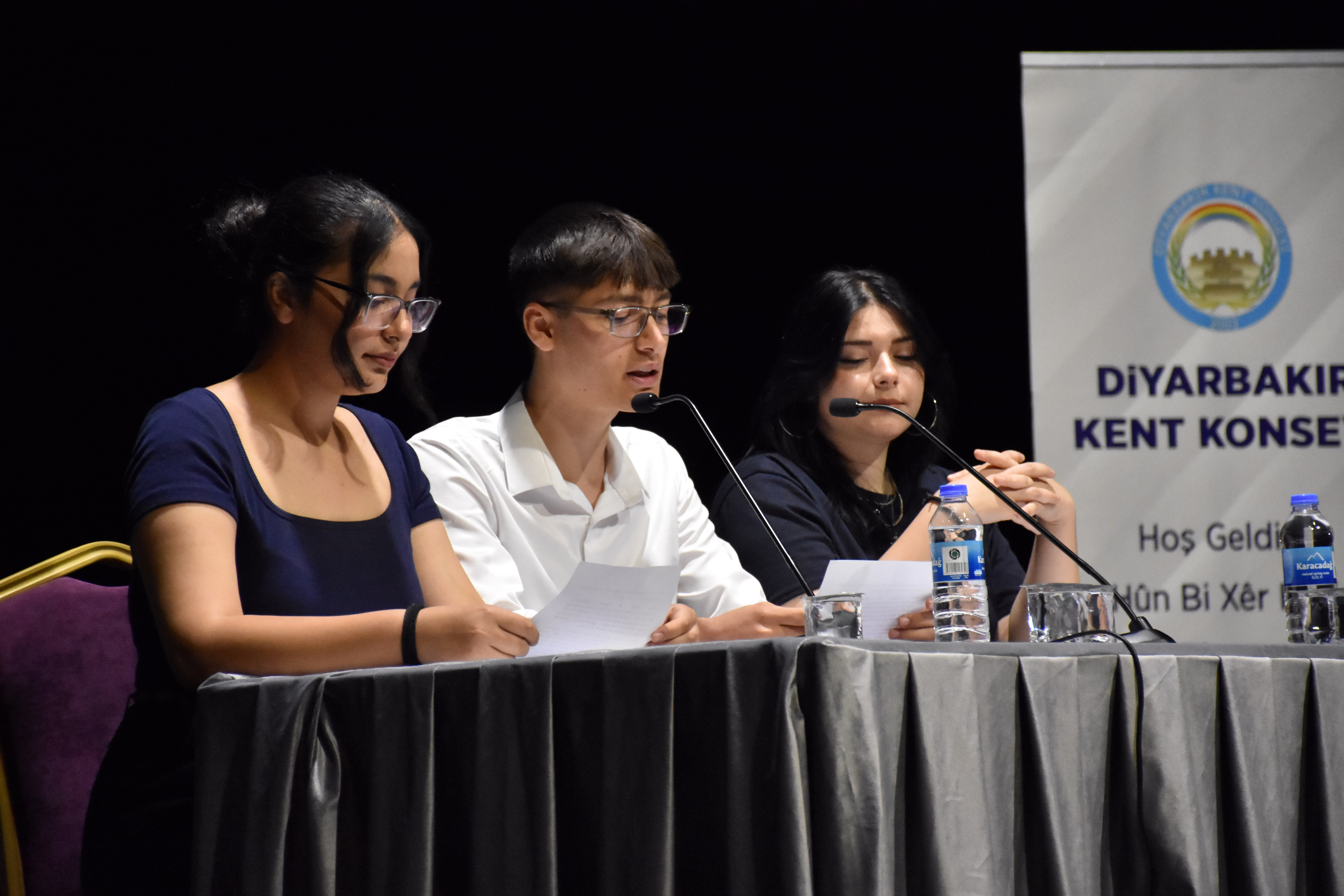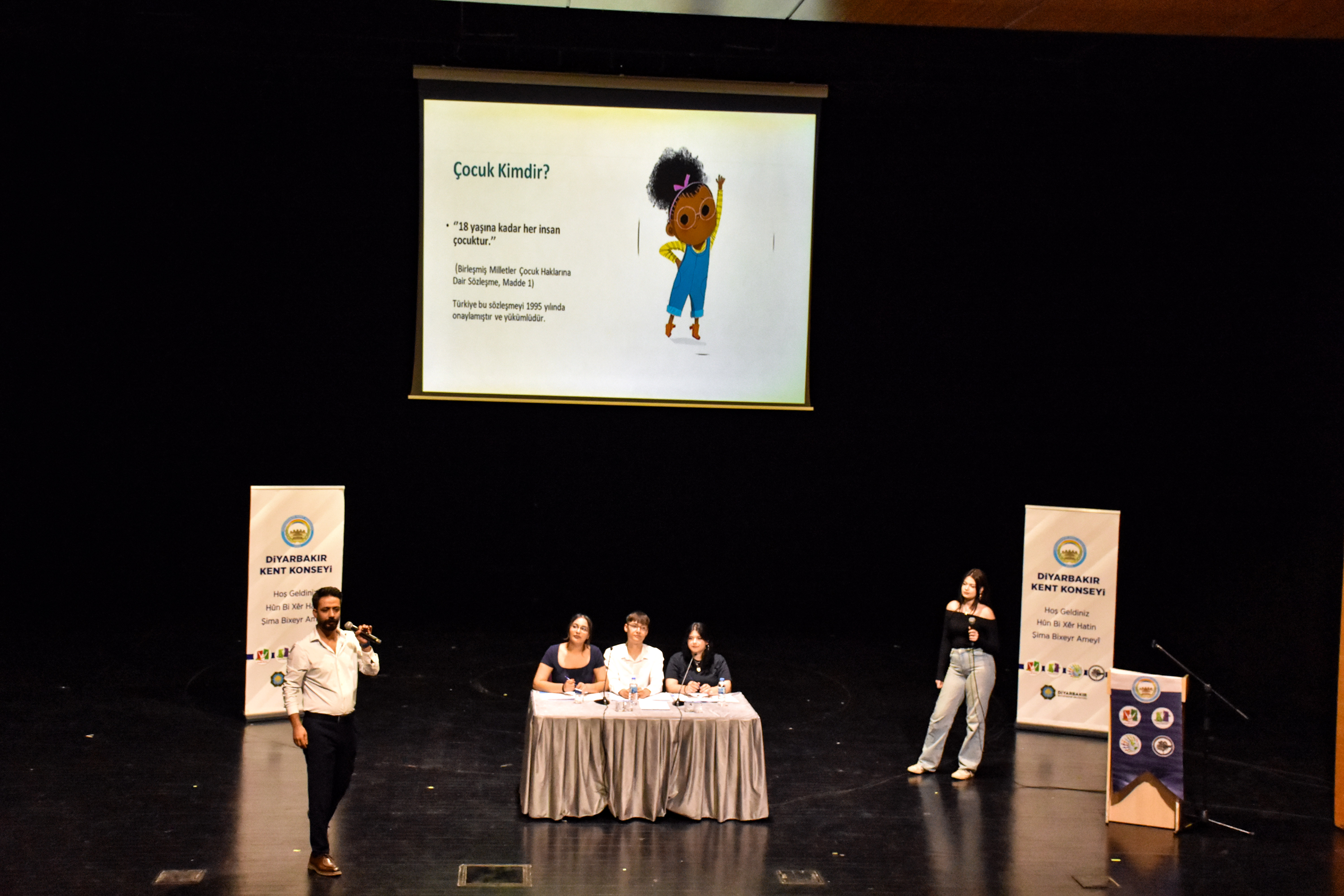 “Your presence here is very precious to us. For me, it is also very exciting. I am a municipal co-mayor who, for many years, has worked with children like you, children of your age. For many years, together with you and with friends like you, we carried out work in municipalities, children’s institutions and children’s associations in the field of children’s rights and in many other areas. Today, I would also like to thank everyone who has contributed, the Amed Children’s Rights Network and the Diyarbakır Children’s Rights Network. To all of you here today who fill this hall as members of the Children’s Assembly, who say, ‘I too am a member, I too have a voice, I too have things to say,’ I want to say: thank you for being here.”