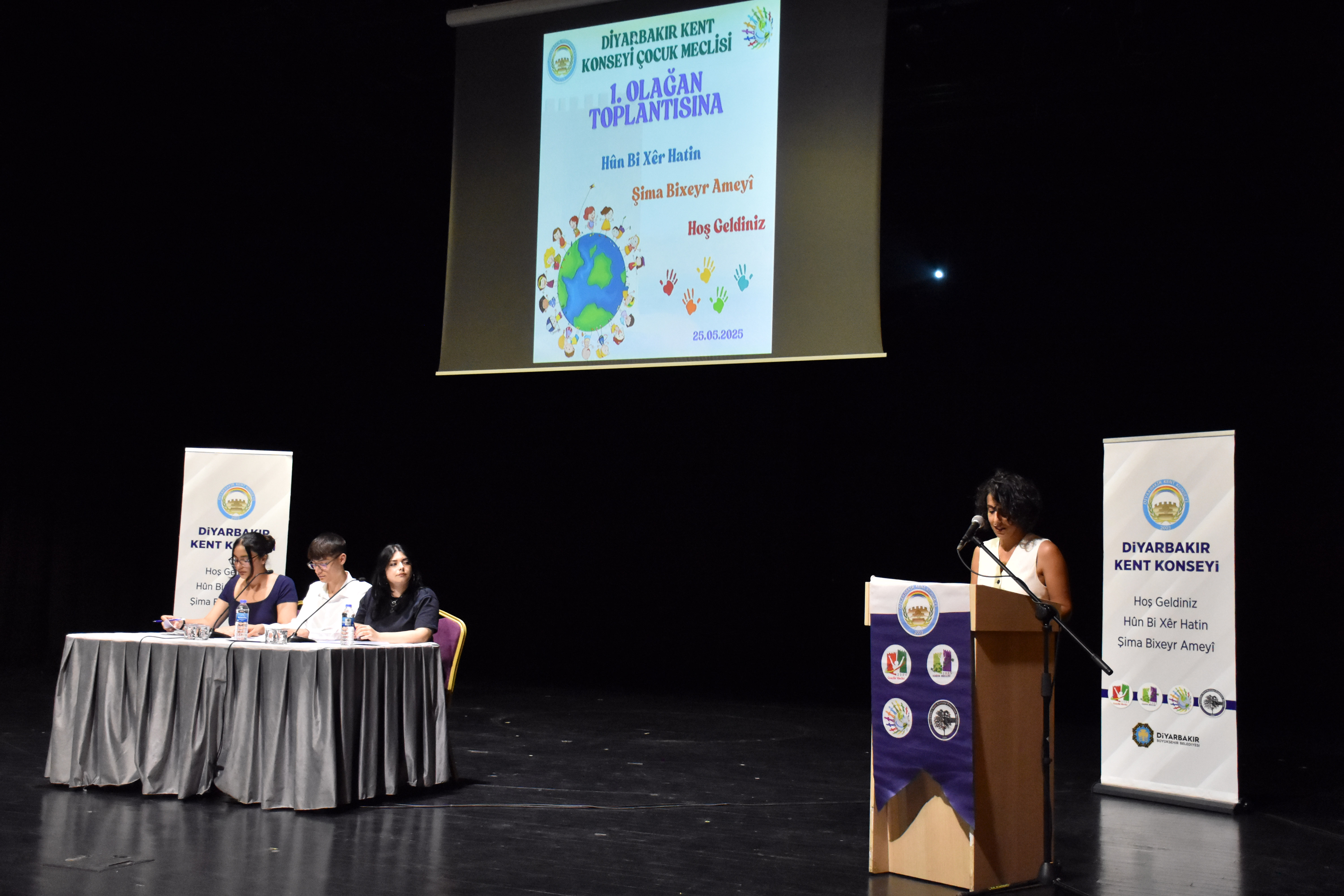 Diyarbakır City Council has established the Children’s Assembly to support children’s active participation in urban life and to make Diyarbakır a child-friendly city. The 1st Ordinary Meeting of the Children’s Assembly was held at the Çand Amed Culture and Congress Centre with the participation of Diyarbakır Metropolitan Municipality Co-Mayor Serra Bucak, district municipality co-mayors, children aged 9–15 and their families, and members of the City Council Executive Board.