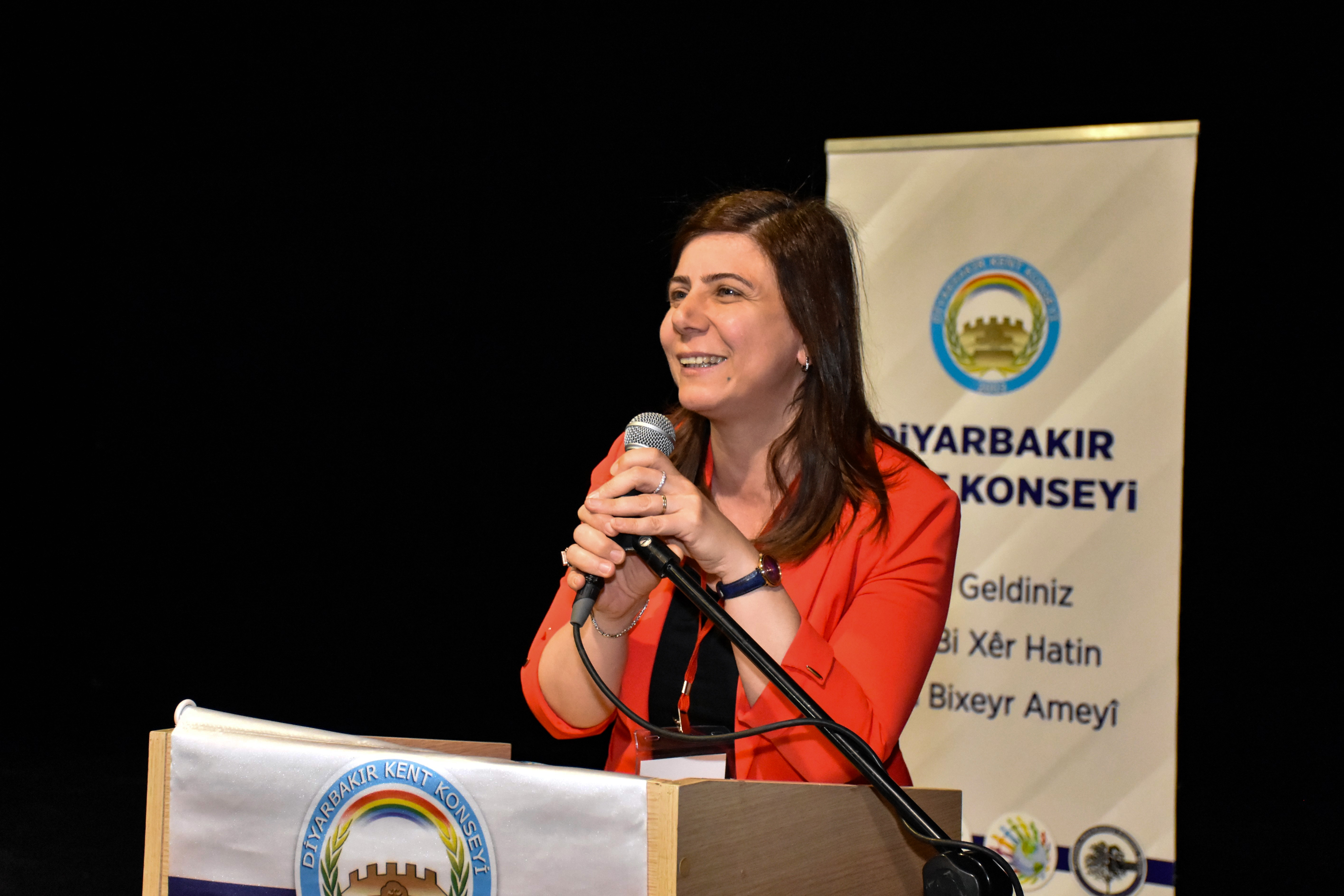 Co-Mayor Serra Bucak began her speech by greeting the audience in Kurdish and Turkish. She said: