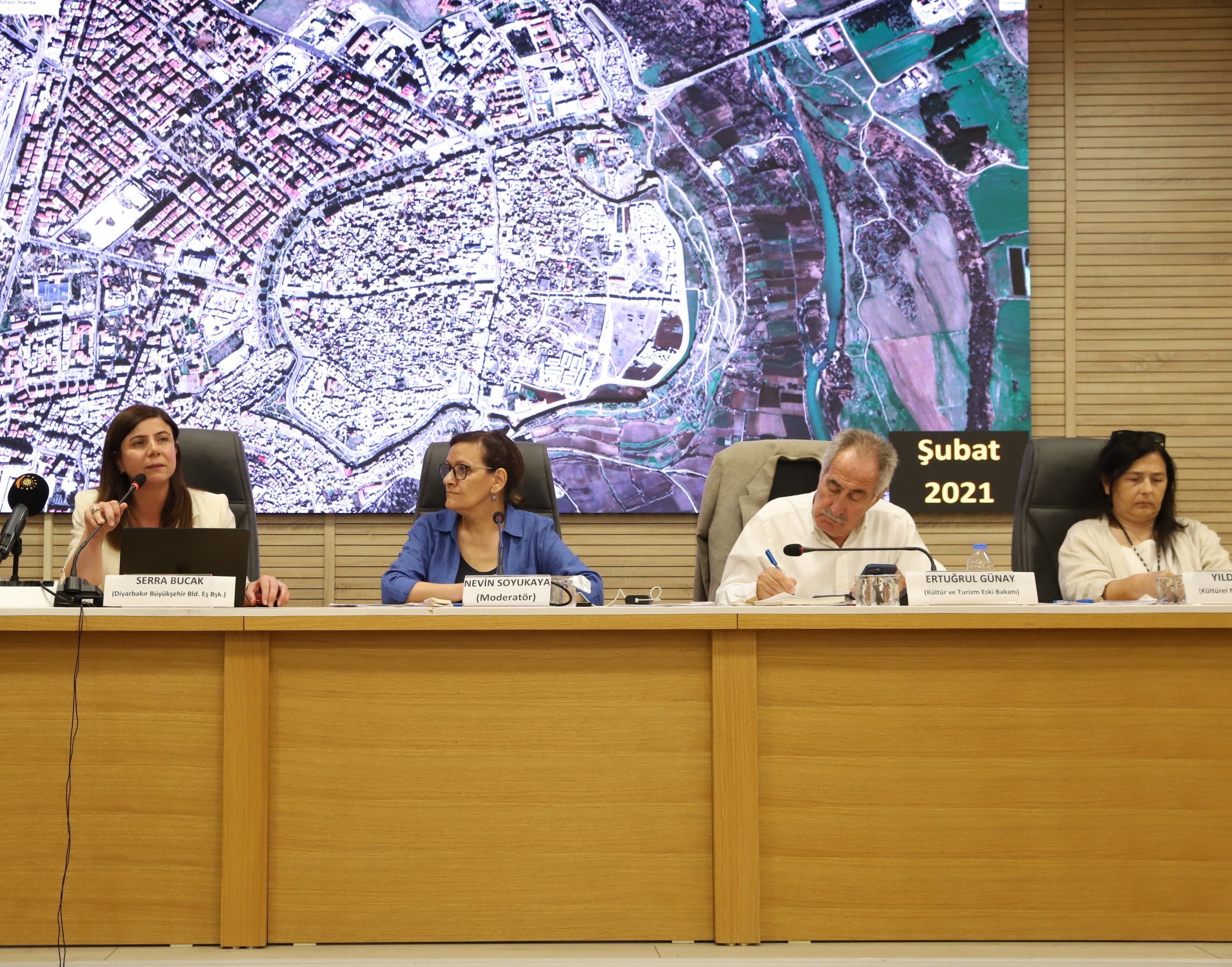 At the meeting, moderated by archaeologist Nevin Soyukaya, Co-Mayor Bucak gave a presentation entitled “Institutional Authority and Implementation Problems in Site Management.”