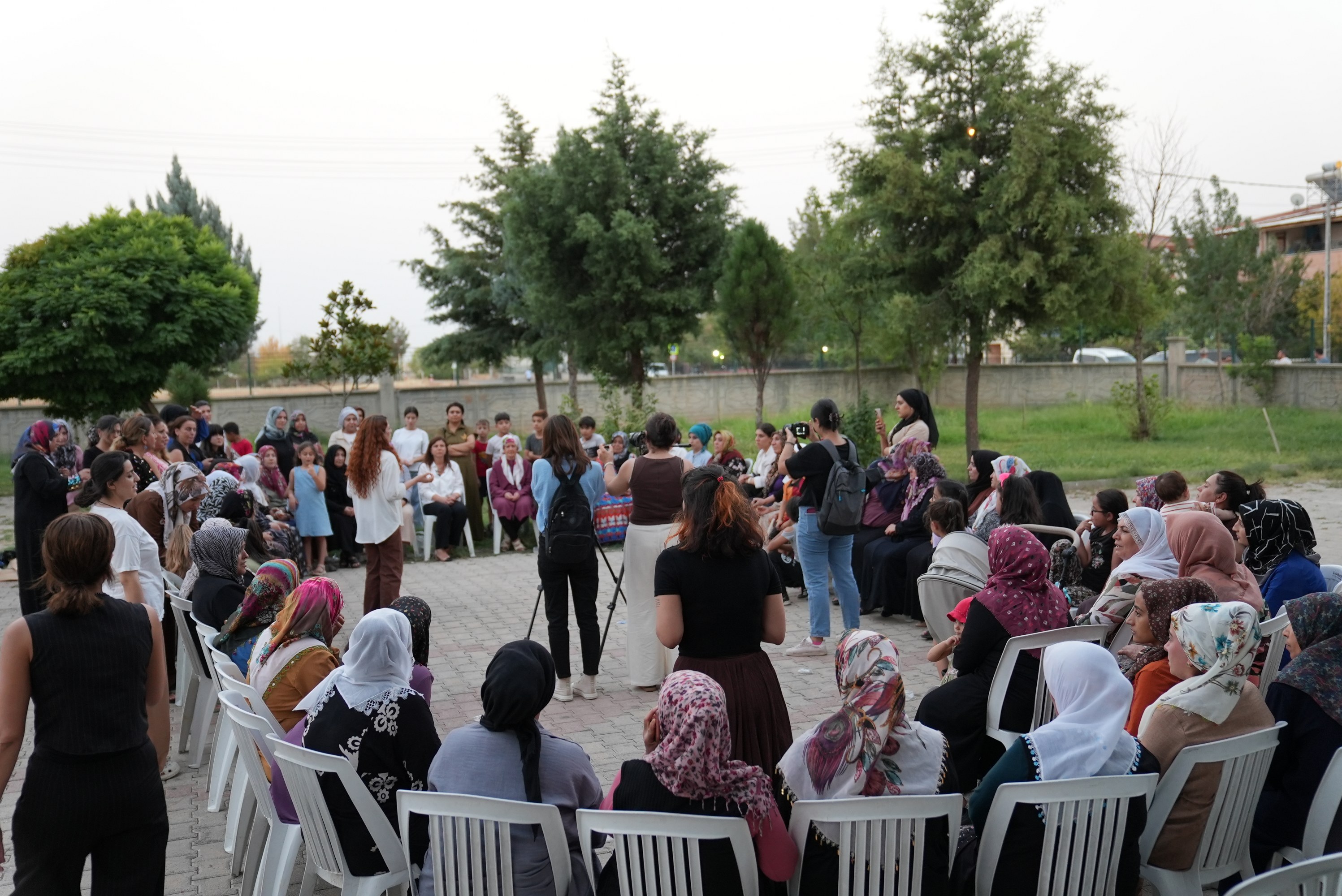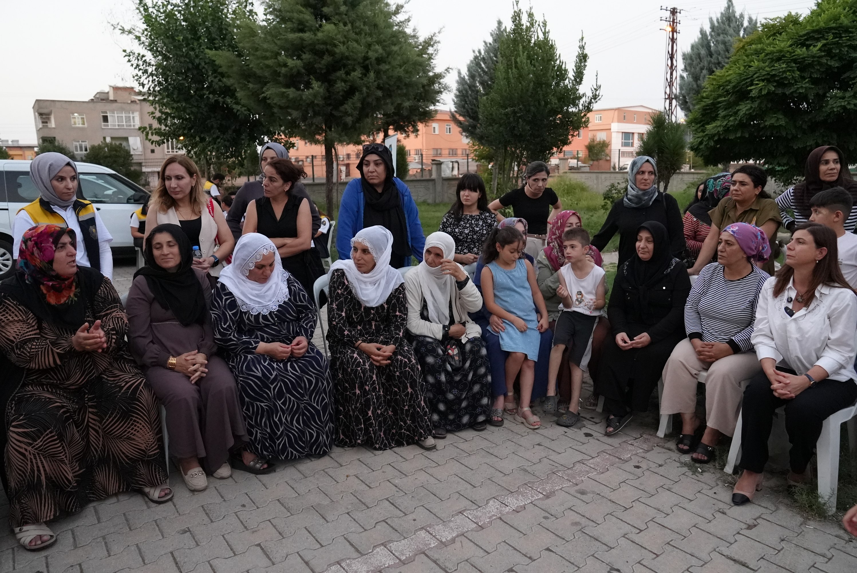 The Department of Women and Family Services continues its neighbourhood meetings to enable women to directly share their problems, needs, and demands. Within this framework, a women’s gathering was held in Şehitlik neighbourhood of Yenişehir district with the participation of Co-Mayor Serra Bucak, municipal council members, Head of the Department of Women and Family Services Özden Gürbüz Sümer, and staff from DİKASUM. The gathering drew great interest from local women.