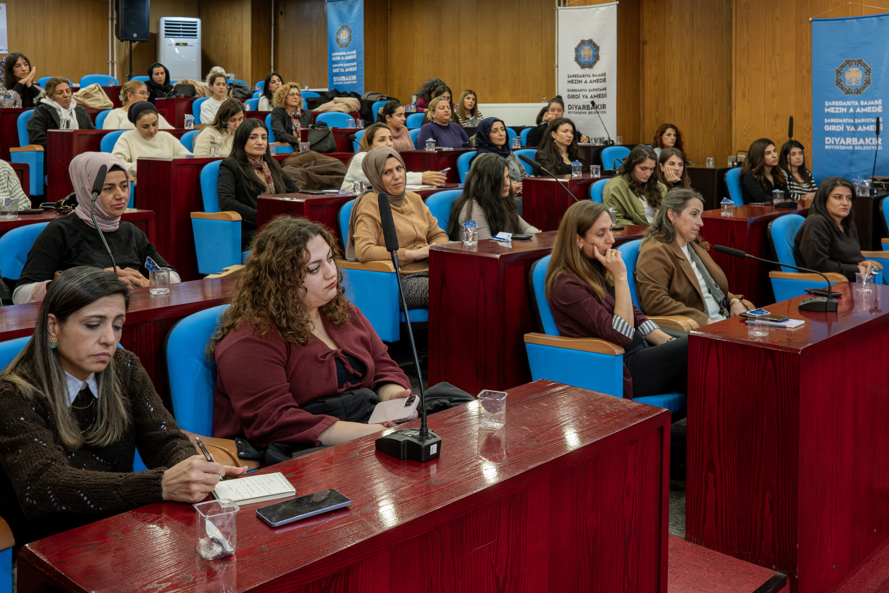 Diyarbakır Metropolitan Municipality Co-Mayor Serra Bucak met with women workers employed by the Department of Women and Family Services, saying: “With our own colours and our own identity as women, we are striving to exist in local government—and to truly turn this city into a city for women.”