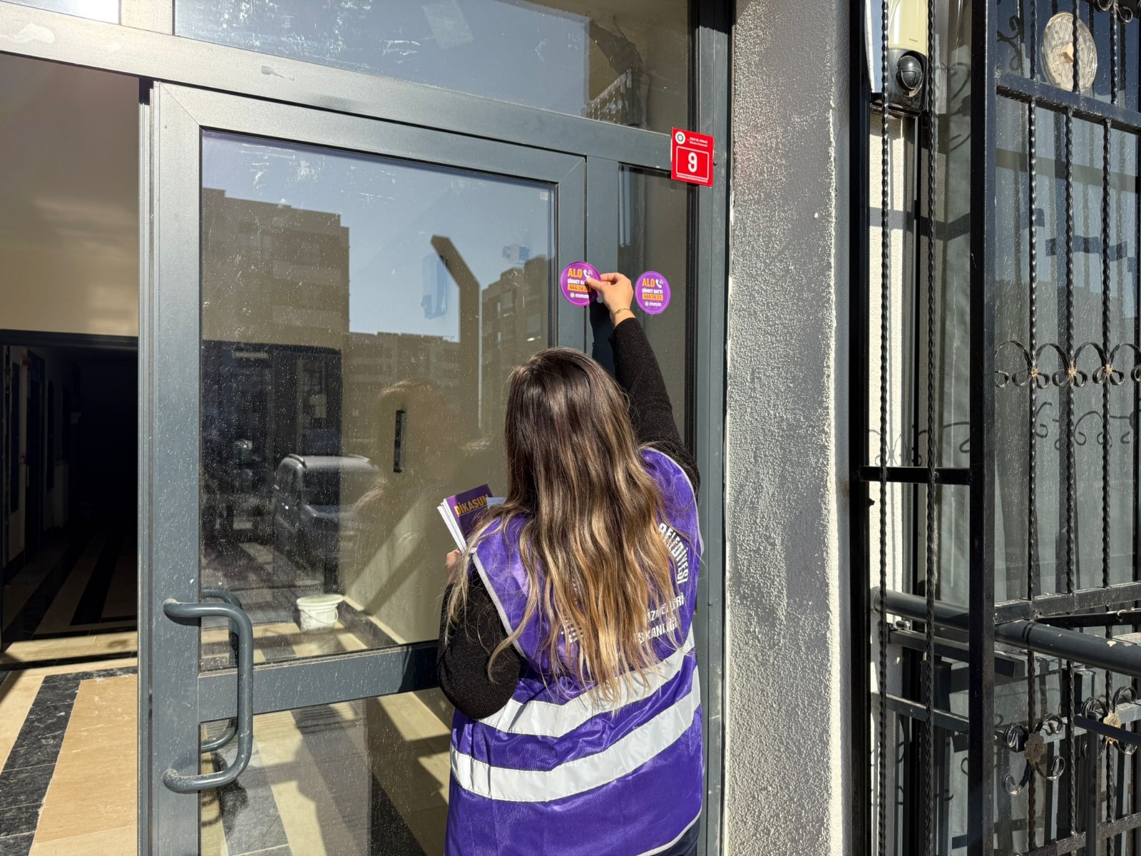 To increase awareness of the 444 36 21 Alo Violence Hotline, which women can contact in emergencies, warning stickers were placed across the city—particularly at bus stops and in other high-visibility locations. The work will continue in these neighbourhoods to ensure wider access to information.