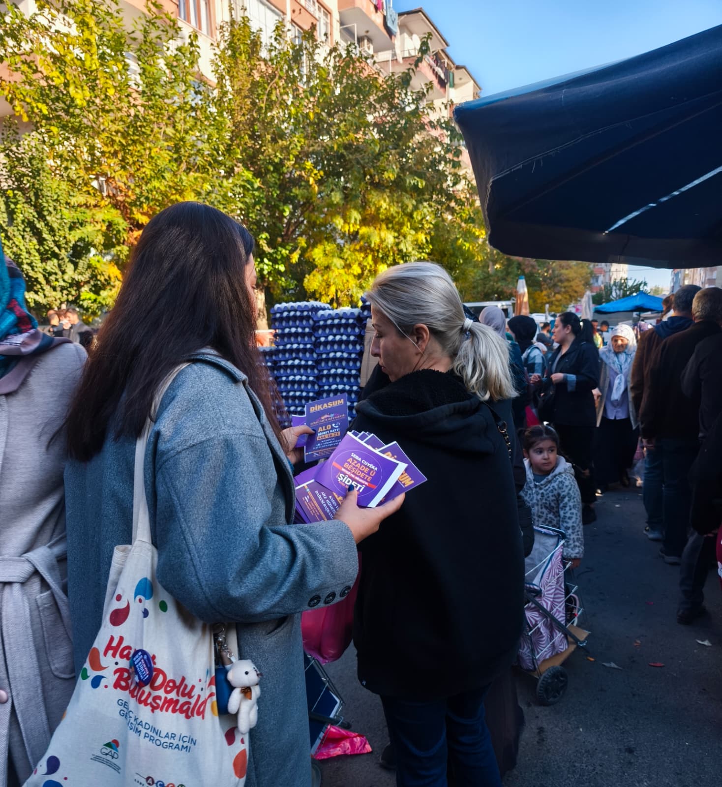 Field activities were conducted at several locations in Bağlar district—including the Health Centre Market area, the neighbourhood market on Hatboyu Street, and Oğlaklı neighbourhood—to underline that violence in any form is unacceptable and to increase the visibility of support services women can turn to when needed. The outreach in Oğlaklı was carried out jointly with the Bağlar Municipality Women’s Unit, reaching many women. Informational leaflets were distributed and, through face-to-face engagement, women were informed about the steps to take and the application routes available in cases of violence.