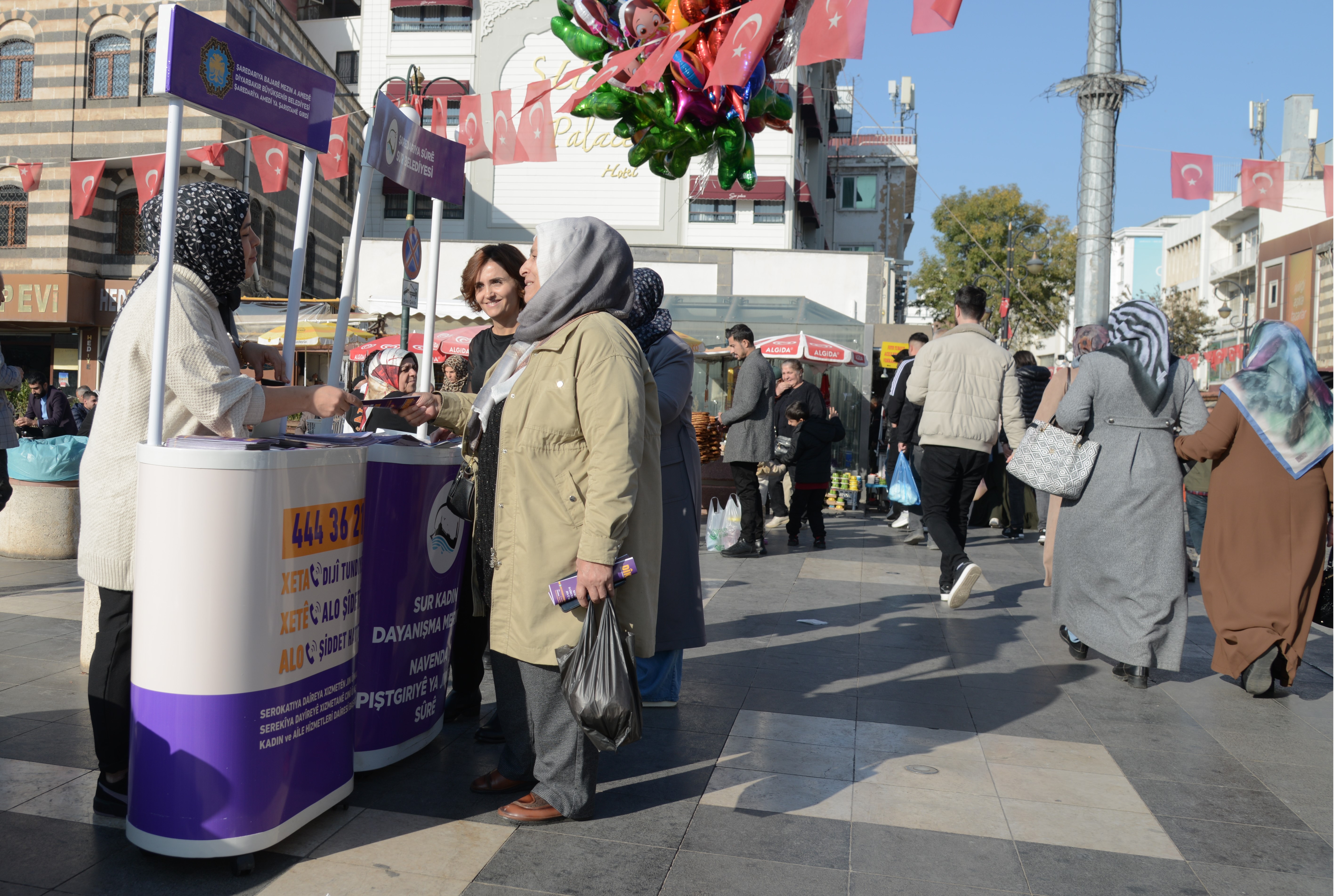 Ahead of 25 November, the International Day for the Elimination of Violence against Women, Diyarbakır Metropolitan Municipality carried out outreach activities across the city to make support mechanisms more visible and to reach large numbers of women. The outreach included comprehensive information on all available routes of support that women can access in the face of violence.