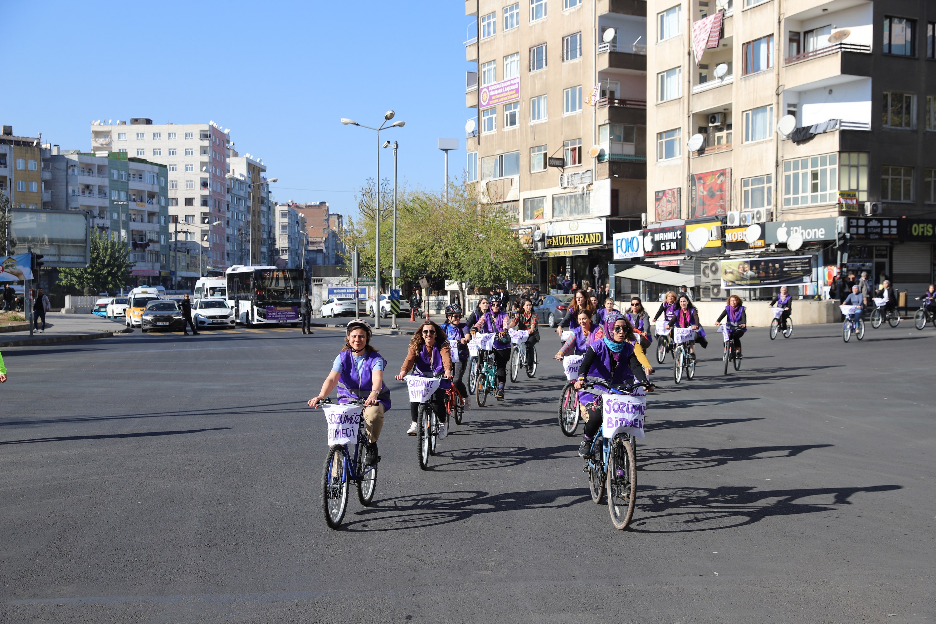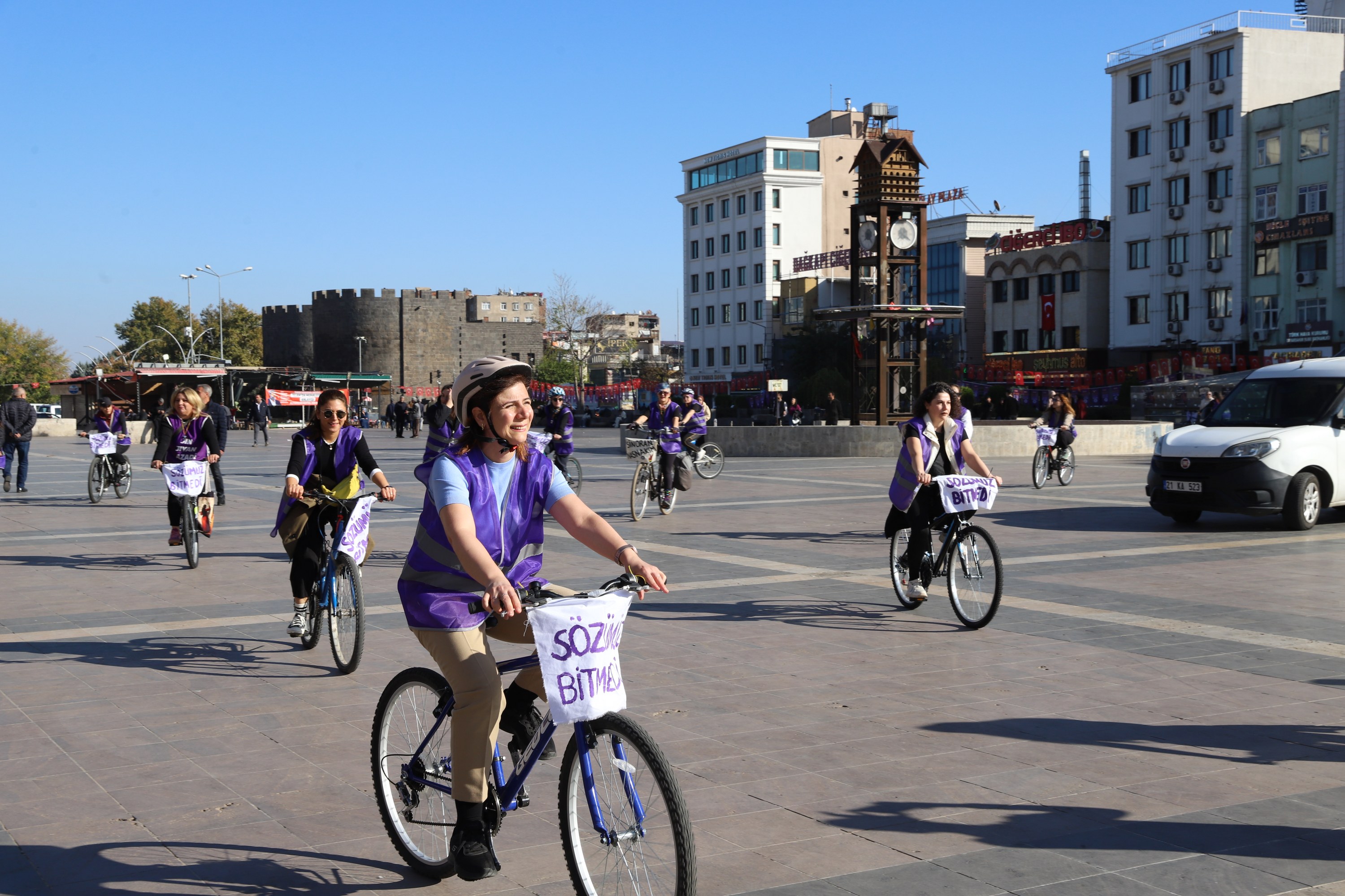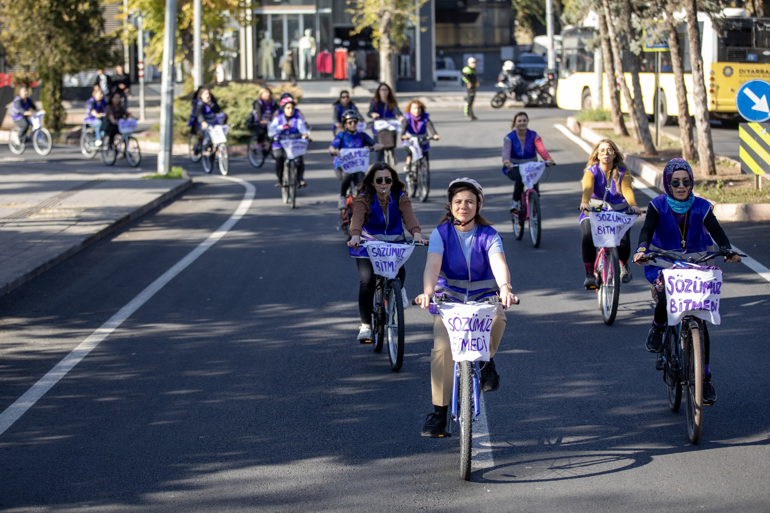 Following the speech, women got on their bicycles and cycled from Koşuyolu Park to Dağkapı Square. The event, marked by colourful scenes, ended at Dağkapı Square.