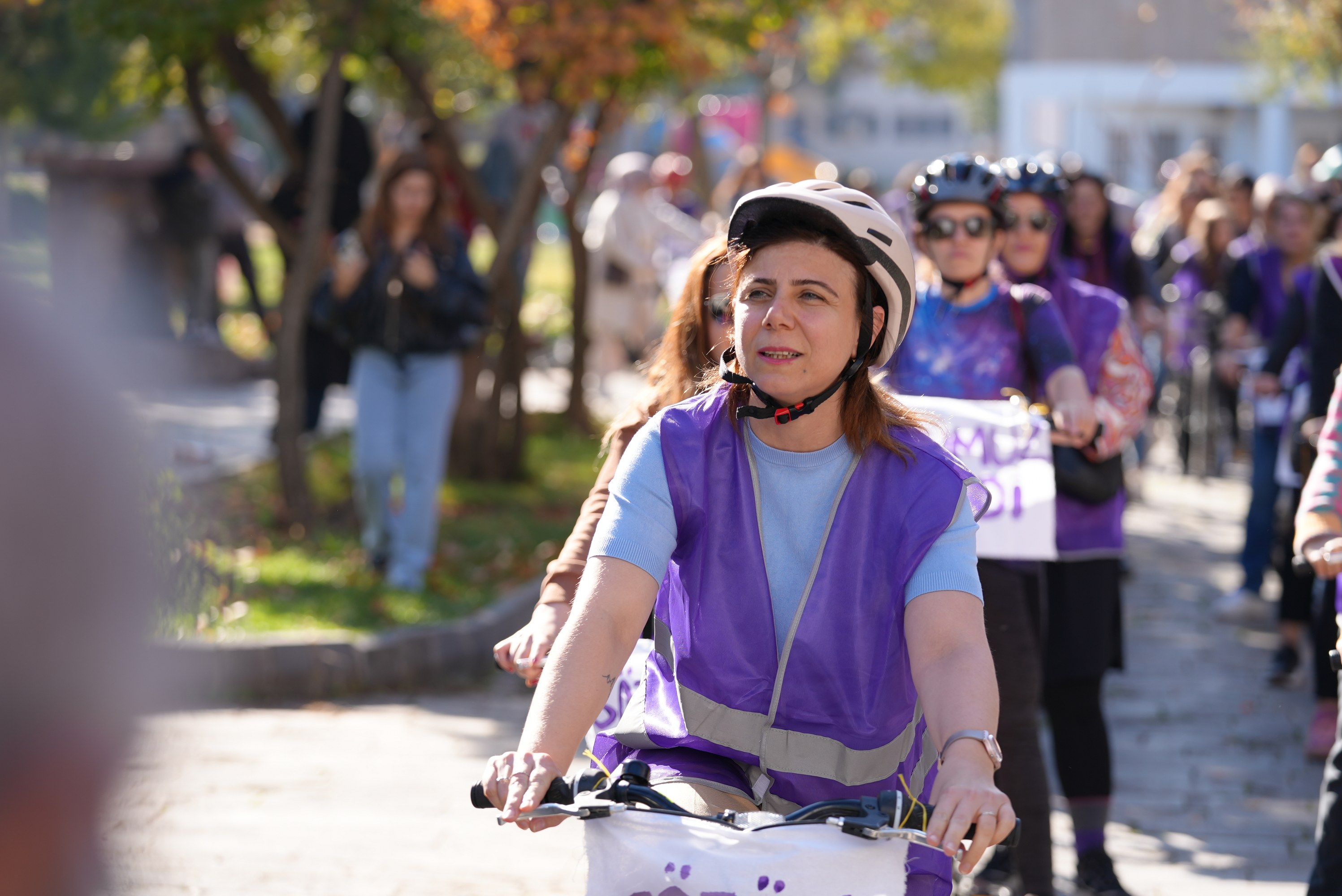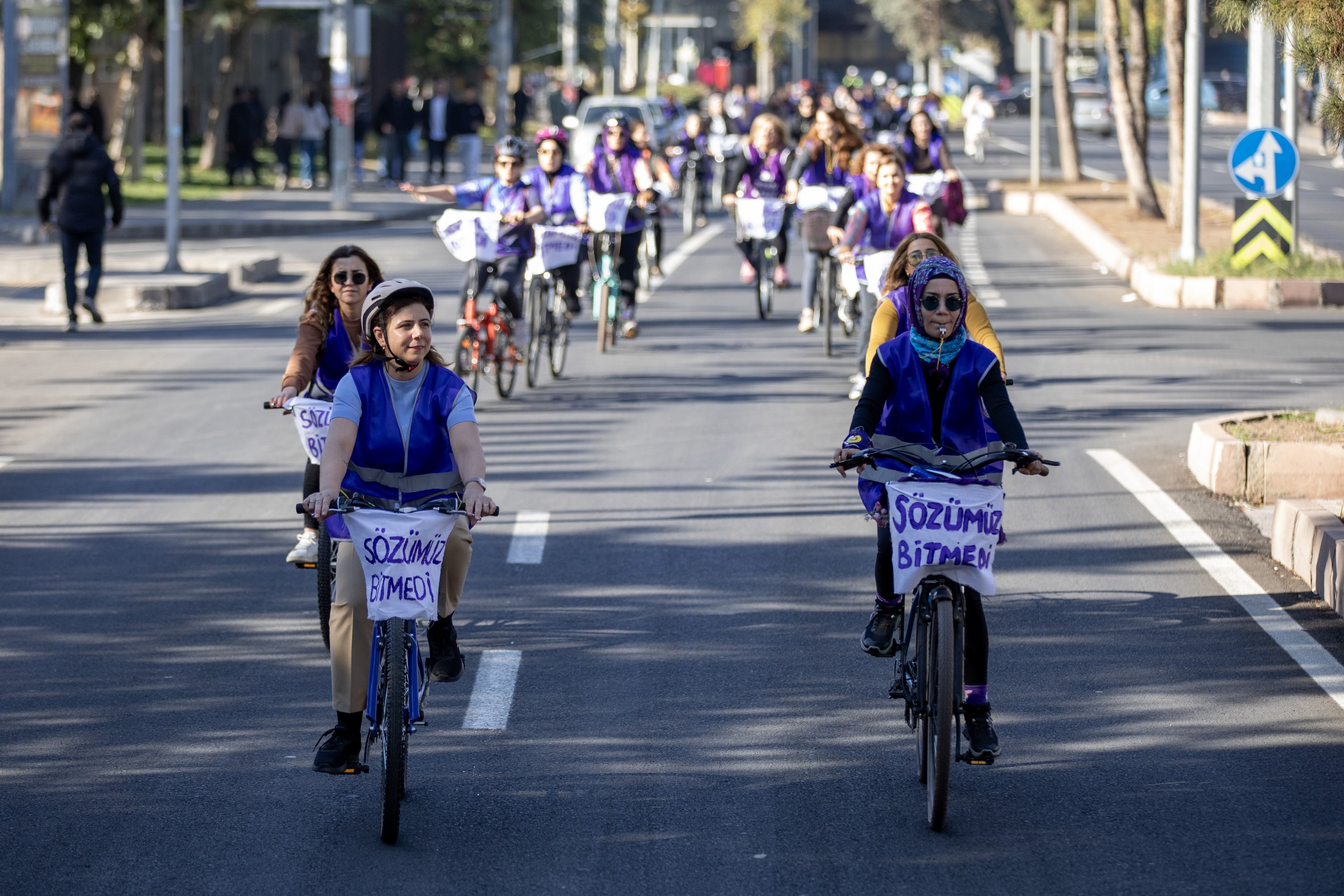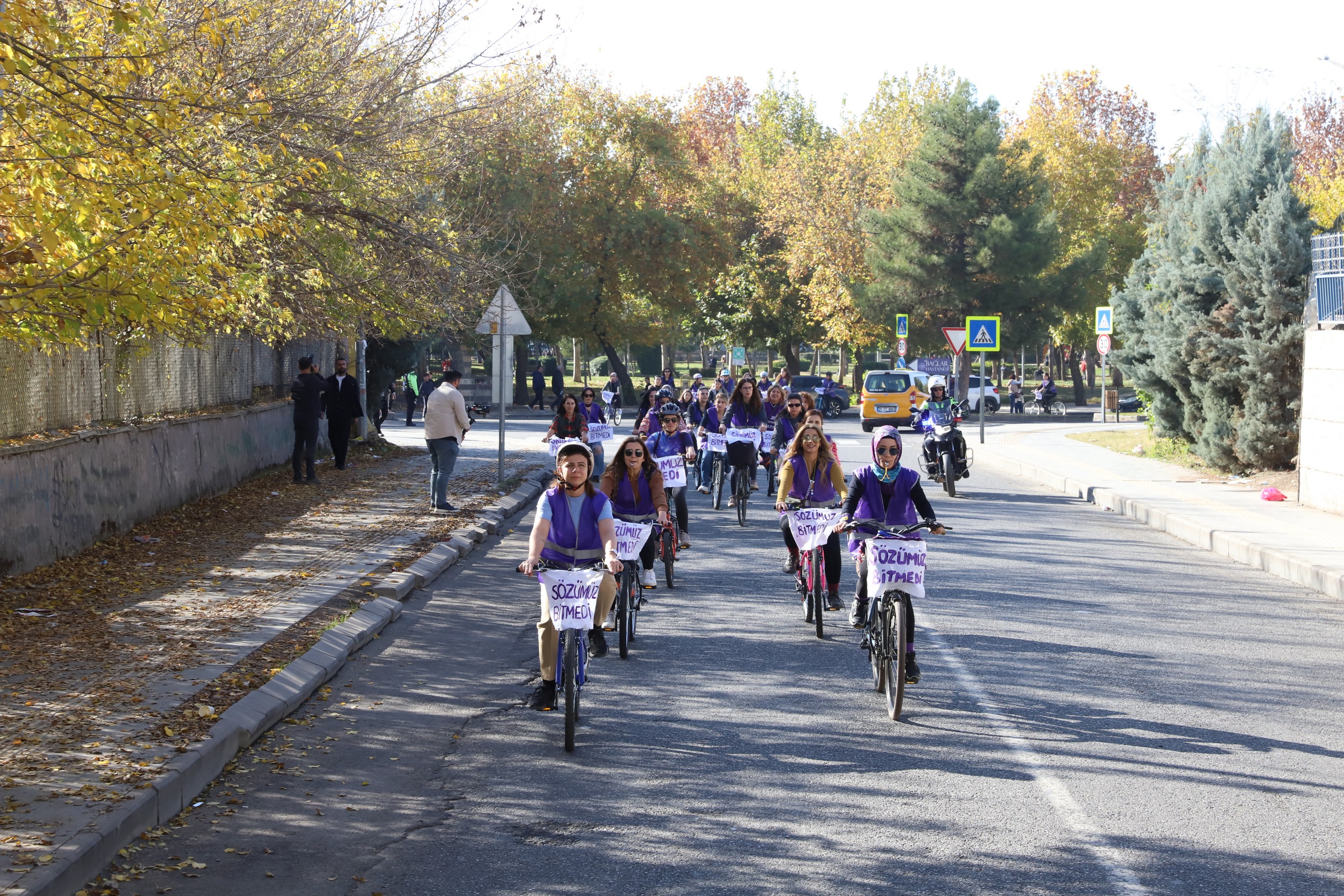 Diyarbakır Metropolitan Municipality organised a Cycling Tour event as part of activities marking 25 November, the International Day for the Elimination of Violence against Women. Joining the ride and pedalling against violence, Co-Mayor Serra Bucak said that a free society is only possible with free women, adding: “Today, we will pedal for a life without femicide.”