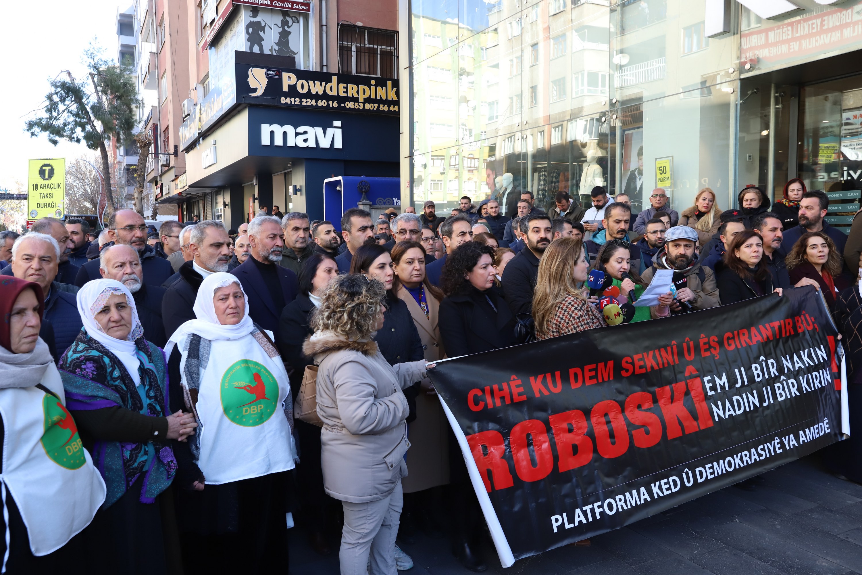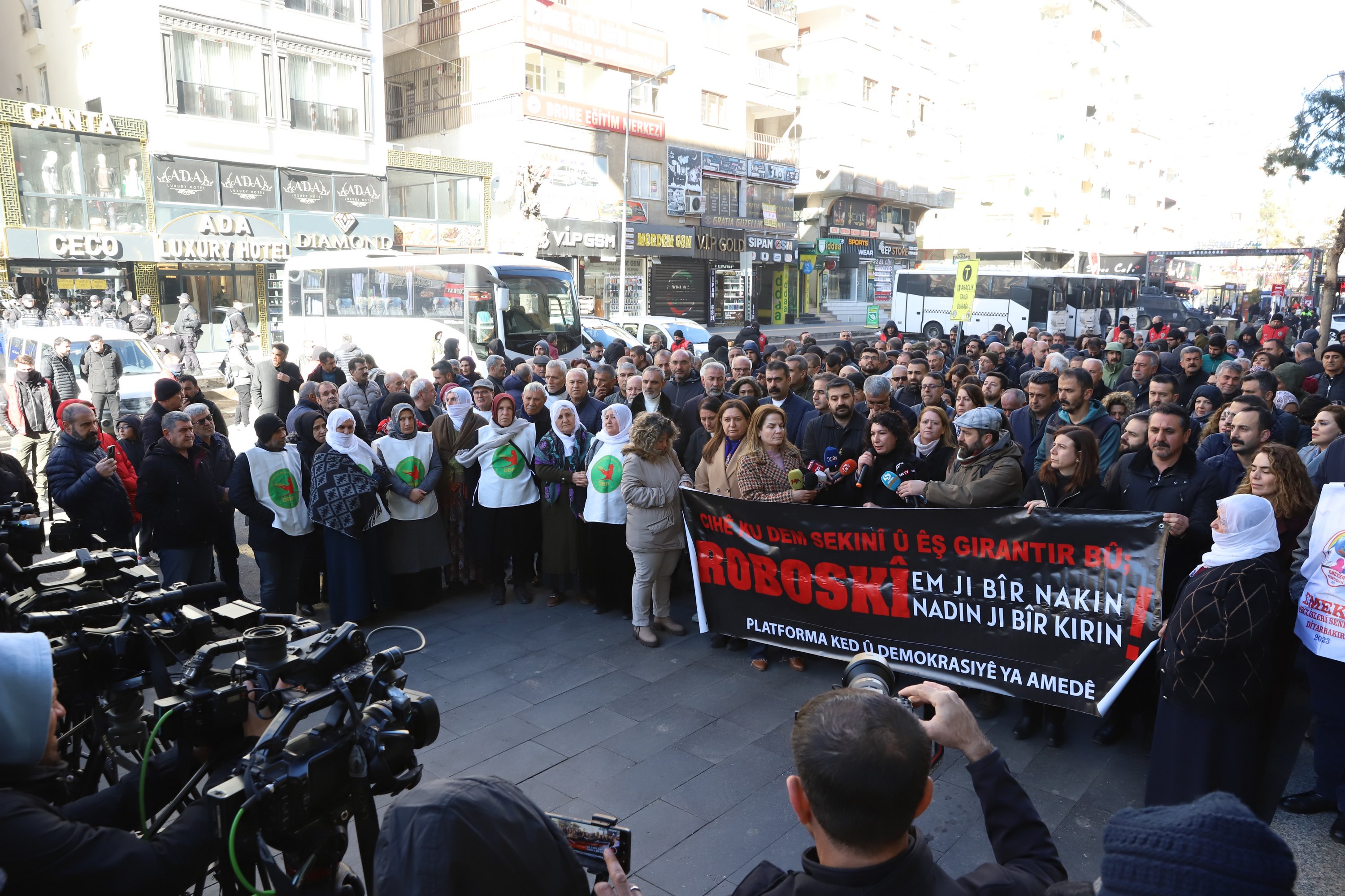 The statement was organised by the Amed Labour and Democracy Platform to commemorate the 14th anniversary of the killing of 34 people—19 of them children—on 28 December 2011 in Roboski village (Uludere district, Şırnak). The event took place in front of AZC Plaza in Yenişehir and was attended by the Co-Mayors, along with representatives of political parties and civil society organisations.