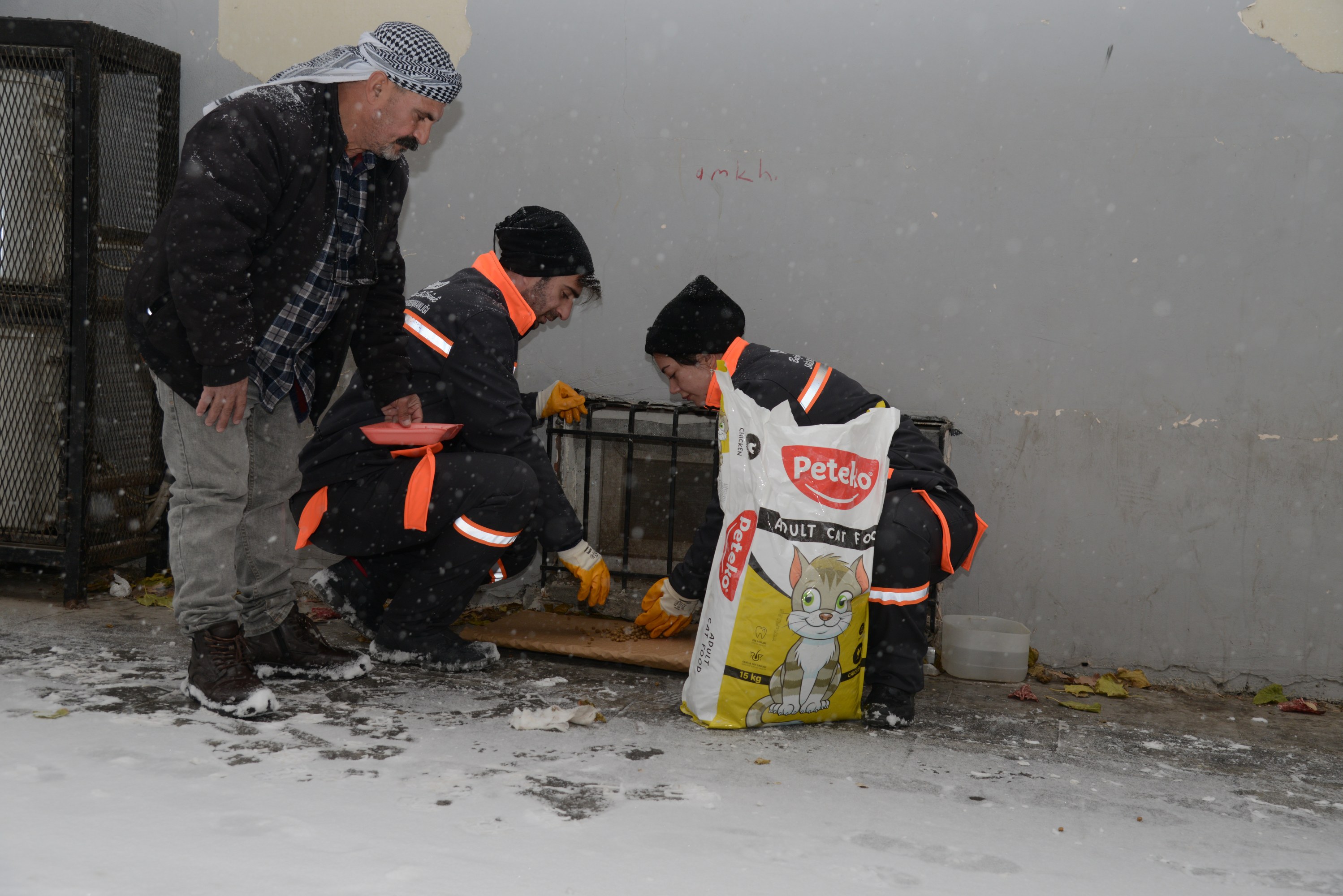 The Municipality’s Department of Veterinary Affairs continues its work to feed stray animals as the snowfall intensifies. Operating in the field in three teams, Diyarbakır Metropolitan Municipality is carrying out the efforts in cooperation with the Animal Friends Association, the Animal Rights Federation (HAYTAP), and the Diyarbakır Bar Association’s Animal Rights Centre. Teams have so far placed food at around 50 feeding points identified across the city.