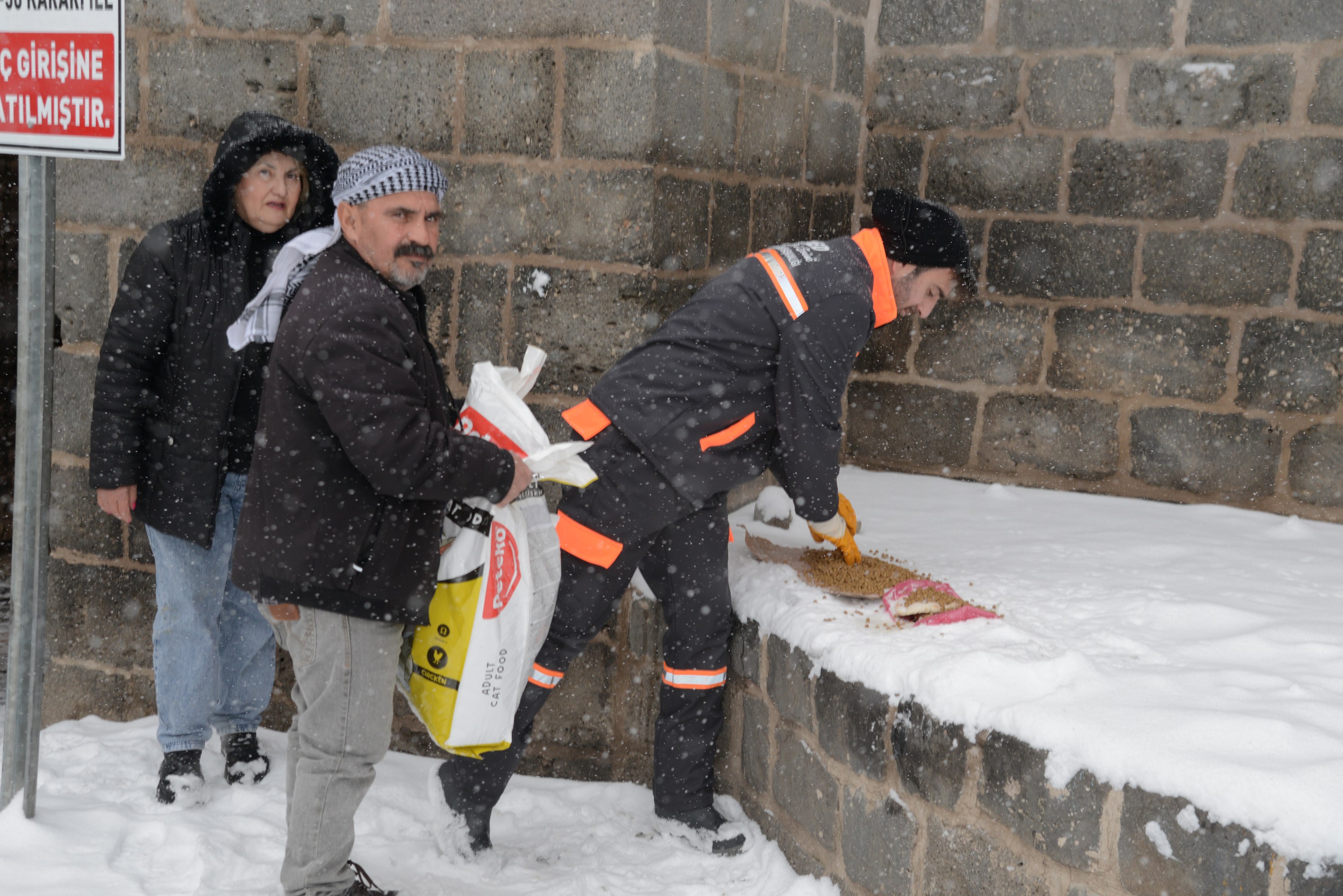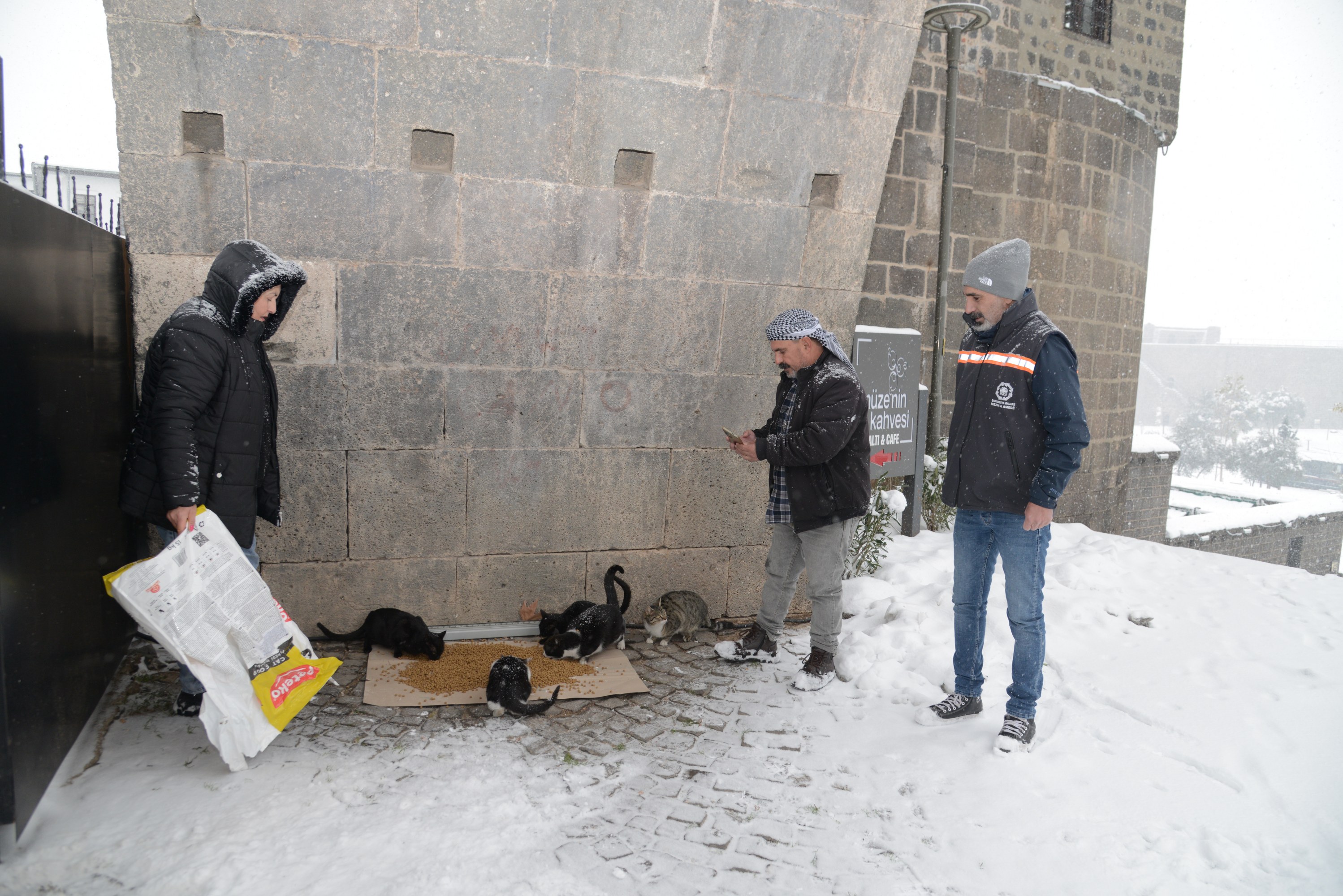 Diyarbakır Metropolitan Municipality has placed animal food at 50 locations across the city to ensure that stray animals do not go hungry amid heavy snowfall.