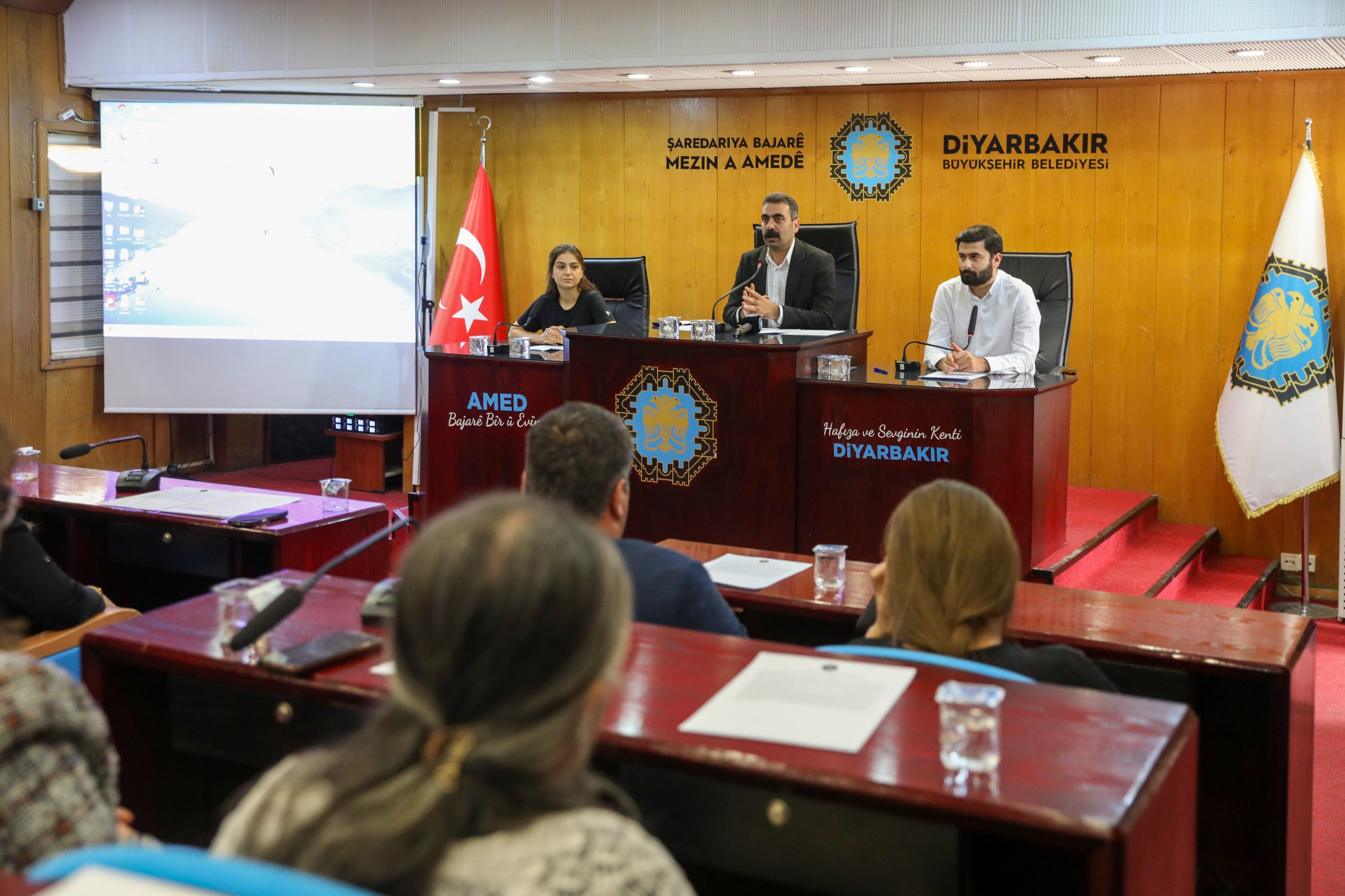 In his remarks before the sitting, Co-Mayor Hatun recalled that, together with Siraç Çelik, Co-Mayor of the Union of Municipalities of Southeastern Anatolia (GABB) and of Bağlar Municipality, and Fatma Gulan Önkol, Co-Mayor of Sur Municipality, he took part in the United Cities and Local Governments (UCLG) 6th Culture Summit in Barcelona.