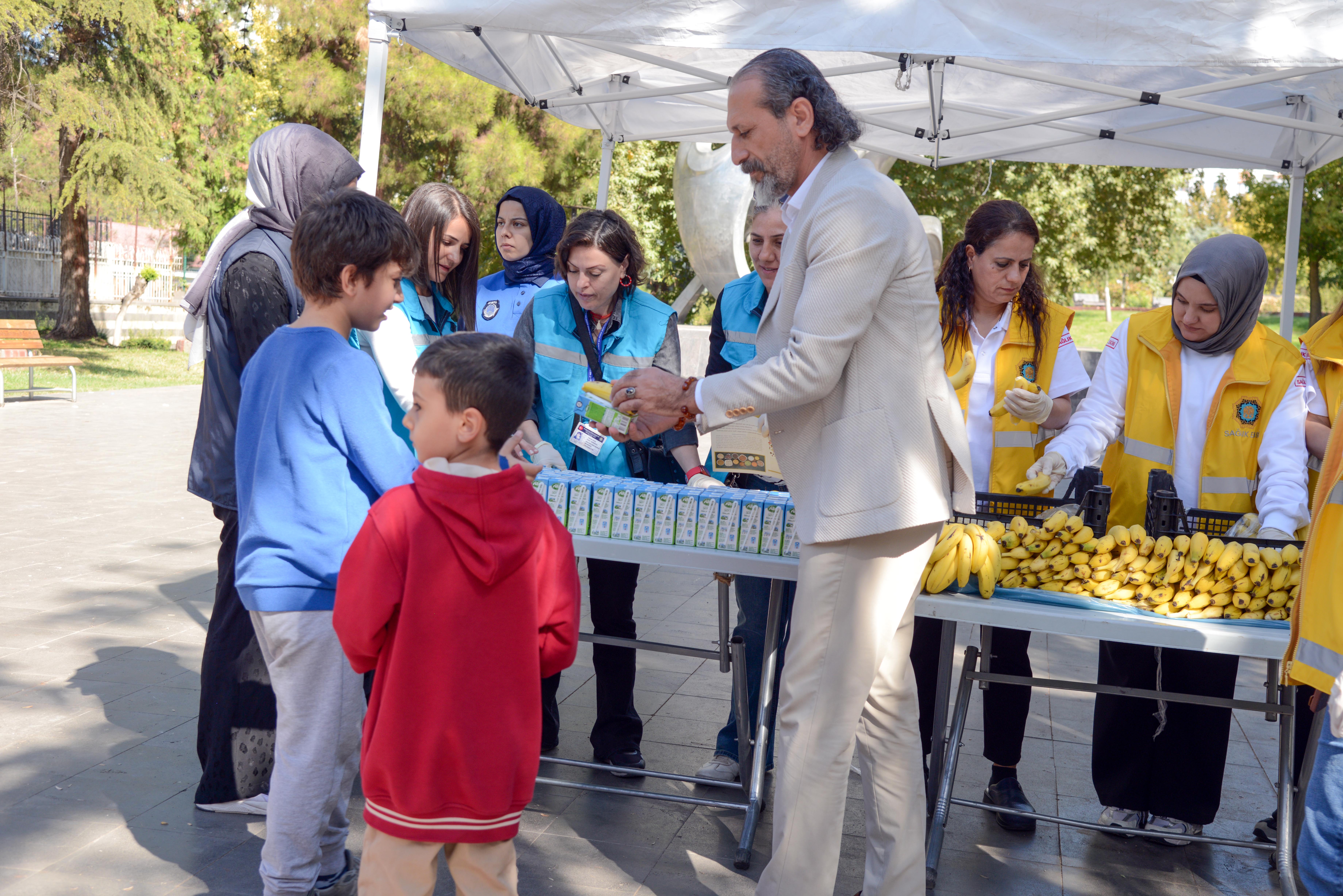 Organised by the Department of Health Affairs at Koşuyolu Park in Bağlar district, the activity highlighted the importance of access to nutritious food by distributing milk and bananas. Leaflets were also handed out to underline key messages on food safety.