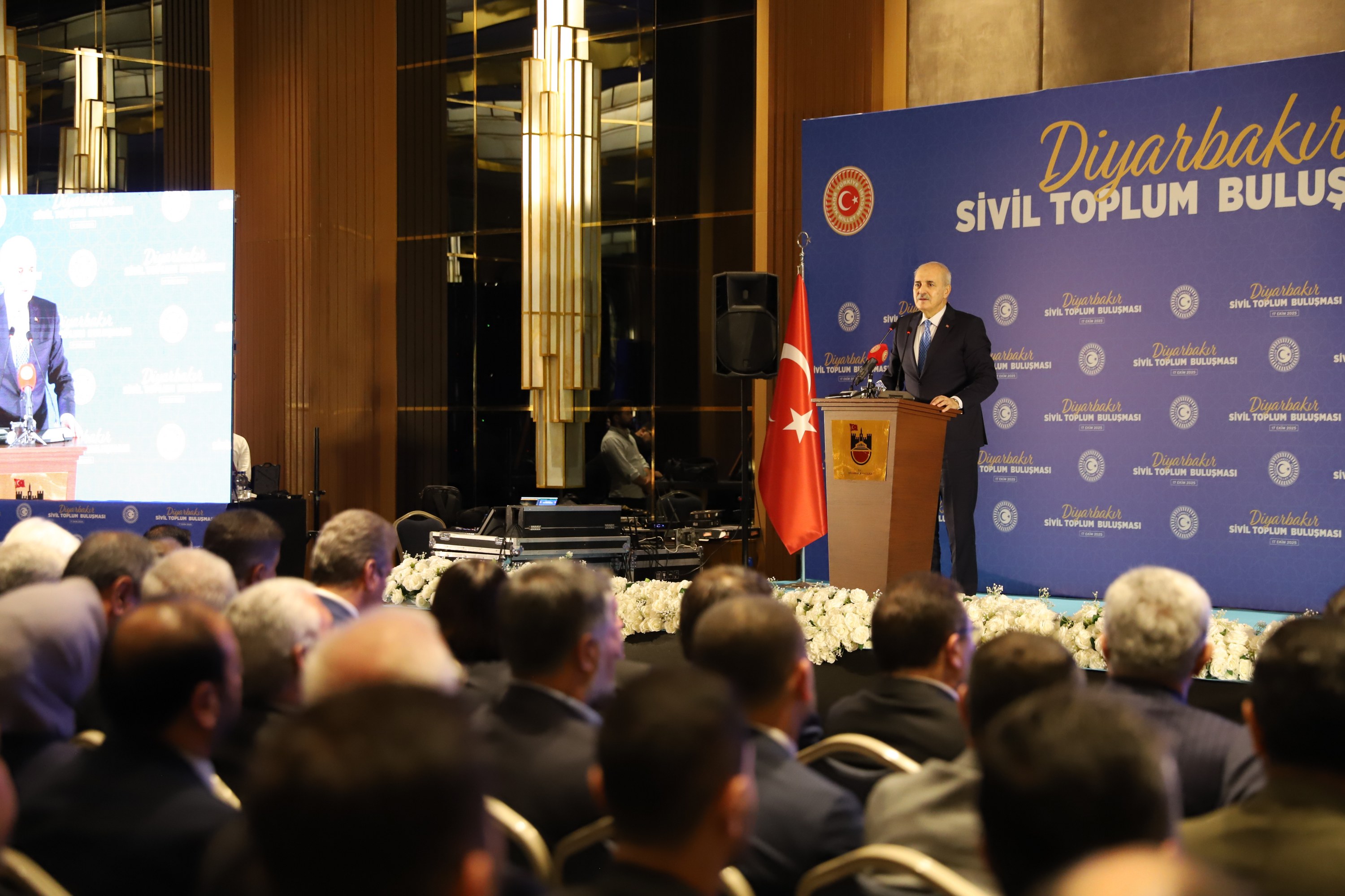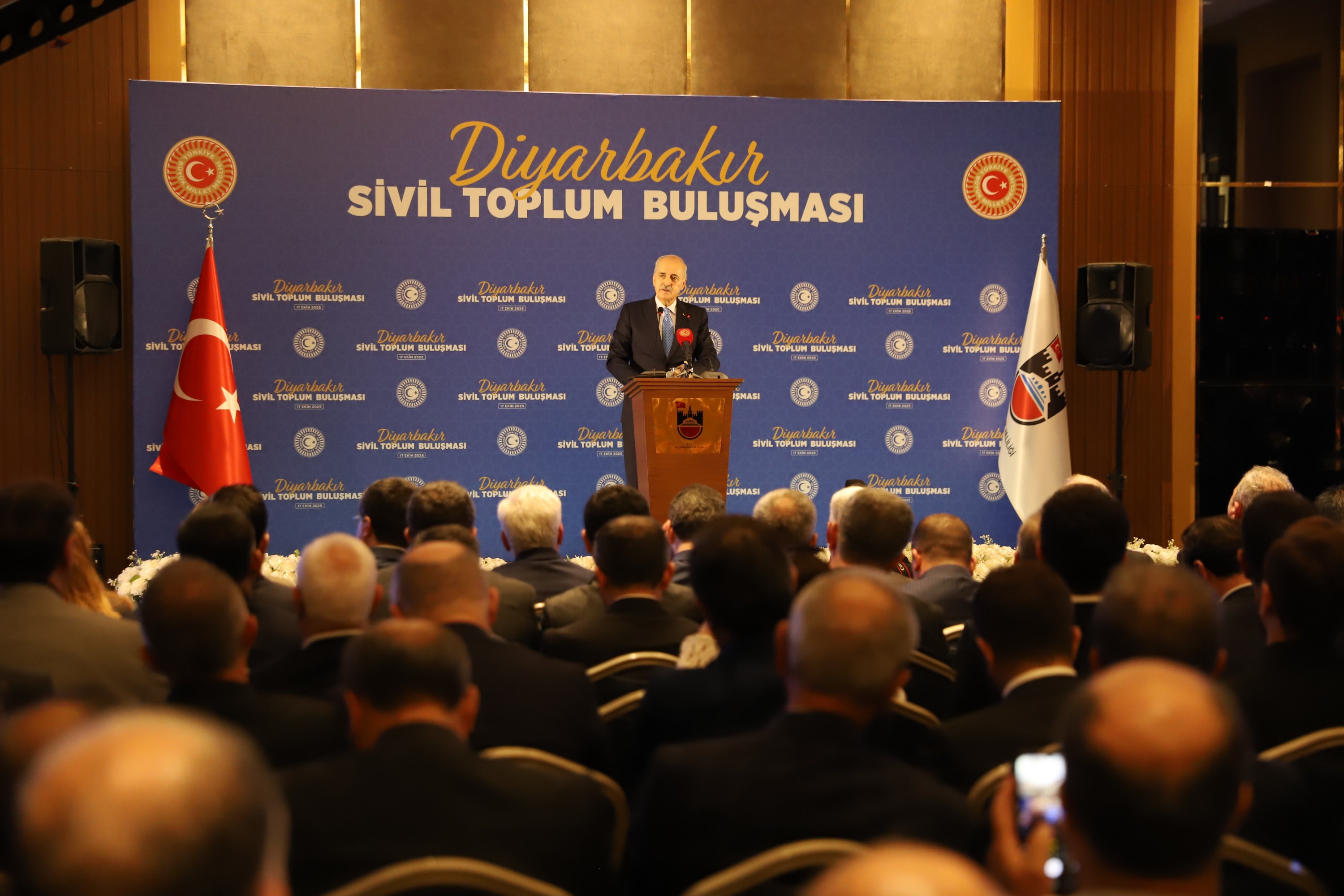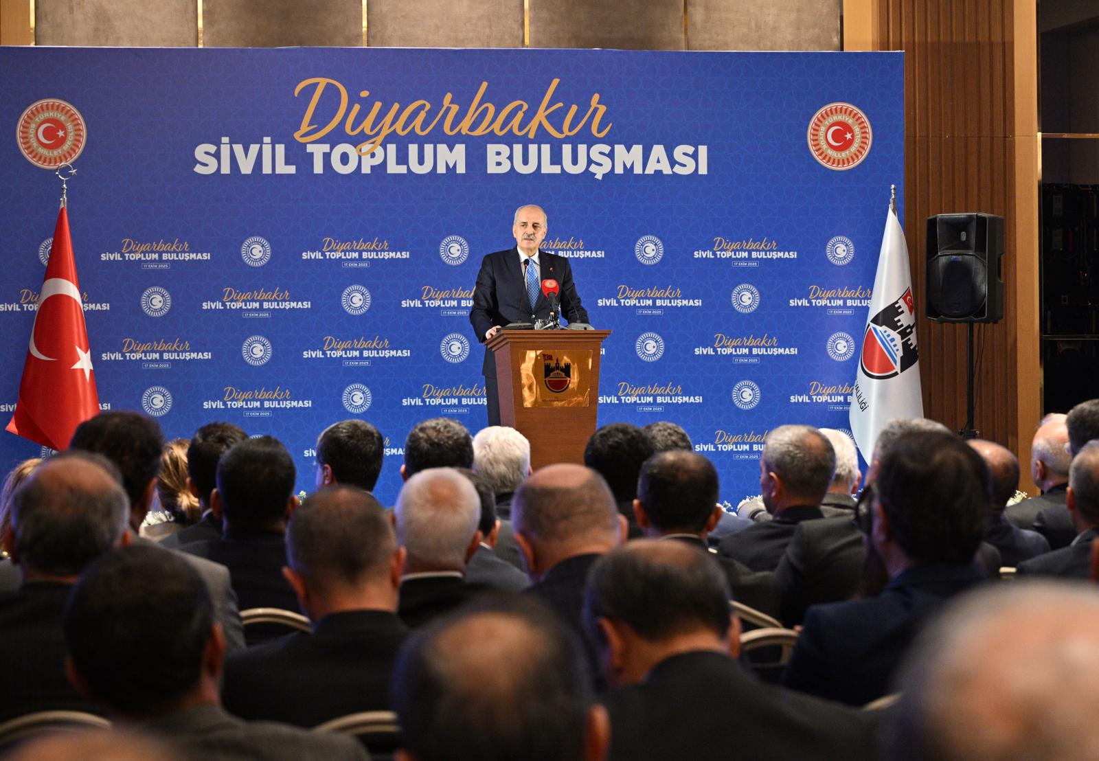Following a visit to Diyarbakır Metropolitan Municipality as part of his programme in the city, TBMM Speaker Numan Kurtulmuş and members of the National Solidarity, Brotherhood and Democracy Commission met civil society representatives at a hotel. Participants included MPs, Diyarbakır Governor Murat Zorluoğlu, Dicle University Rector Prof. Dr. Kamuran Eronat, and representatives of political parties and civil society organisations, alongside Co-Mayor Serra Bucak.