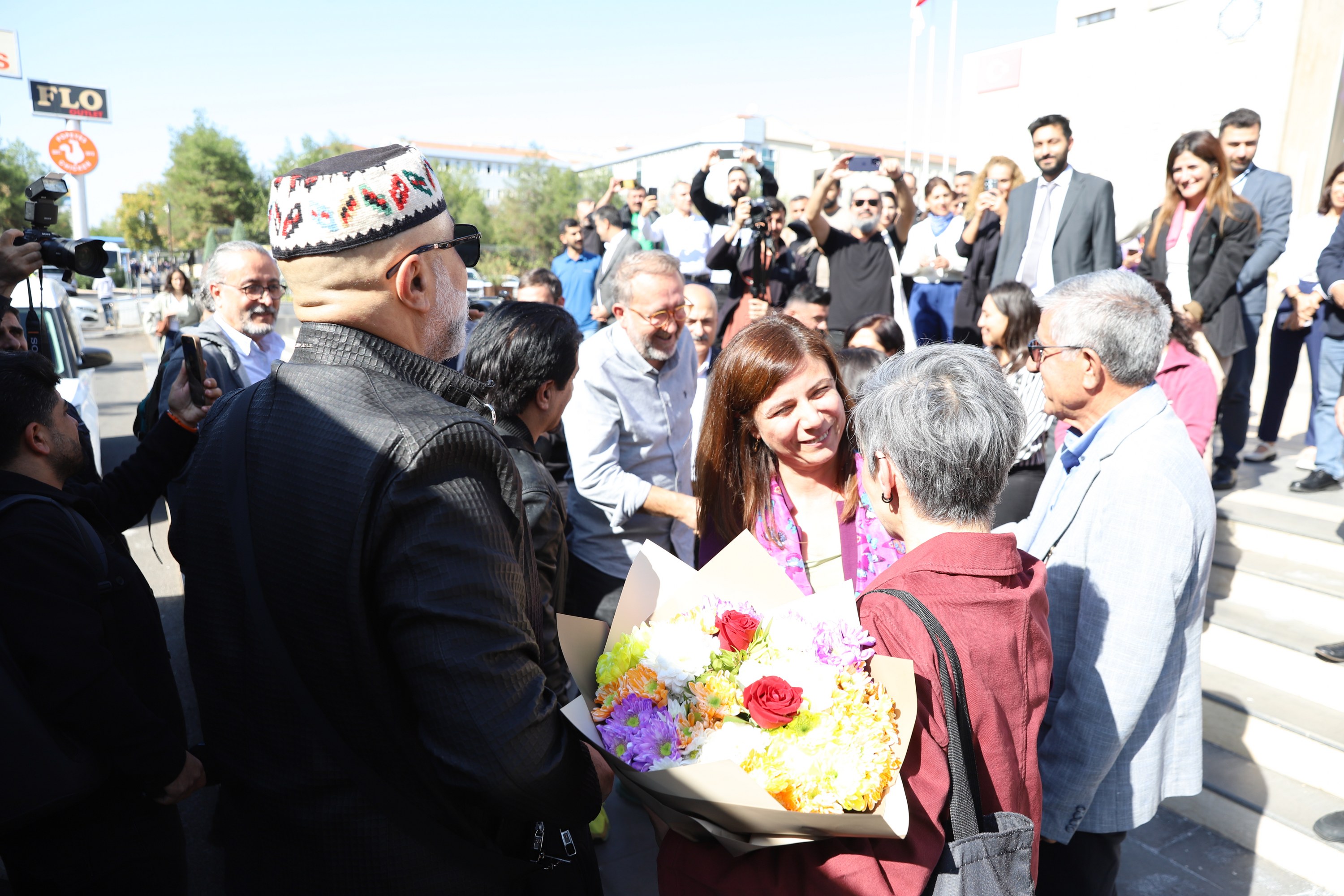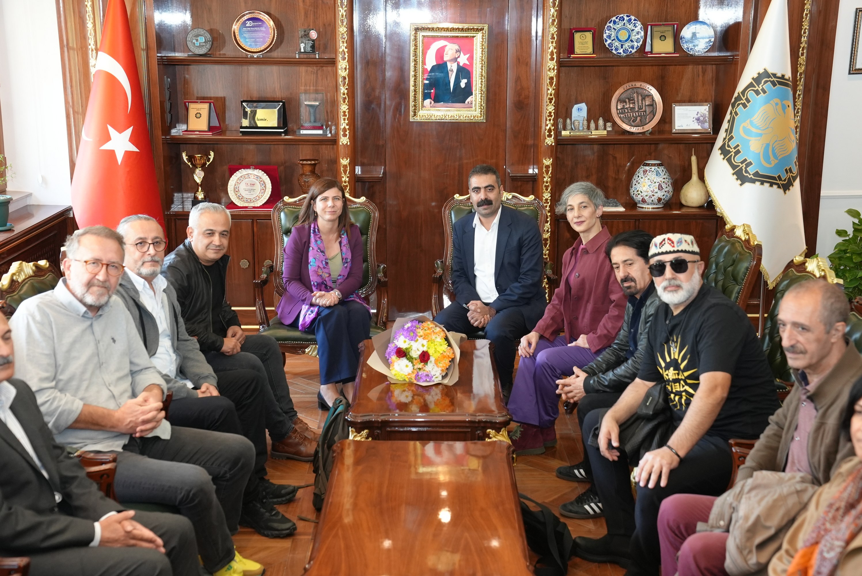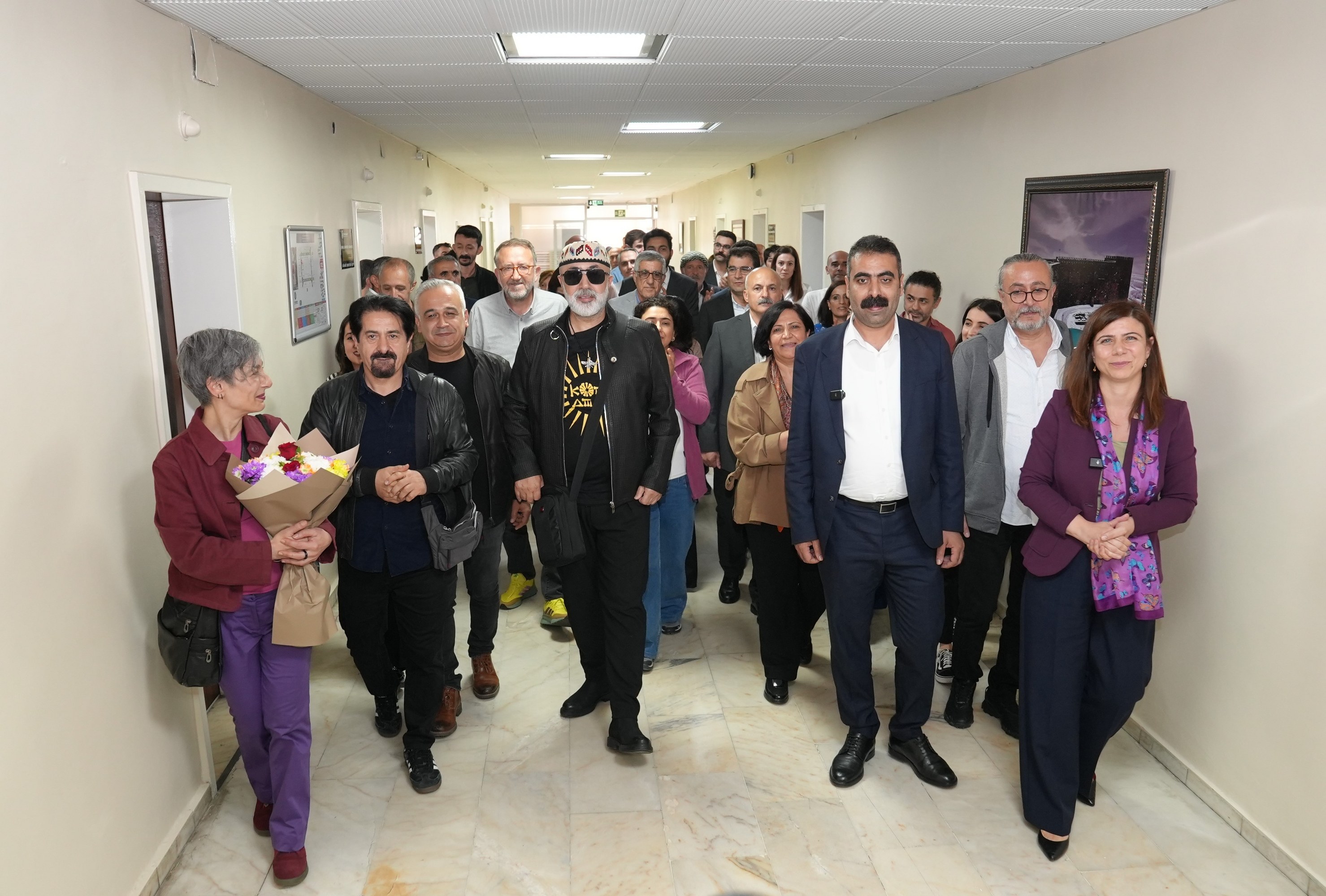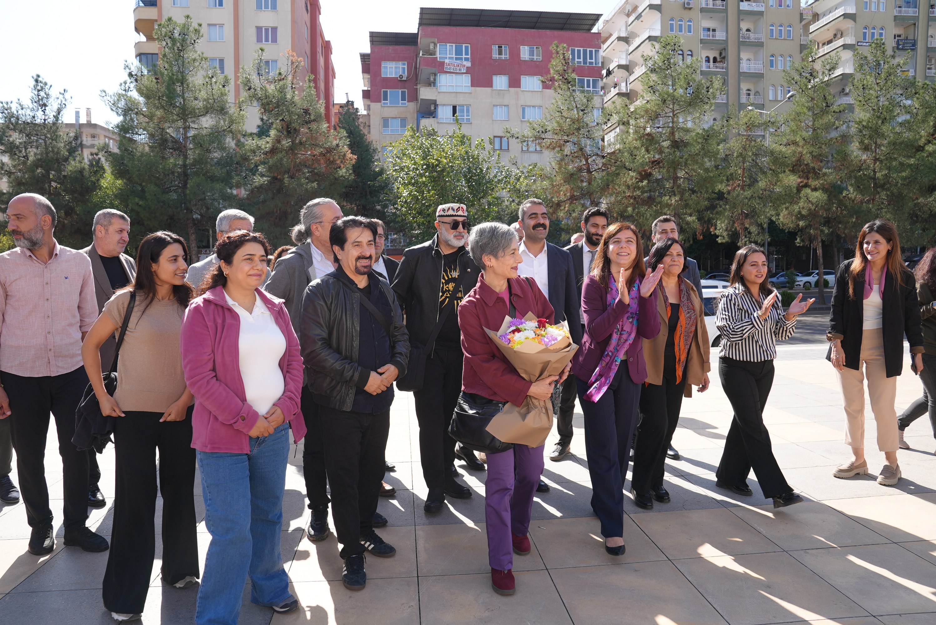 Diyarbakır Metropolitan Municipality Co-Mayors Serra Bucak and Doğan Hatun welcomed the members of Koma Amed with flowers ahead of the band’s first concert in the city after 30 years, entering the municipal building to songs.