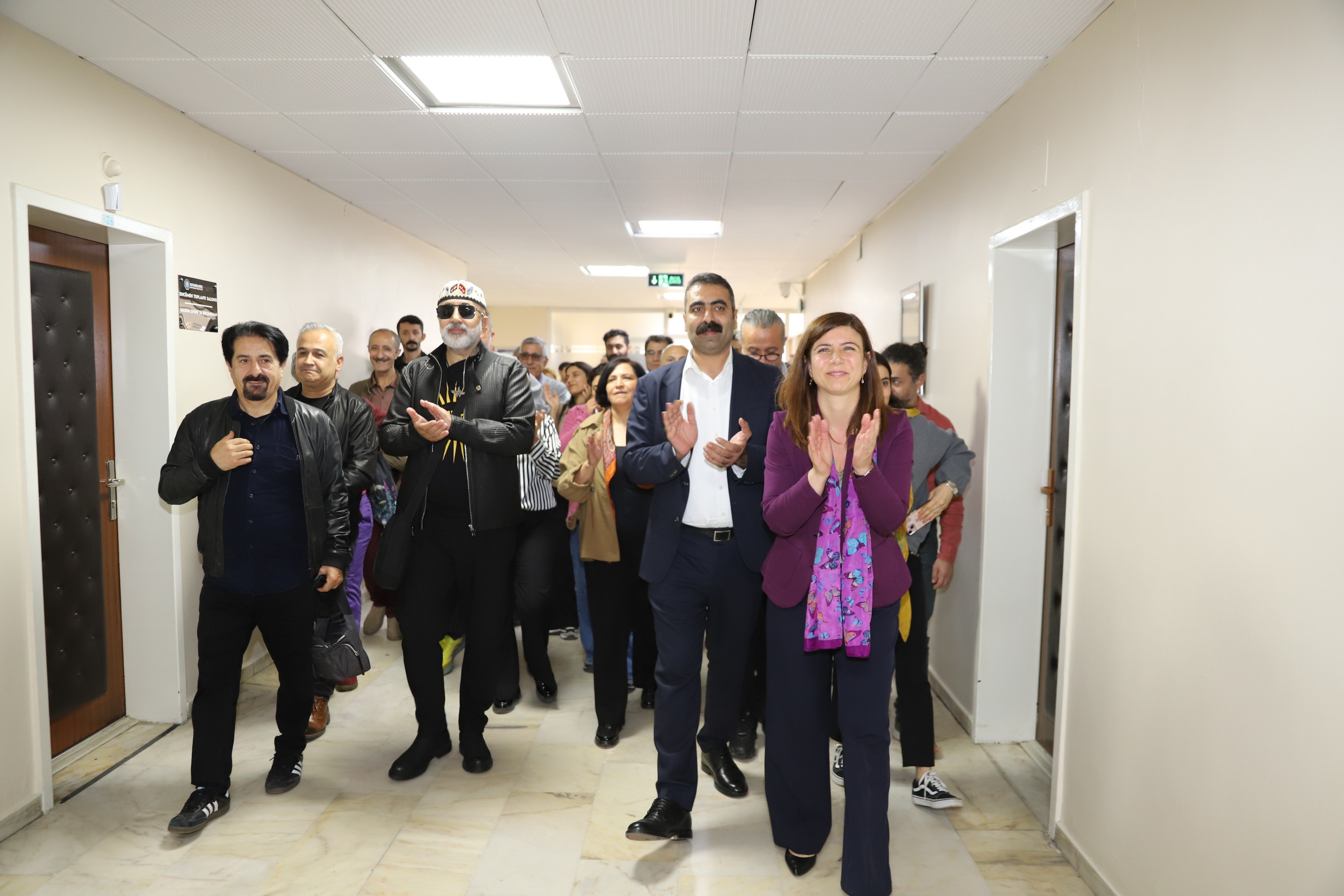 Hosted by Diyarbakır Metropolitan Municipality and Kayapınar Municipality, the members of Koma Amed proceeded to the Metropolitan Municipality following their welcome at the airport. In front of the municipal service building, they were received by Co-Mayors Serra Bucak and Doğan Hatun, DBB Council Members, Chief Executive Emrullah Gördük and Deputy Chief Executives. After an emotional welcome, the band members entered the Metropolitan Municipality together with the Co-Mayors to the accompaniment of songs and ululations.