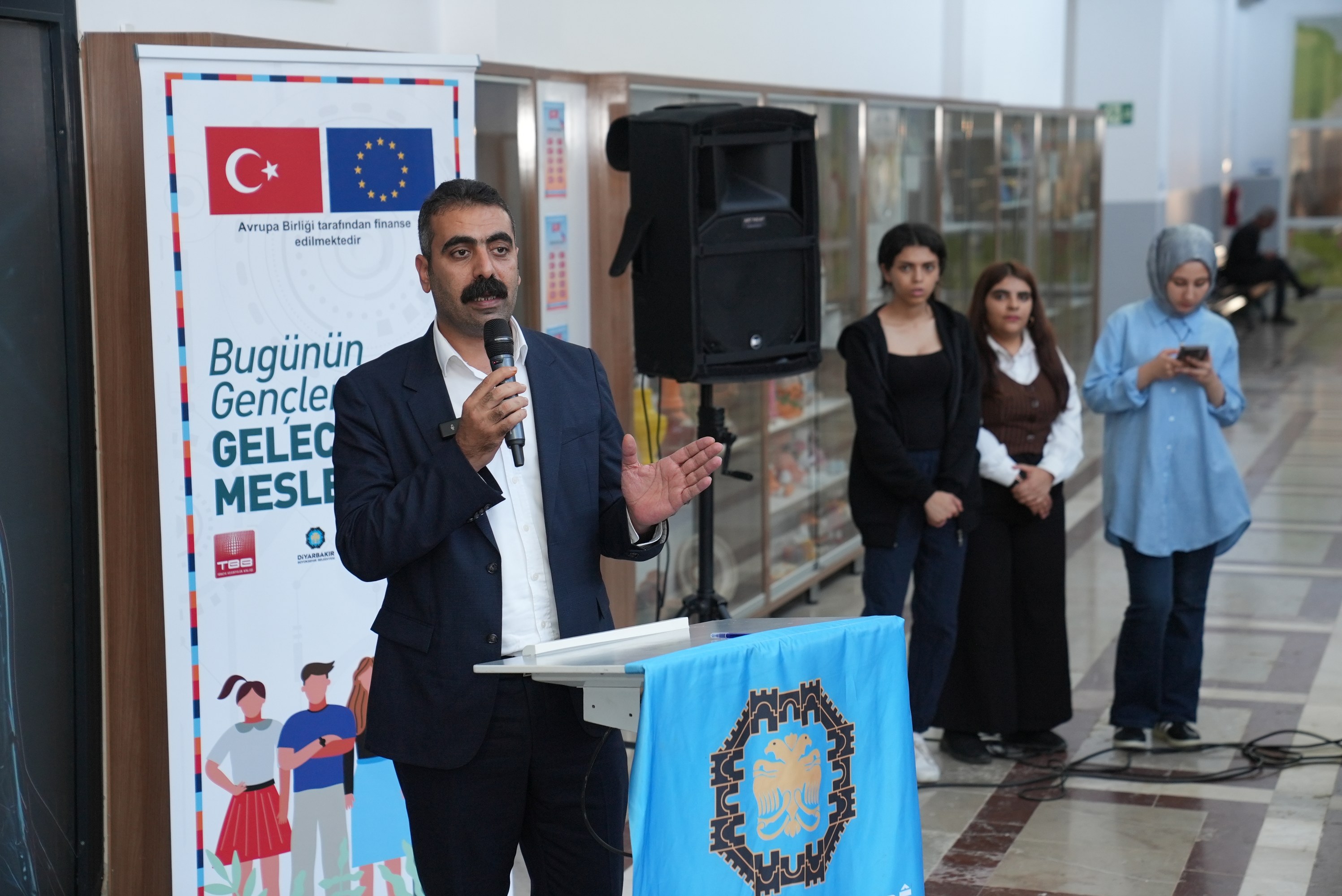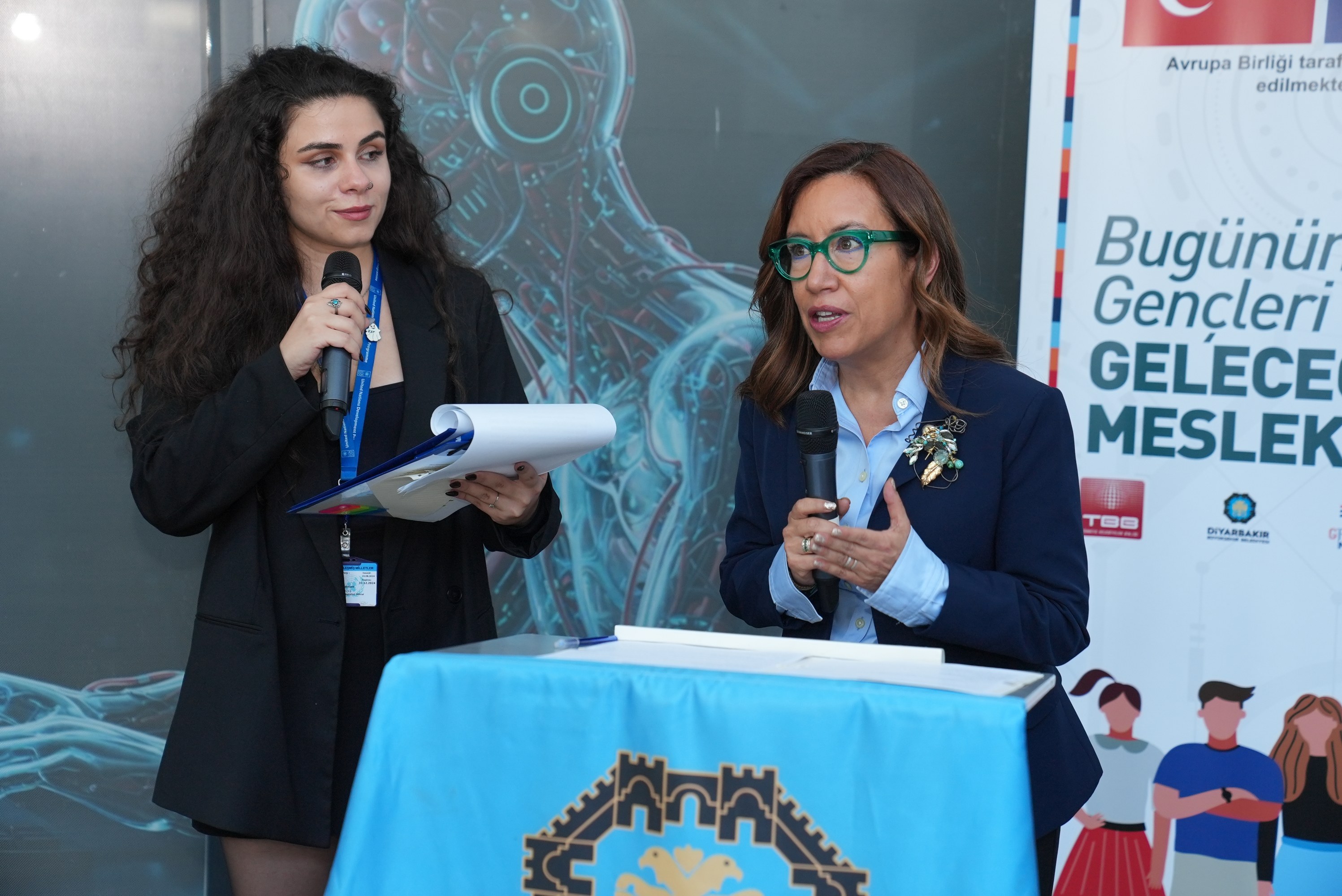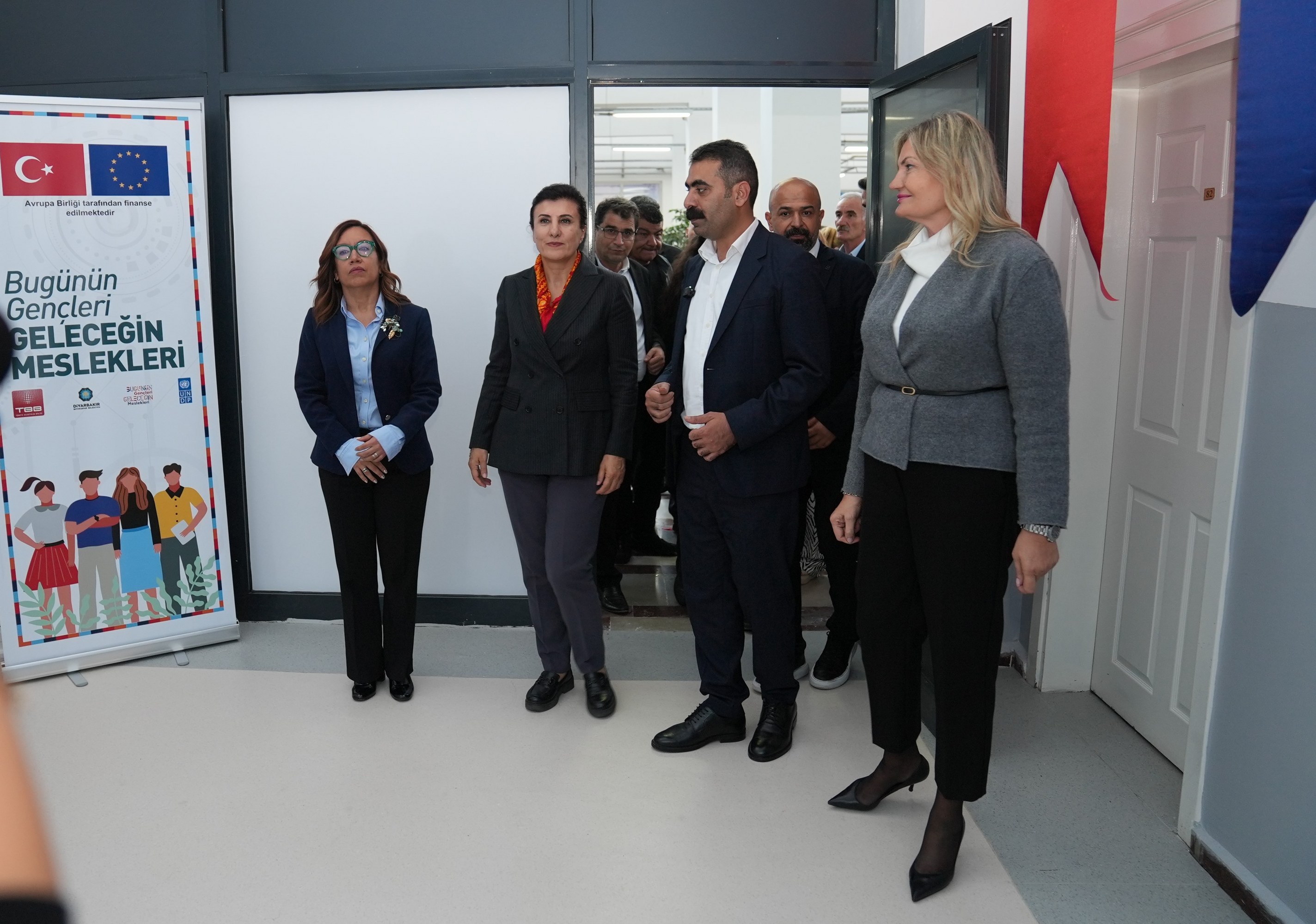 Hosted by Diyarbakır Metropolitan Municipality, the Digital Youth Centre (DİGEM) was opened at the Sümerpark Community Hub to strengthen young people’s digital skills and improve employment opportunities in innovative professions. Implemented under the project “Bugünden Geleceğin Meslekleri” (“Professions of the Future from Today”), with financing from the European Union (EU) and the support of the United Nations Development Programme (UNDP) and the Union of Municipalities of Türkiye (TBB), the opening ceremony of the Diyarbakır Digital Youth Centre was attended by Metropolitan Municipality Co-Mayor Doğan Hatun, Sur Municipality Co-Mayor Fatma Gulan Önkol, DBB Chief Executive Emrullah Gördük, TBB Deputy Secretary-General Şengül Altan Arslan, Maria Luisa Wygonowska, Head of Cooperation at the EU Delegation to Türkiye, UNDP Türkiye Resident Representative Monica Merino, district co-mayors, department heads and many young people.