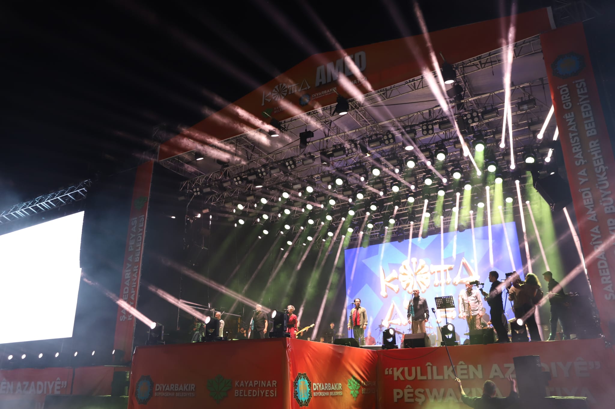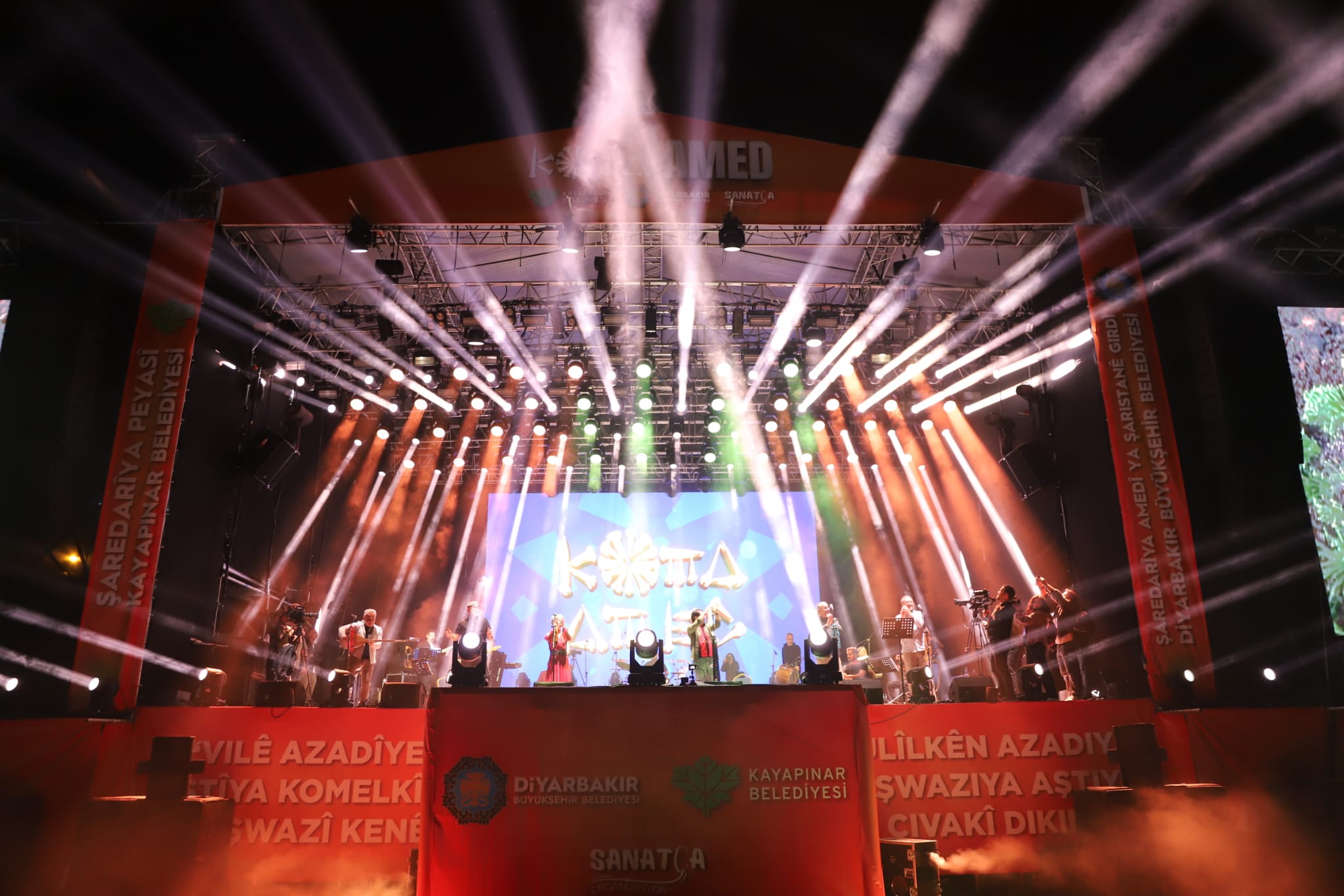 Hosted by the Diyarbakır Metropolitan Municipality Department of Culture and Social Affairs and Kayapınar Municipality, Koma Amed’s concert held at the Newroz Area has begun. The group, which secured an important place in the cultural and artistic memory of the Kurds with their original interpretation of Kurdish music in the 1990s, is giving a spirited concert in Diyarbakır after 30 years with the participation of hundreds of thousands of people.
