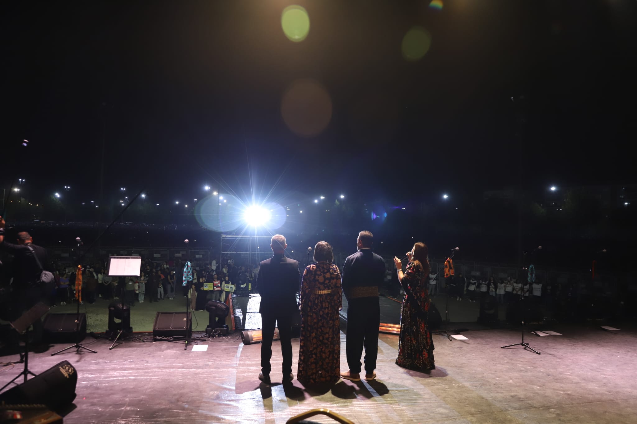 The concert programme began amid the applause and ululations of hundreds of thousands of citizens, with a greeting from Diyarbakır Metropolitan Municipality Co-Mayor Serra Bucak. Greeting participants who had come from within the country and abroad, Co-Mayor Bucak said: “Welcome; you are most welcome and honoured among us. Today our guest is Koma Amed—at home, on its own soil after 30 years. May your arrival be blessed; for our honourable people this longing has come to an end at the Newroz Area. We want the longing of all the Kurdish people, the longing of mothers, to come to an end; may it serve peace, unity and democracy. May this concert serve the Kurdish people’s desire for peace and freedom. To the young people, women and our people—thank you for coming. We thank the staff of Kayapınar Municipality and the Metropolitan Municipality, and the Sanatça organisation, for this spirited concert and their efforts. We are very excited; I can see you are eager too—hopefully this evening will be a fine and spirited concert. I embrace you with respect and affection. Long live Amed.”