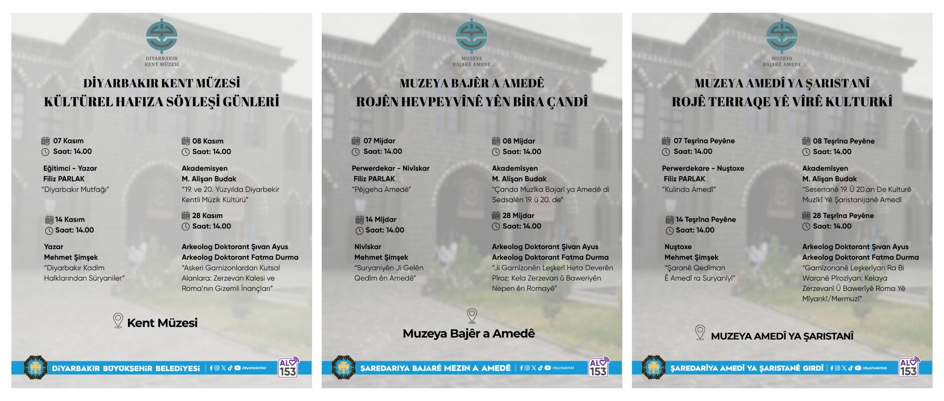 Throughout November, Diyarbakır Metropolitan Municipality will host a series of cultural memory talks with academics, educators, writers and archaeologists at the Cemilpaşa Mansion City Museum.