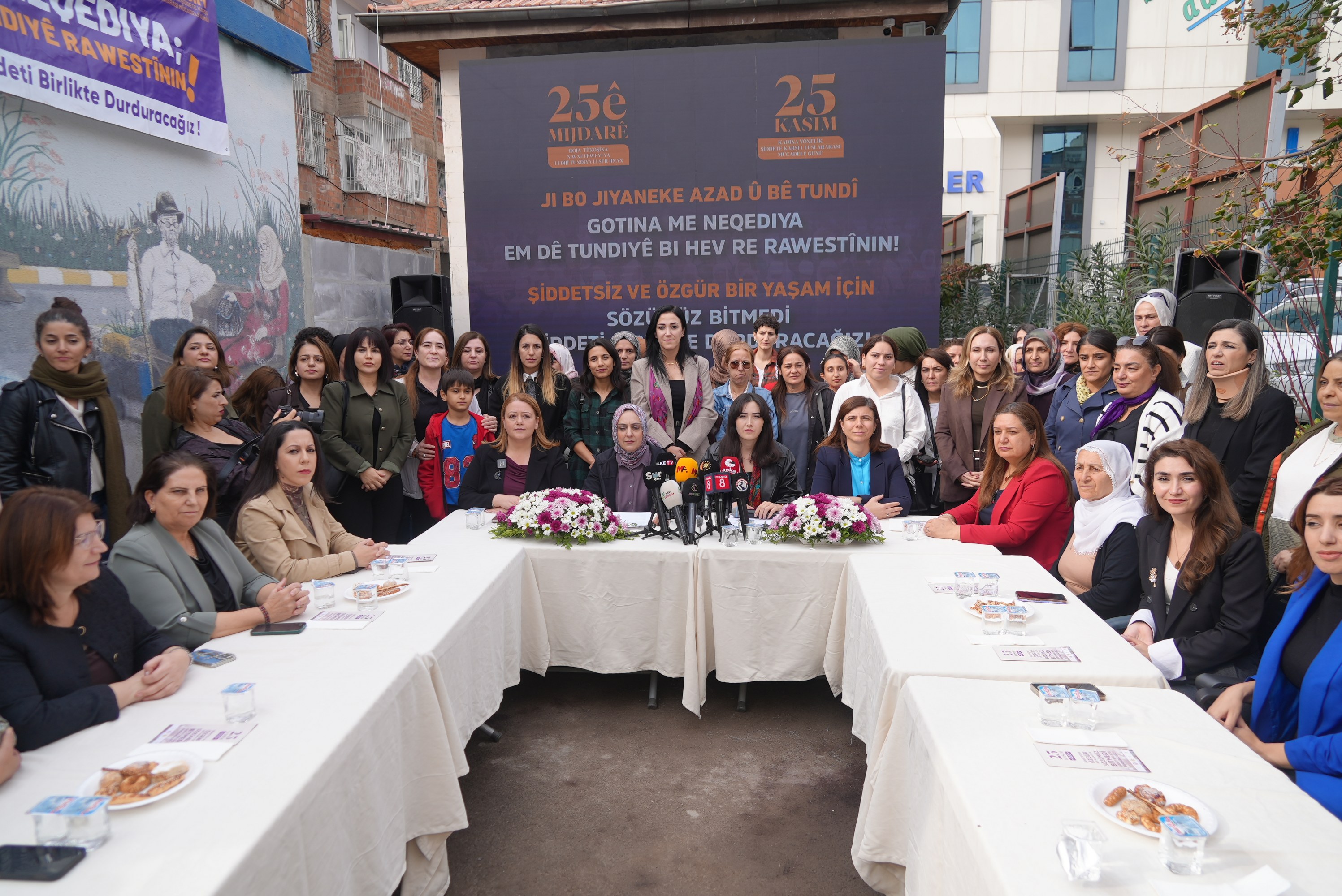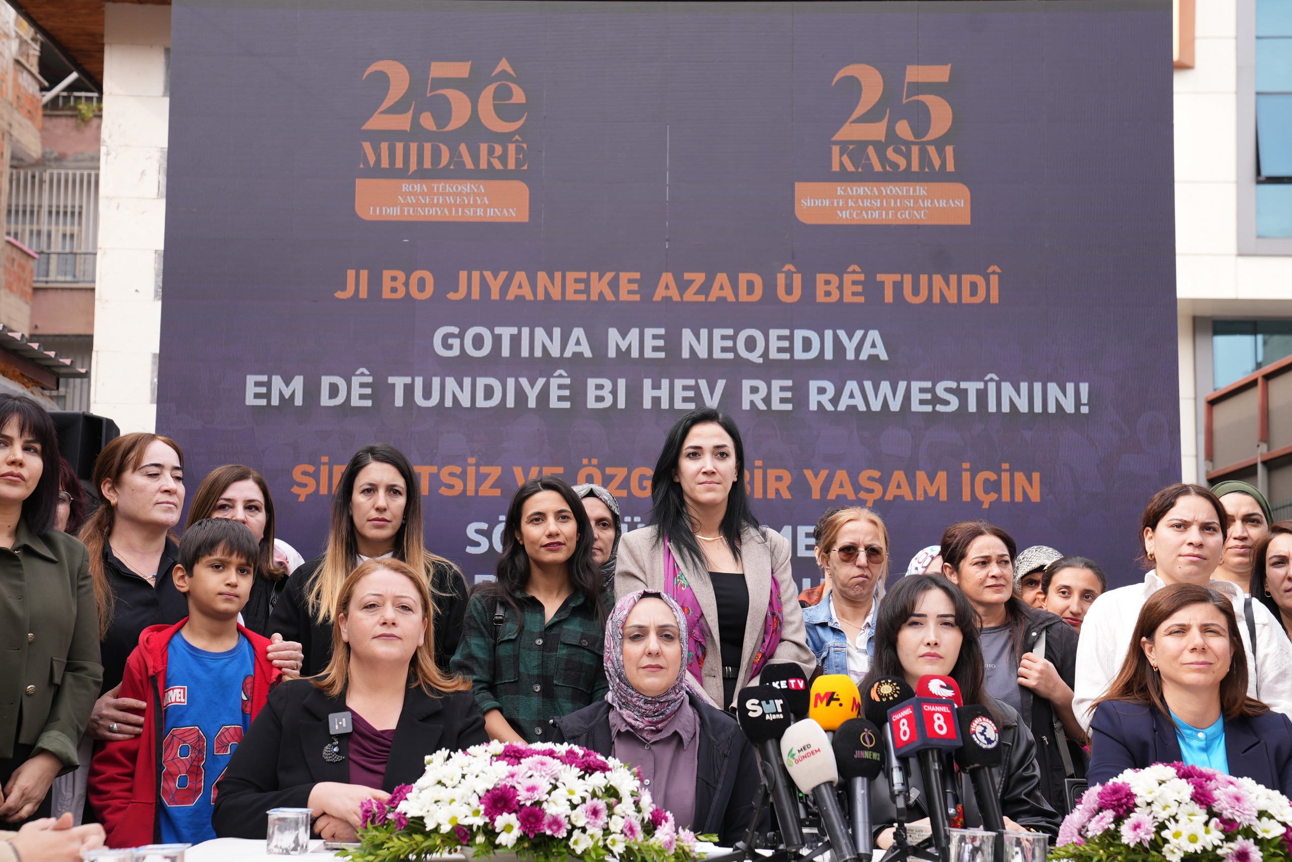 Diyarbakır Metropolitan Municipality and the district municipalities have launched the series of events to be held as part of 25 November, the International Day for the Elimination of Violence against Women, with a gathering in front of the Rojin Kabaiş Solidarity Centre.