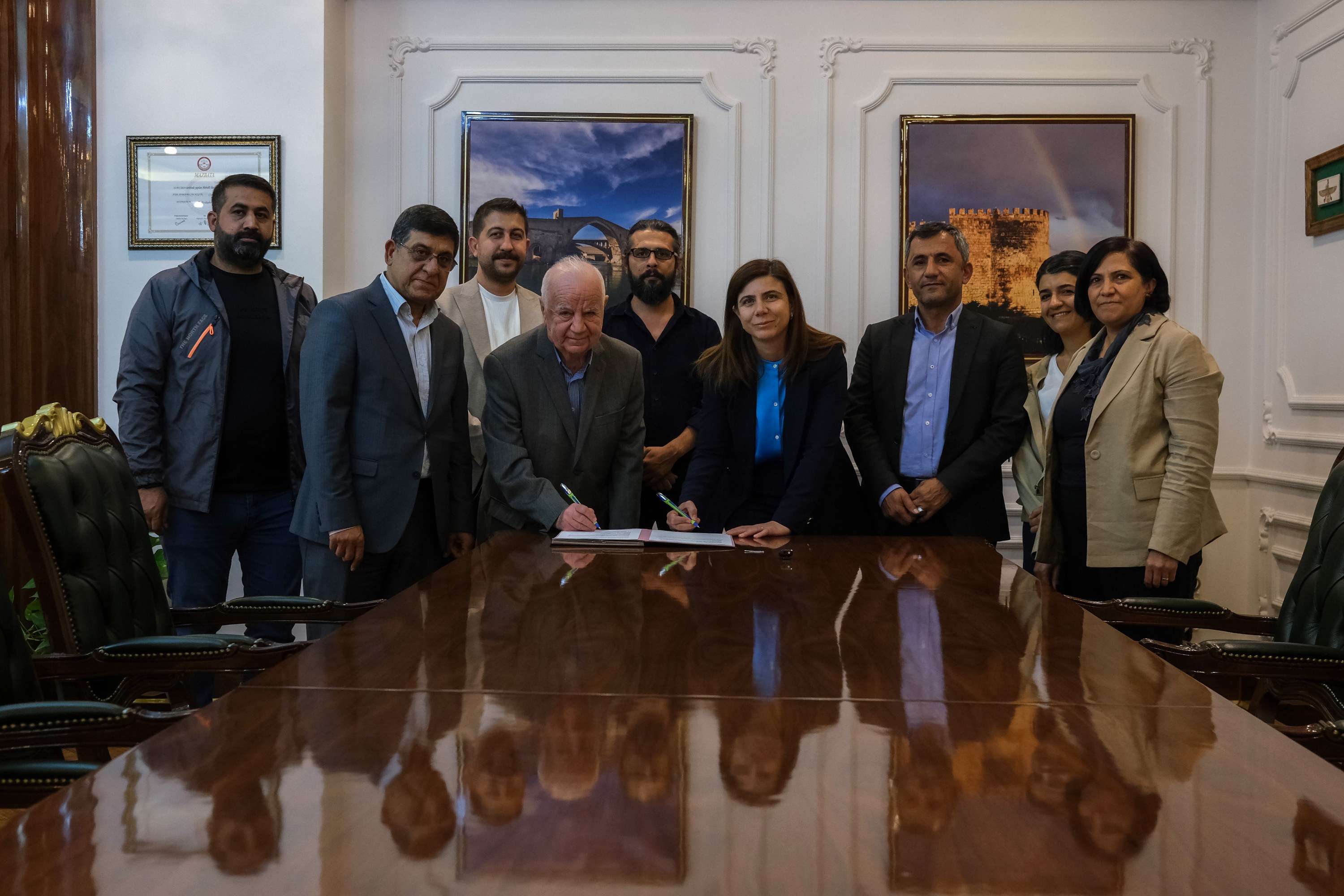 The protocol was signed by Diyarbakır Metropolitan Municipality Co-Mayor Serra Bucak and Foundation Chair Ergün Ayık. The signing ceremony was attended by Co-Mayor Bucak, Foundation Chair Ergün Ayık, Vice-Chair Ohannes Gafur Ohanyan, Head of the Department of Culture and Social Affairs Zeynep Yaş, member of the Council’s Commission on Faith and Minorities İbrahim Türkay and member of the Council’s Culture Commission Redur Dijle.
