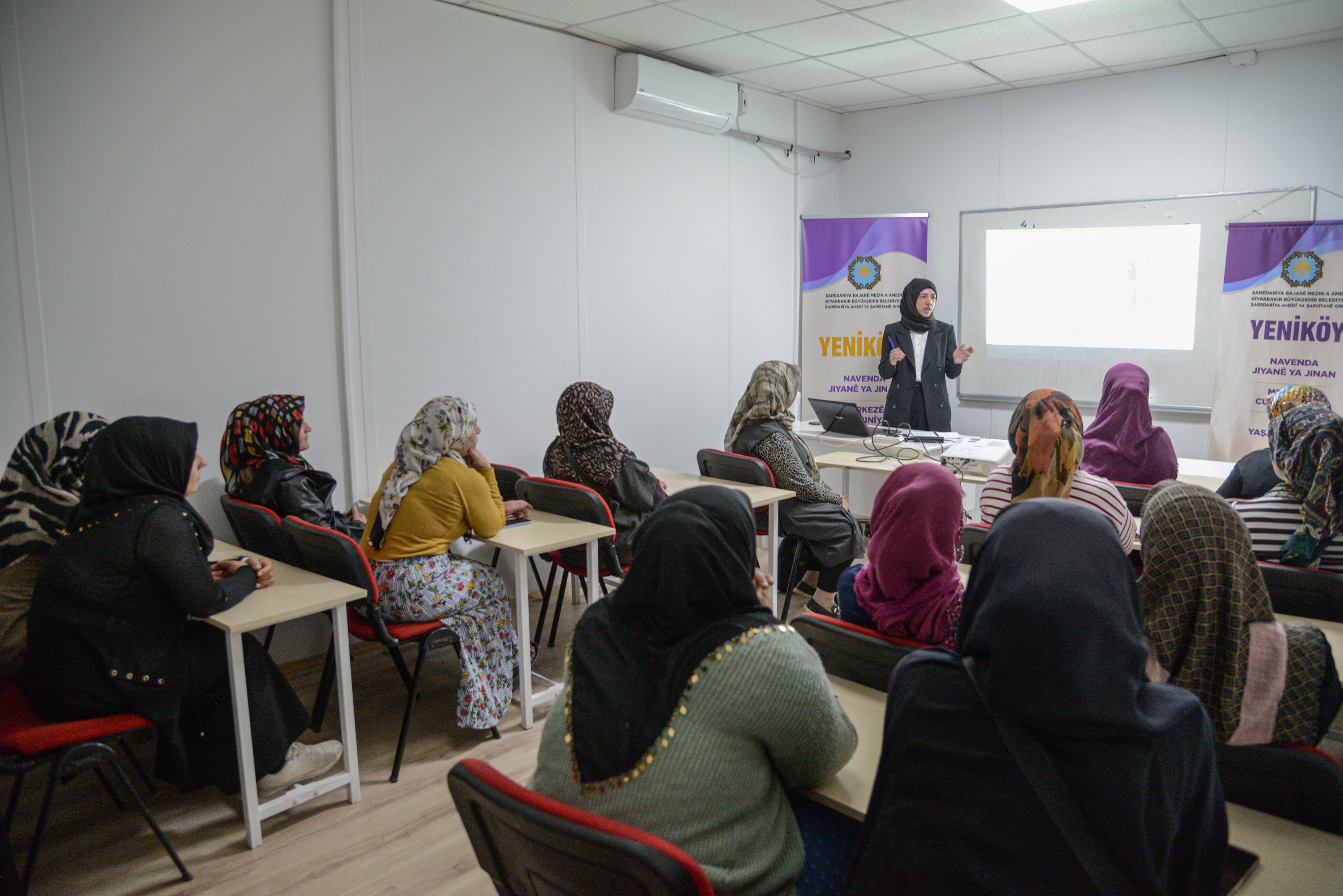 Within this scope, women attending courses at the Yeniköy Women’s Centre, which operates under the Department of Women’s and Family Services, received training on violence and gender issues.