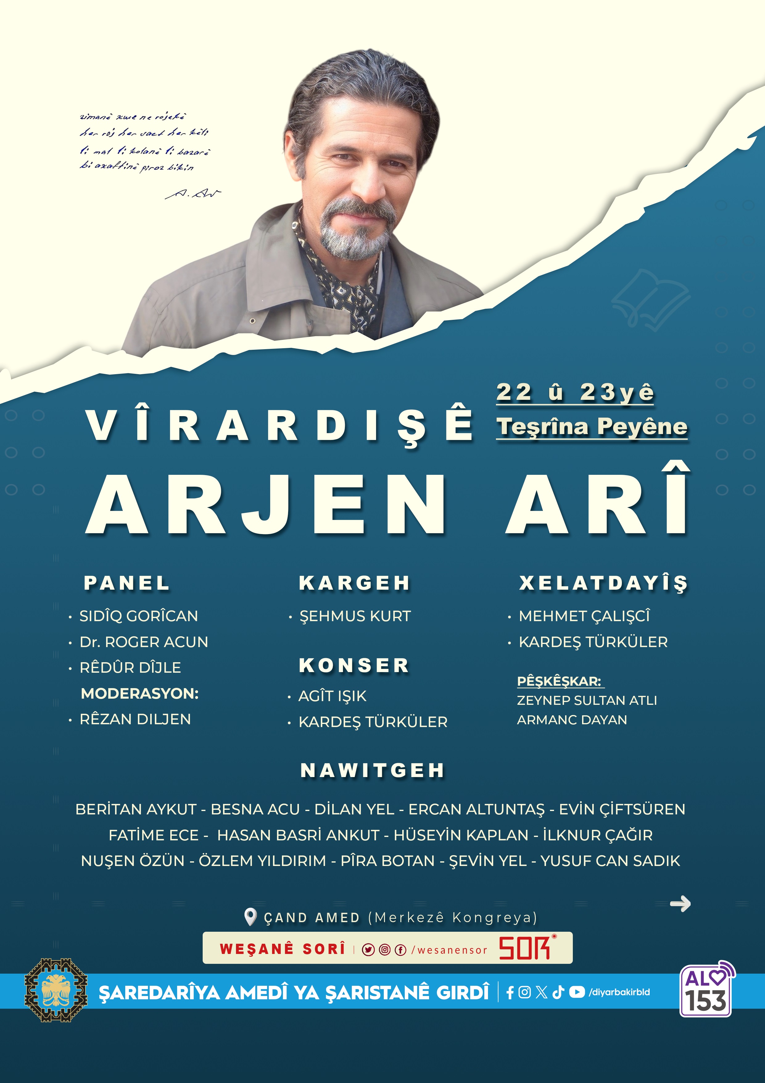 At 19:00, a panel discussion entitled “What Does Arjen Arî Tell Us?” will be held, with Sidîq Gorîcan, Dr Roger Acun and Rêdûr Dîjle as speakers.