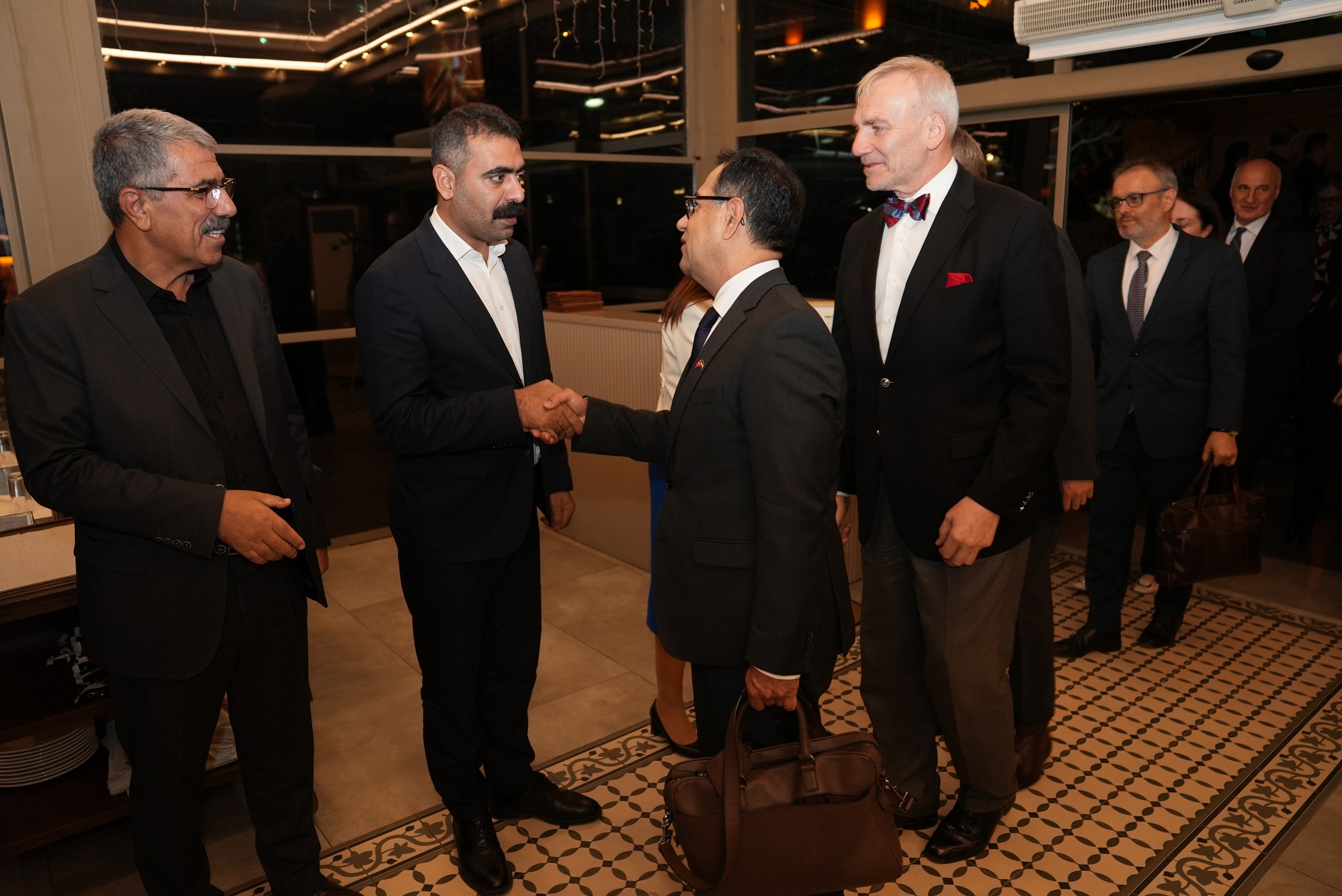 Co-Mayors Serra Bucak and Doğan Hatun, Council Co-Spokesperson Demet Ceylan, and the co-mayors of Kayapınar, Sur, Yenişehir and Bağlar districts came together at a dinner in a hotel with European Union (EU) Delegation to Türkiye Chargé d’Affaires Jurgis Vilcinskas and a delegation of ambassadors from EU member states France, Austria, Portugal, Belgium, Ireland, Bulgaria, Estonia, Greece, Latvia, Lithuania, Luxembourg, Malta, Romania, Slovakia, Slovenia and Sweden, who are holding a series of meetings in Diyarbakır.