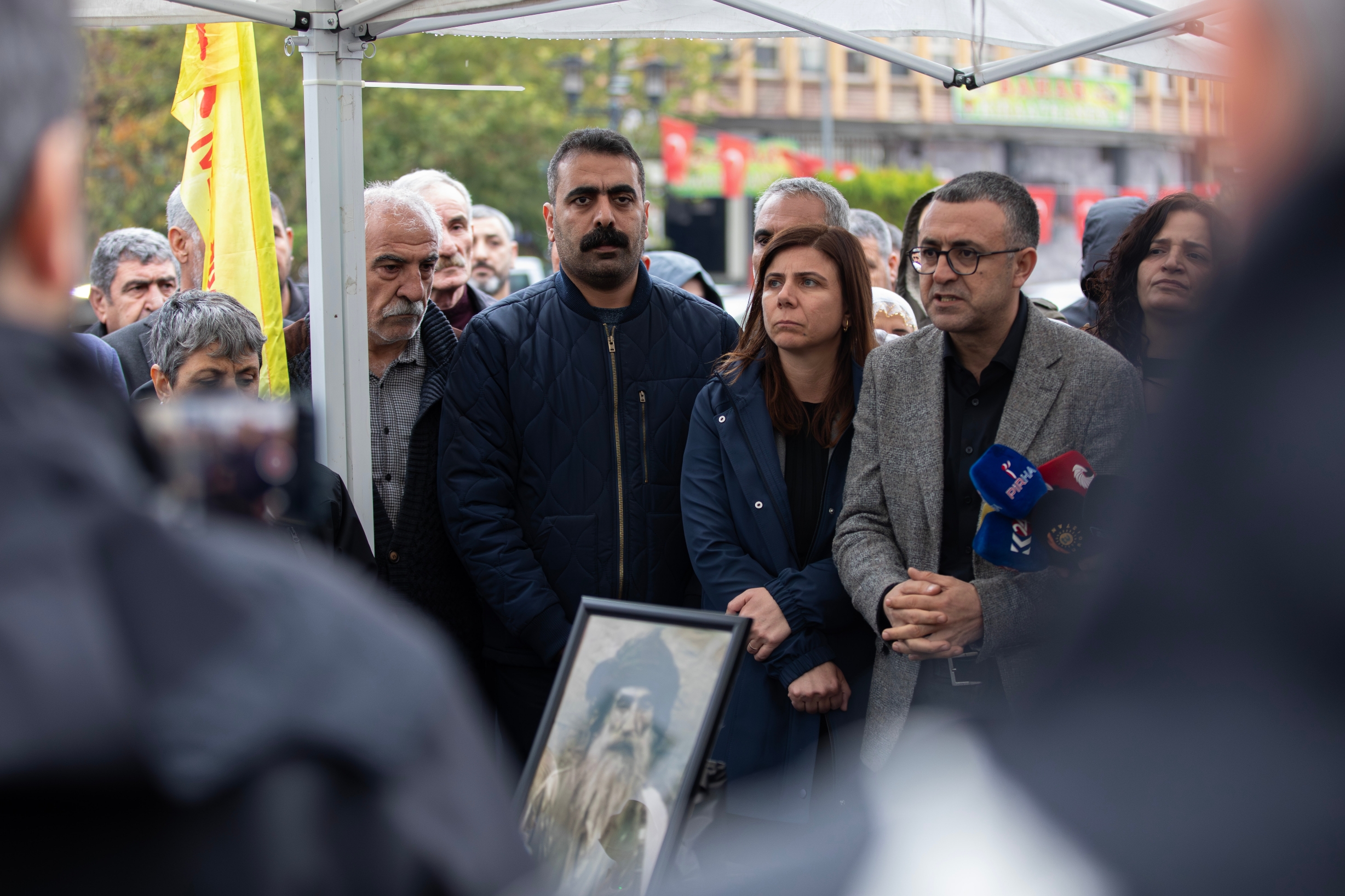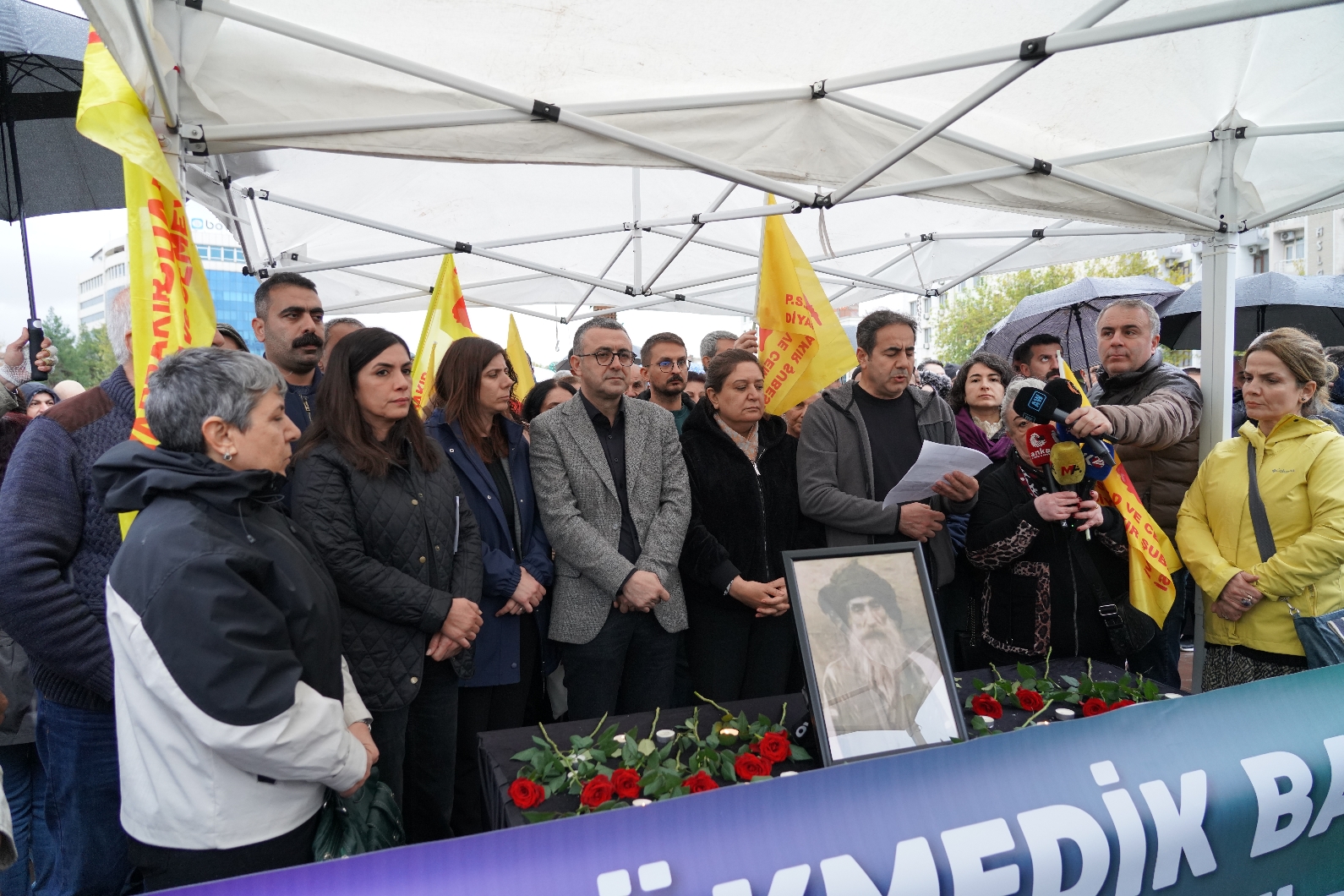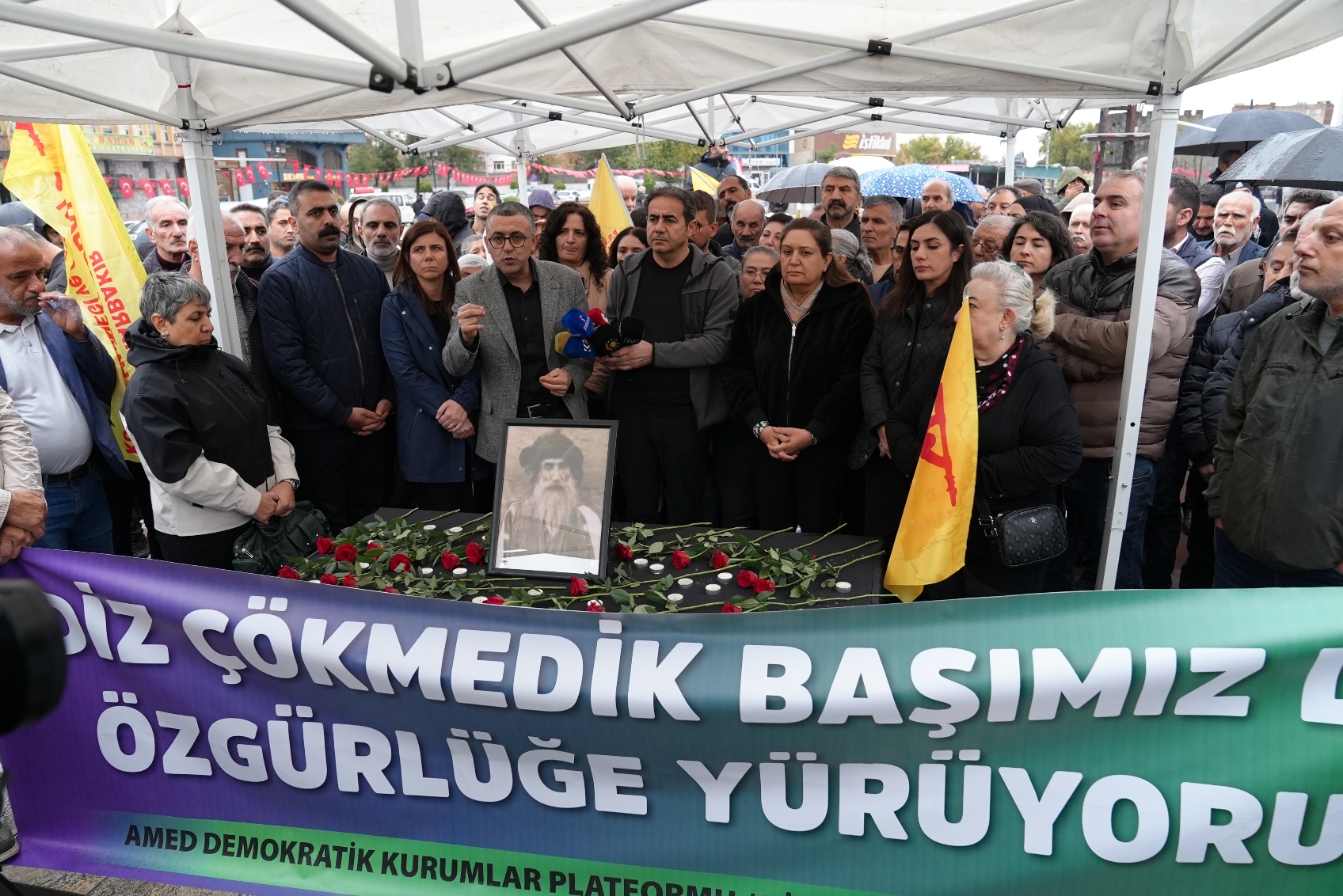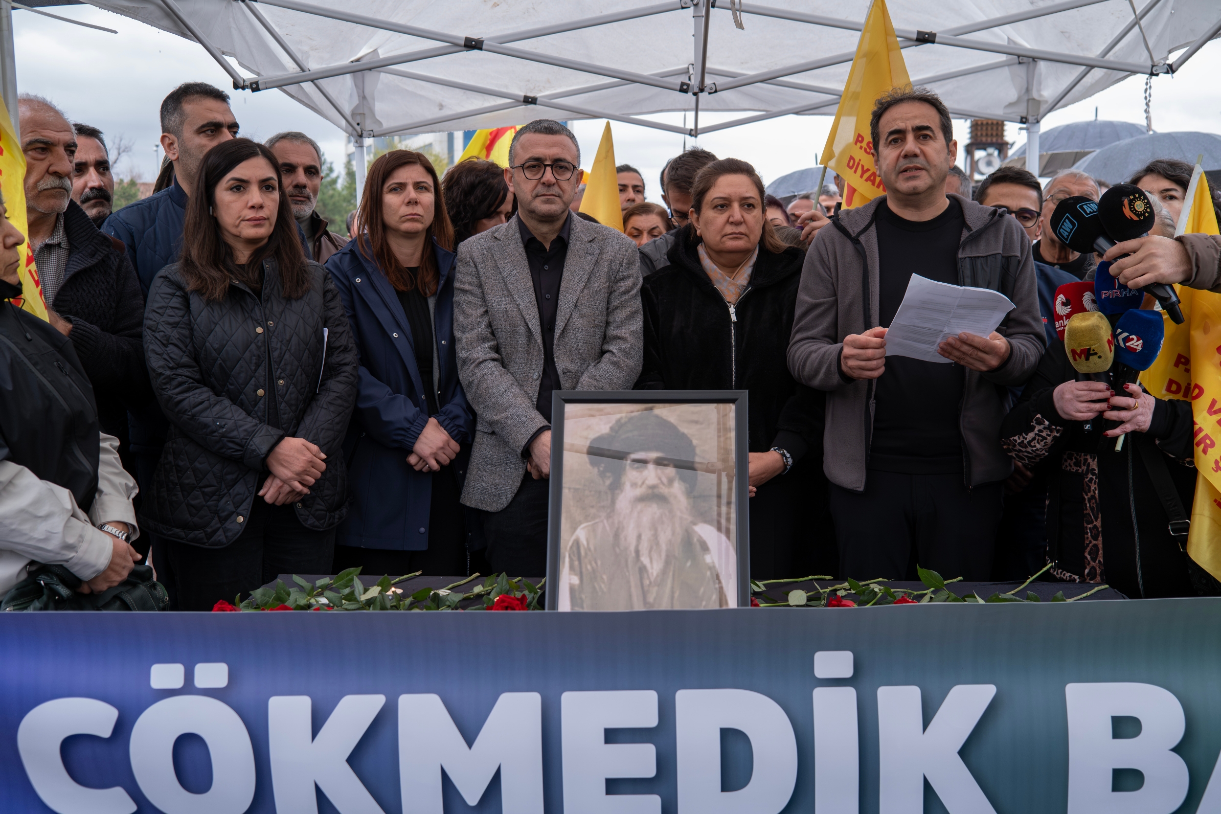 The commemoration at Dağkapı Square was organised by the Pir Sultan Abdal Culture Association and the Democratic Institutions Platform. In addition to the Co-Mayors of Diyarbakır Metropolitan Municipality, the event was attended by co-mayors of district municipalities, representatives of democratic mass organisations, DEM Party Diyarbakır MP Serhat Eren, DEM Party Diyarbakır Provincial Co-Chair Gülşen Özer, Abbas Şahin and a large number of residents.