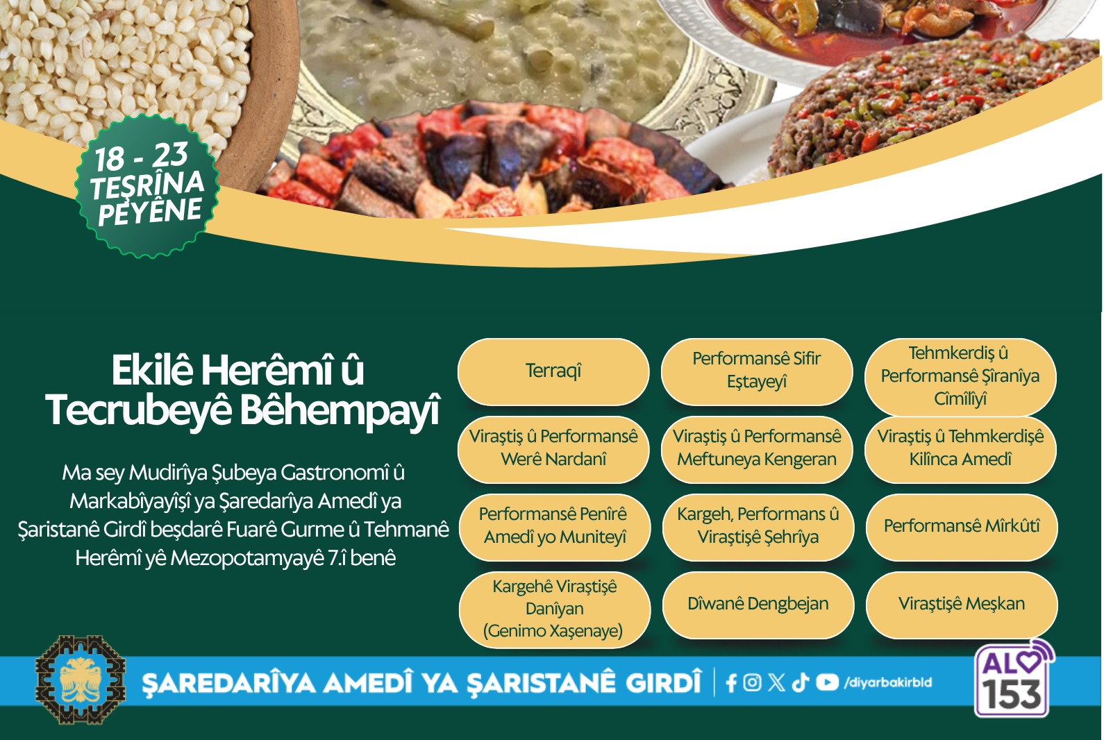 Diyarbakır Metropolitan Municipality will promote Diyarbakır’s cuisine at the 7th Mesopotamia Gourmet Fair, to be held from 18 to 23 November.