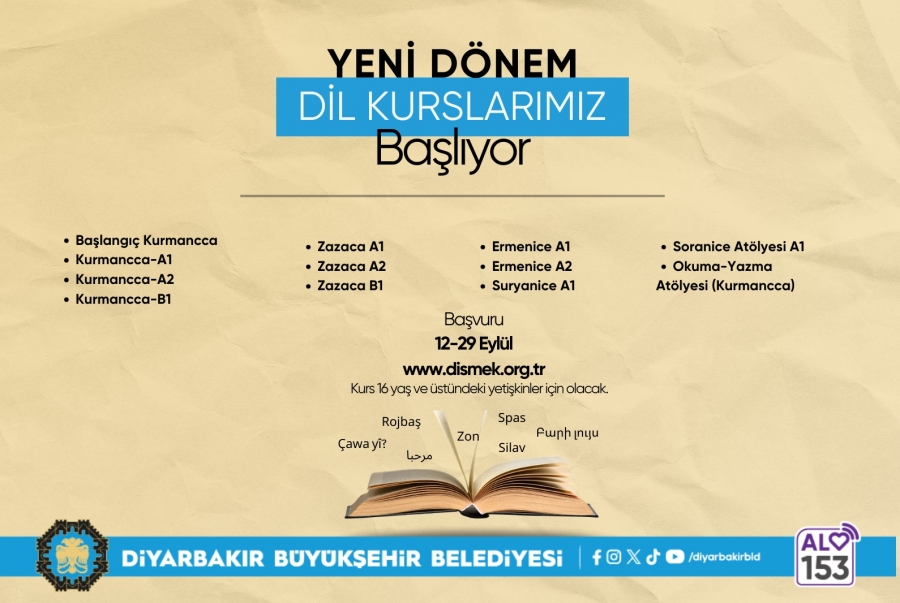 Diyarbakır Metropolitan Municipality has started accepting applications for its autumn term language courses.