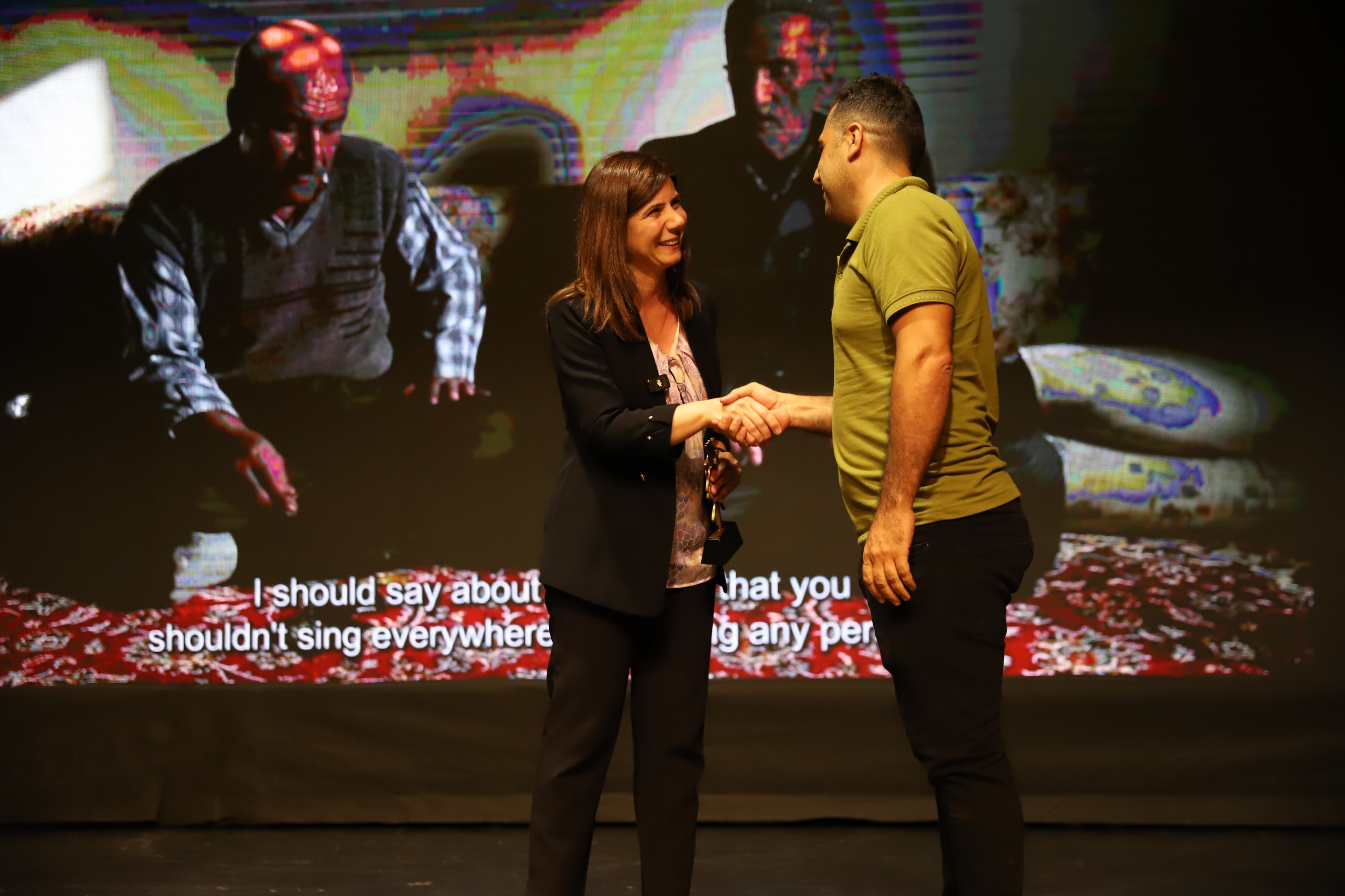 Following her speech, Co-Mayor Bucak presented the award to the documentary’s director, Adnan Zandi.