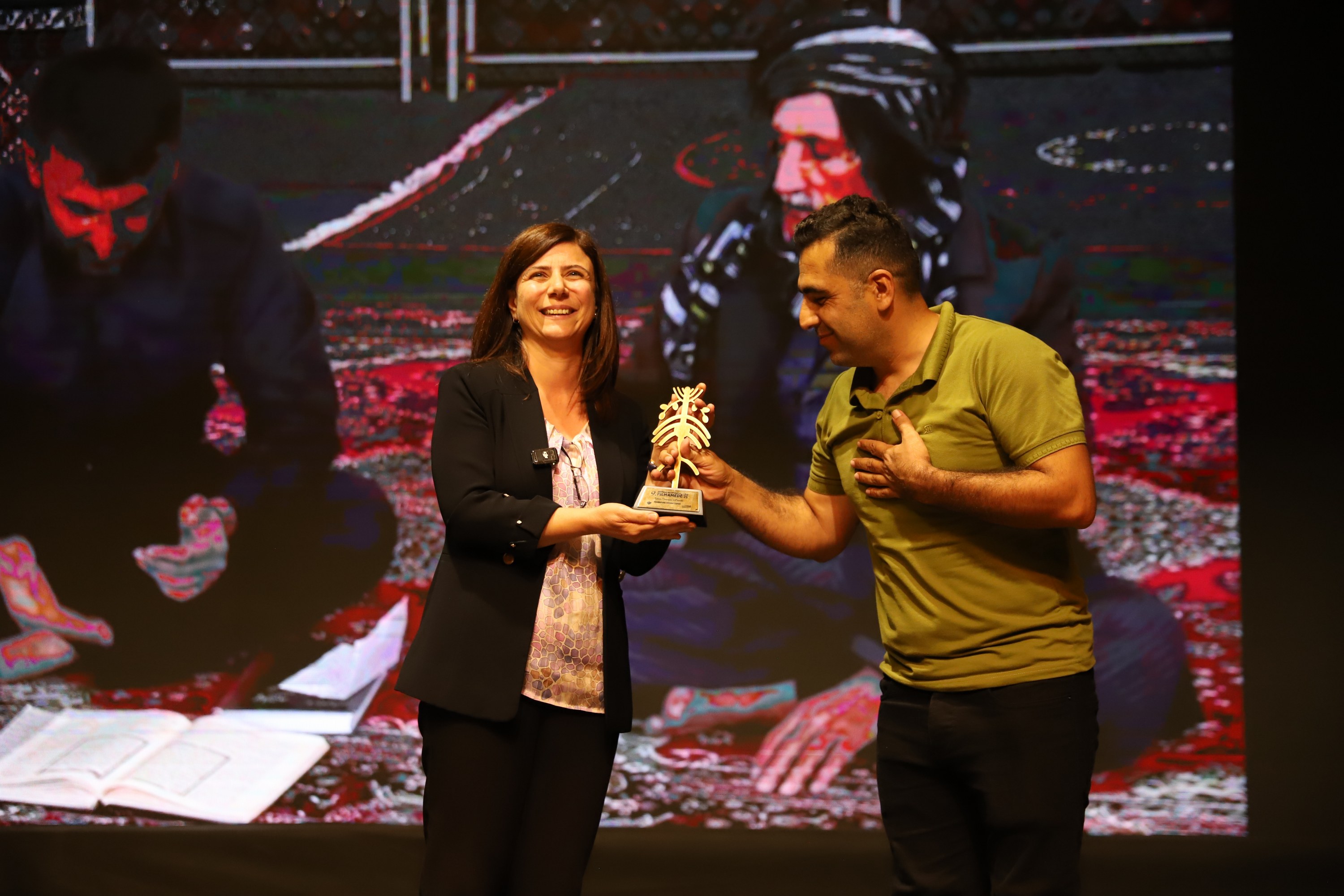 Diyarbakır Metropolitan Municipality Co-Mayor Serra Bucak attended the awards ceremony of the 9th FilmAmed Documentary Film Festival and presented an award to director Adnan Zandi for his film produced under the theme “Ecology: From Roots to the Future – Hevsel Gardens.”