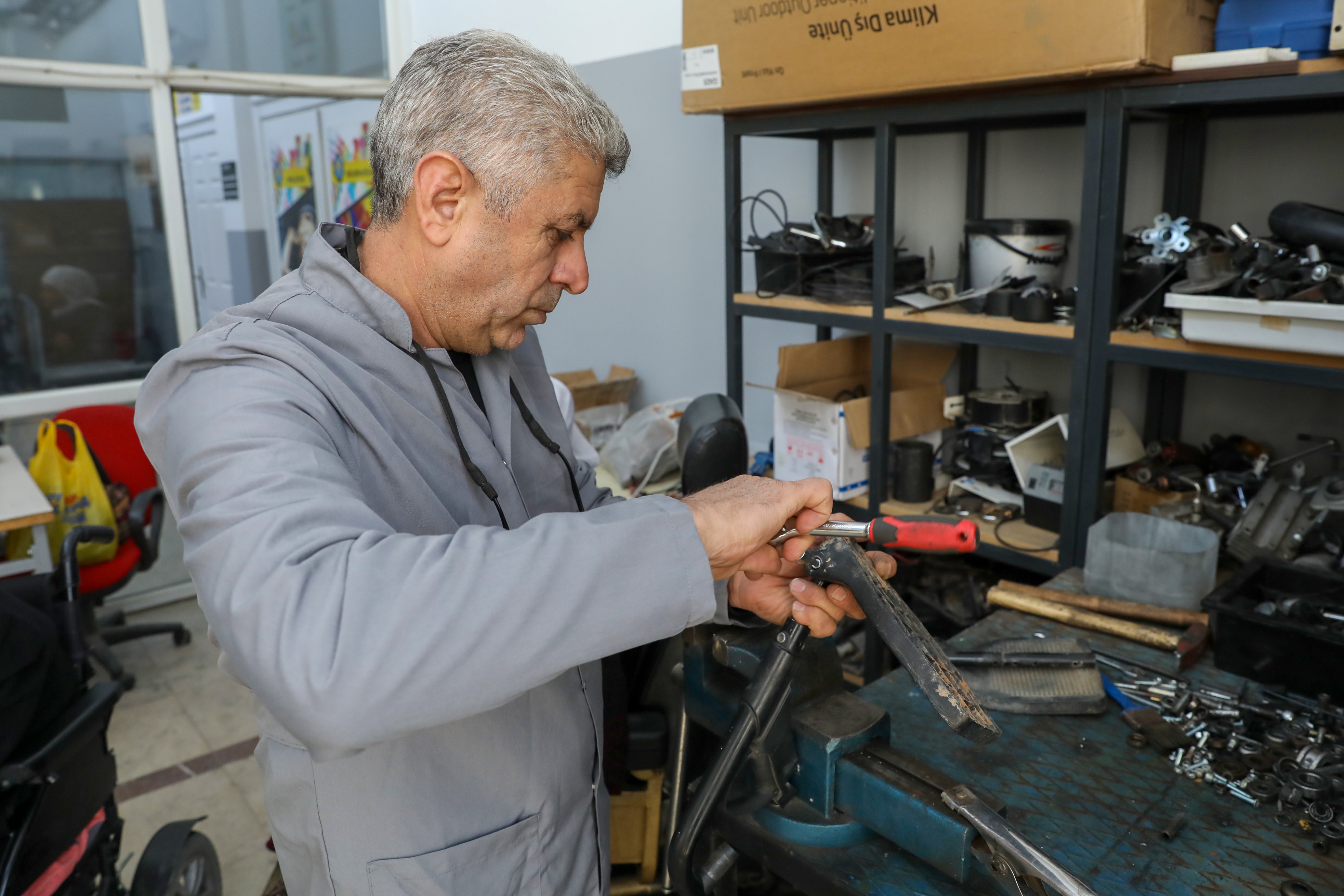 Noting that the workshop is in high demand, Baran said that an average of 20 wheelchairs are repaired each week. Providing information about the services delivered, he stated: