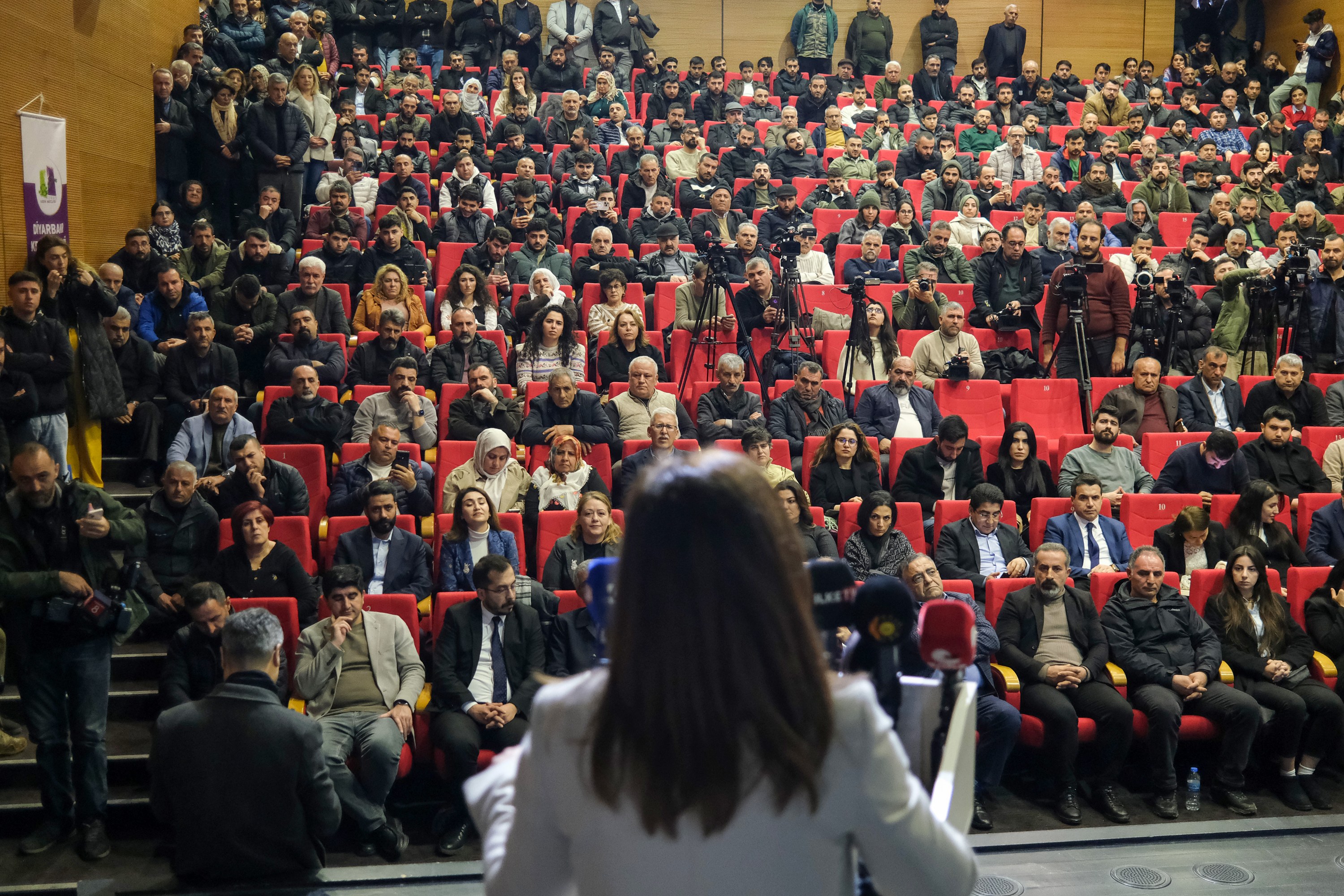 In addition to Co-Mayors Serra Bucak and Doğan Hatun, attendees included DEM Party Diyarbakır MP Serhat Eren, CHP Diyarbakır MP Sezgin Tanrıkulu, co-mayors of district municipalities, representatives of civil society organisations, City Council components, and local residents.