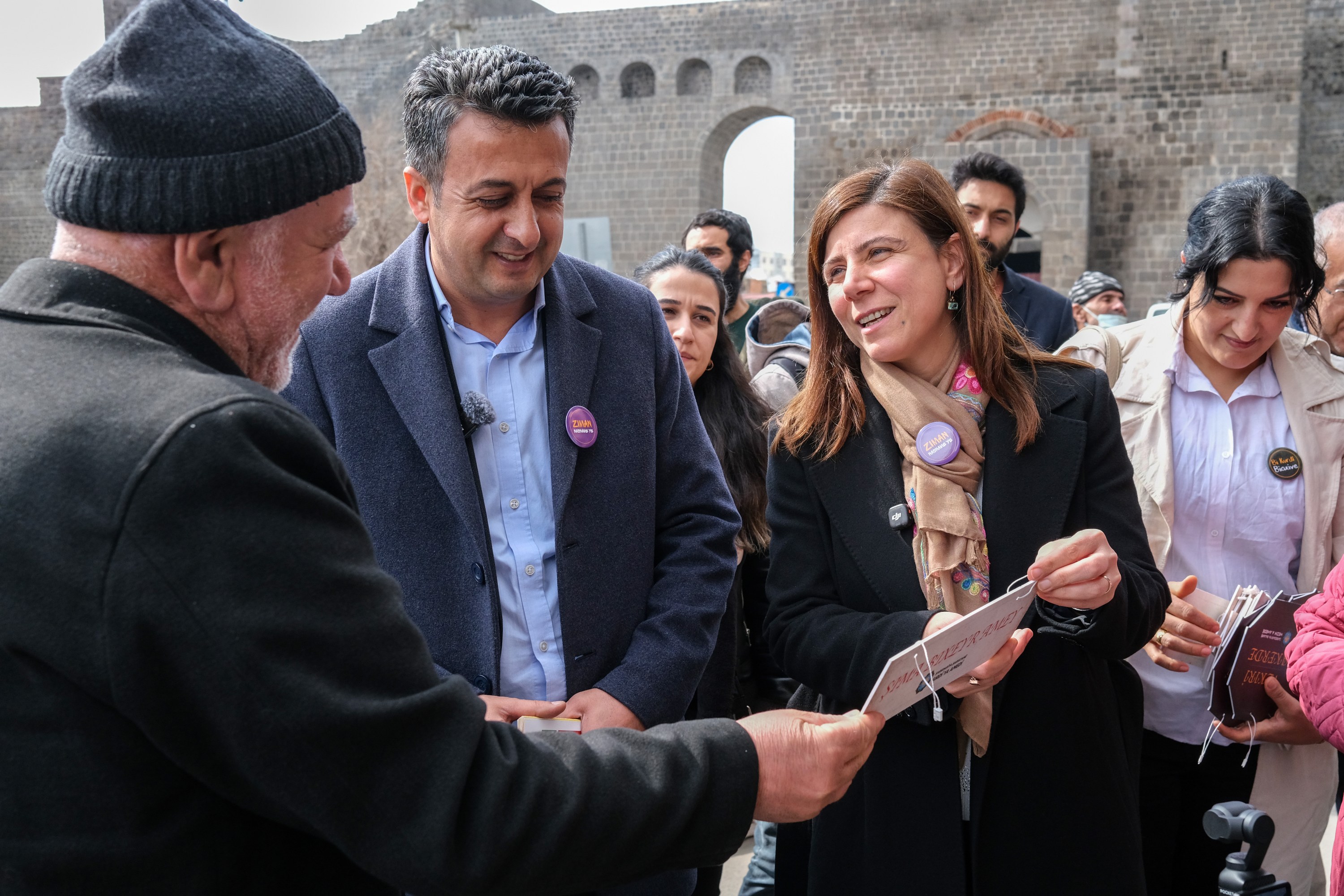 Diyarbakır Metropolitan Municipality Co-Mayor Serra Bucak visited local traders in Sur as part of International Mother Language Day on 21 February, drawing attention to the visibility of mother tongues in public spaces.