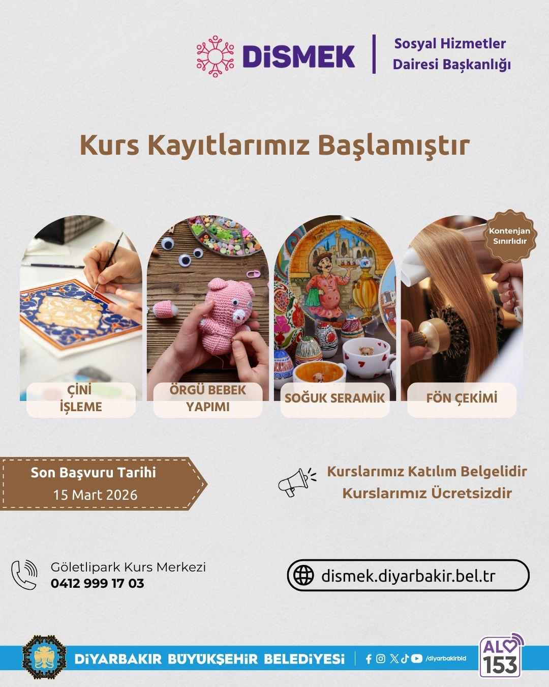 Diyarbakır Metropolitan Municipality has launched the registration process for four new courses under DİSMEK, aiming to contribute to the vocational and artistic development of residents living in the city.