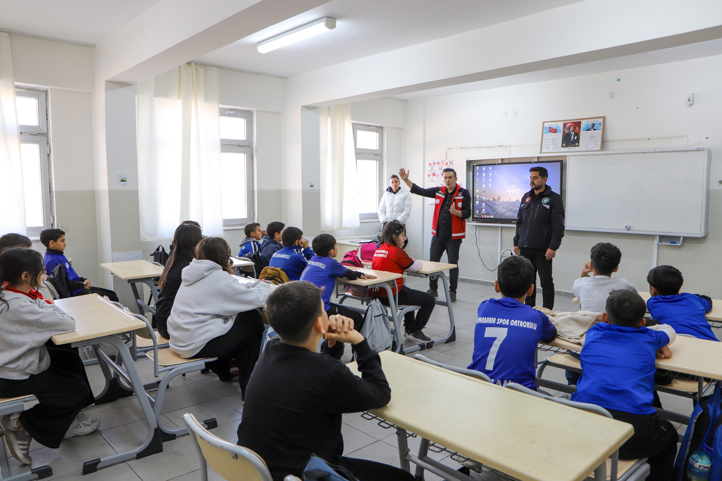 Before the practical exercise, high school students were briefed in three separate classrooms by three different teams on what should be done in disaster situations, particularly during earthquakes. During these sessions, the teams also shared their experiences from the 6 February 2023 earthquakes centred in Pazarcık and Elbistan, districts of Kahramanmaraş. Students were also given the opportunity to ask questions about disasters and emergency response.