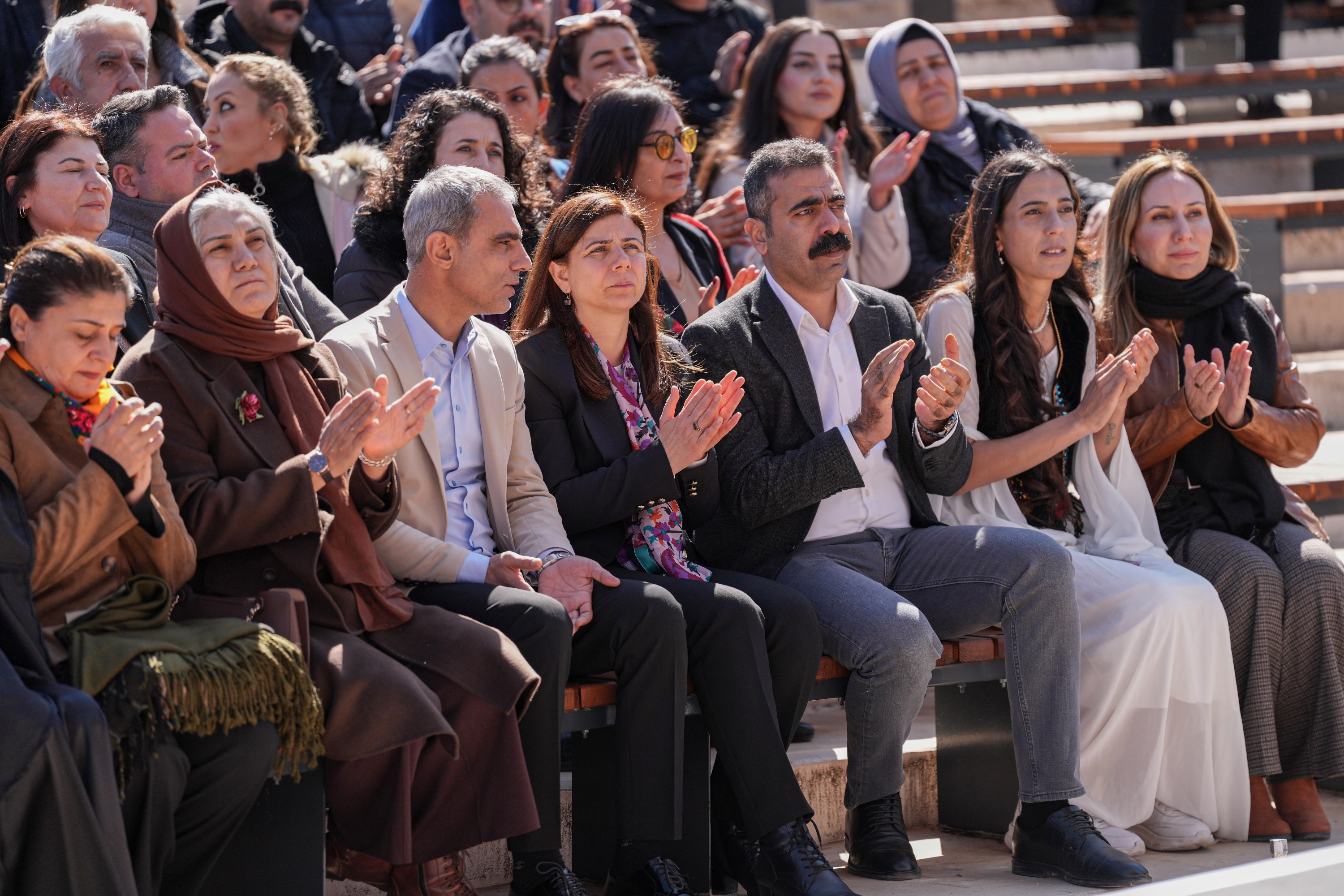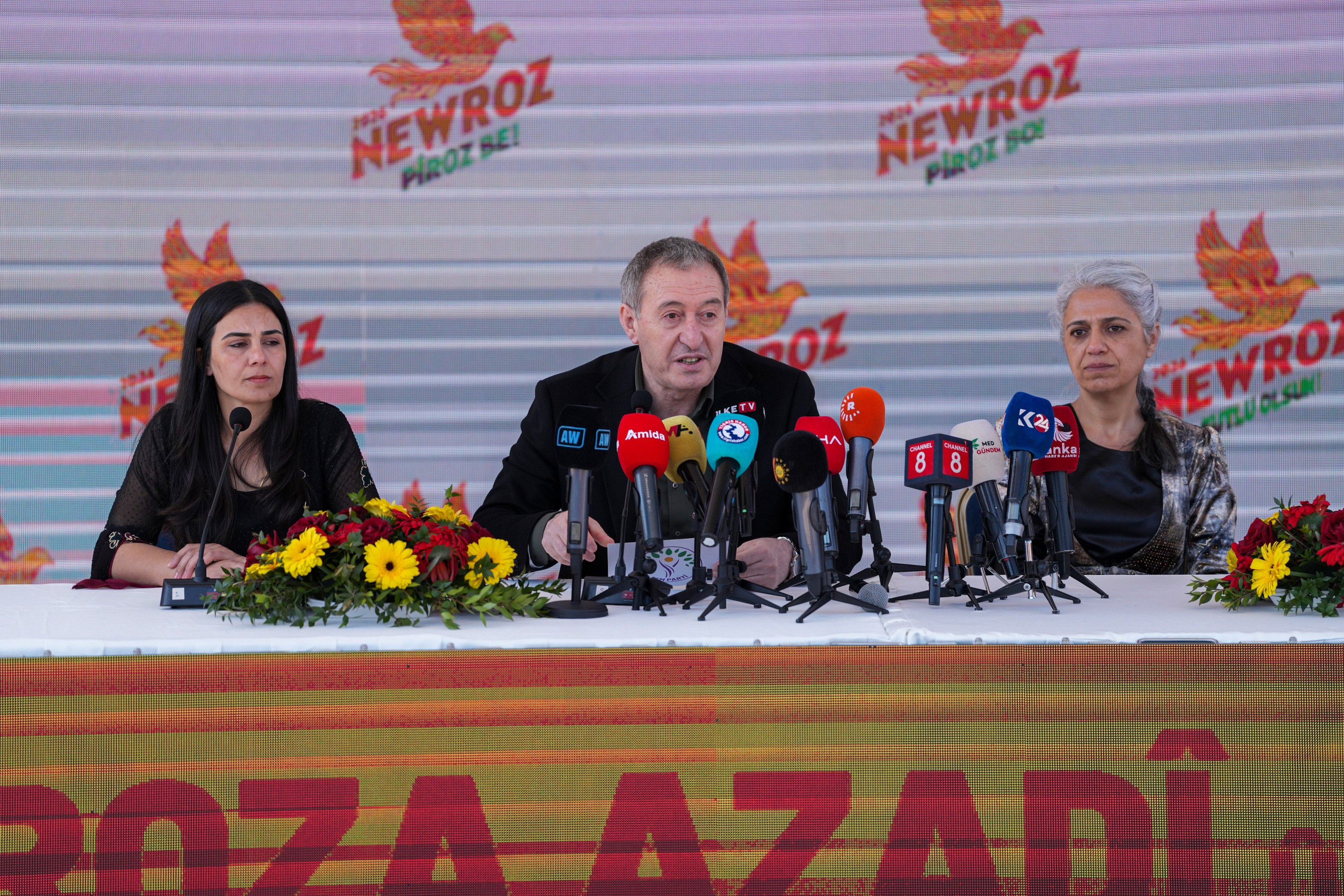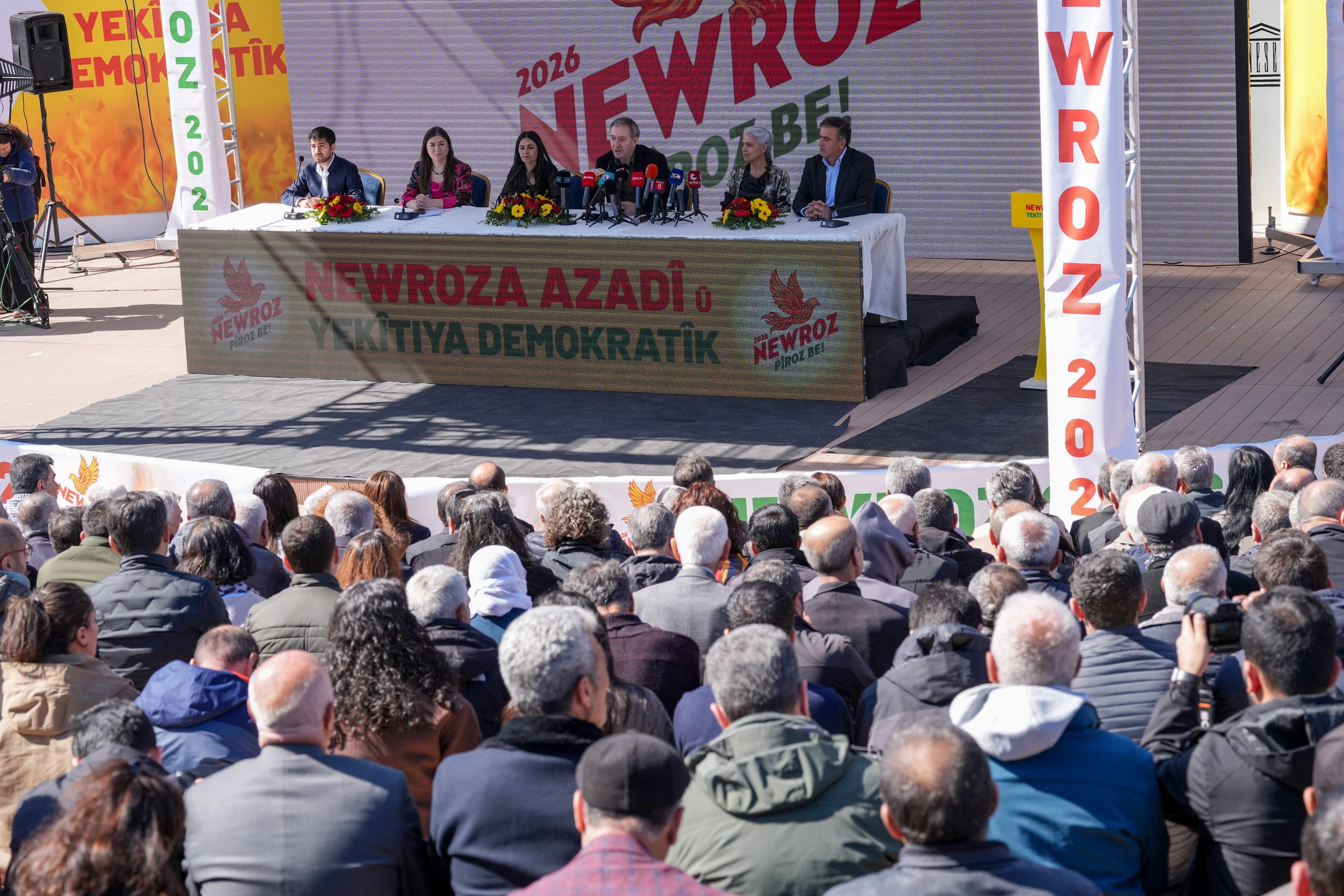 A declaration was announced in Diyarbakır regarding this year’s Newroz celebrations, which will be held in at least 53 centres. Those attending the statement at Sümerpark included Diyarbakır Metropolitan Municipality Co-Mayors Serra Bucak and Doğan Hatun; Democratic Regions Party (DBP) Co-Chairs Çiğdem Kılıçgün Uçar and Keskin Bayındır; Peoples’ Equality and Democracy Party (DEM Party) Co-Chair Tuncer Bakırhan; Democratic Unity Initiative Co-Spokesperson Mehmet Kamaç; DBB Council Co-Spokespersons Demet Ceylan and Ayhan Karatekin; as well as council members and representatives of political parties and civil society organisations.