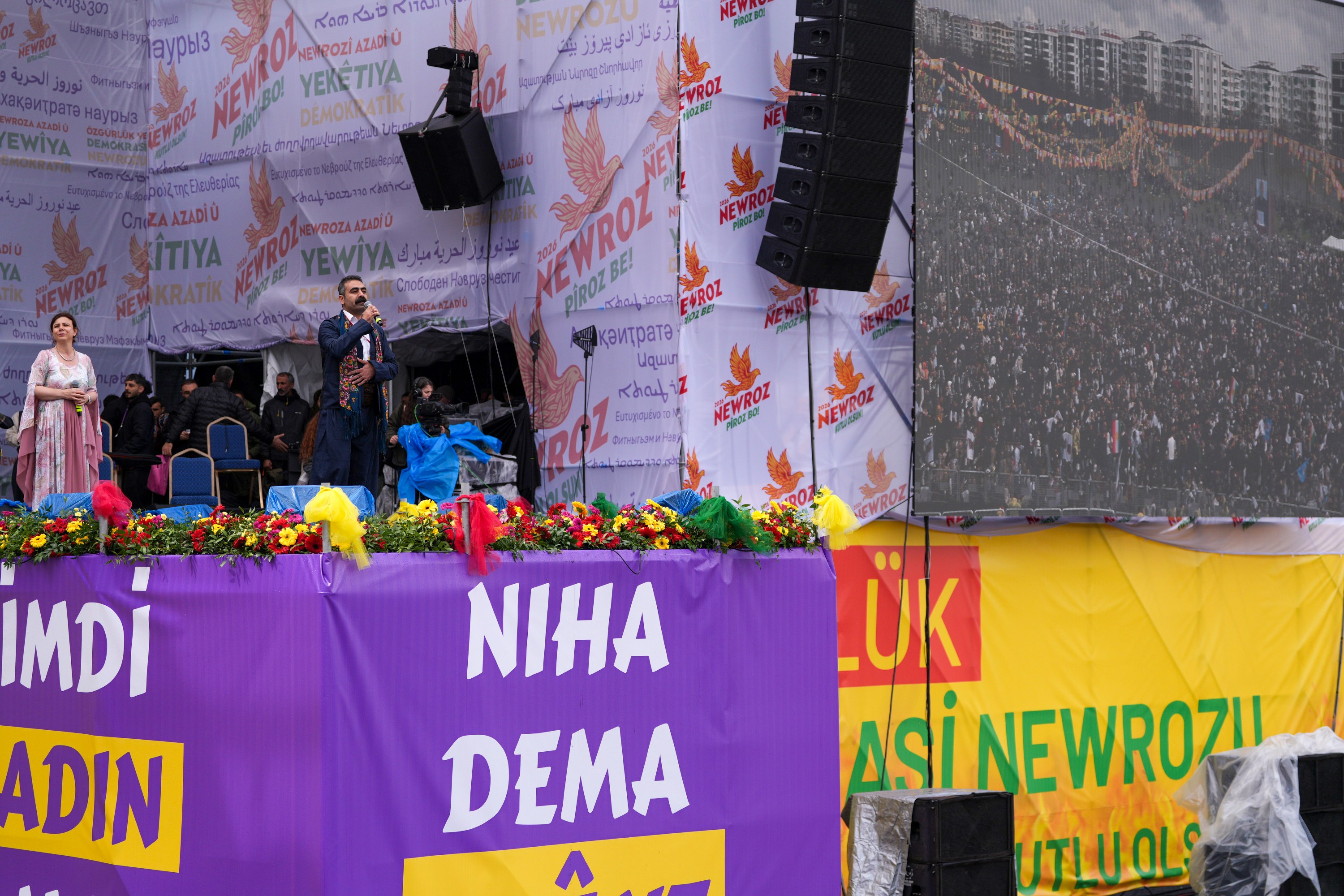 Speaking at the Newroz celebrations in Newroz Park in Bağlar district, attended by hundreds of thousands of people, Diyarbakır Metropolitan Municipality Co-Mayors Serra Bucak and Doğan Hatun said that the voice of freedom was rising from the streets of Amed and expressed the hope that Newroz would bring peace and freedom.