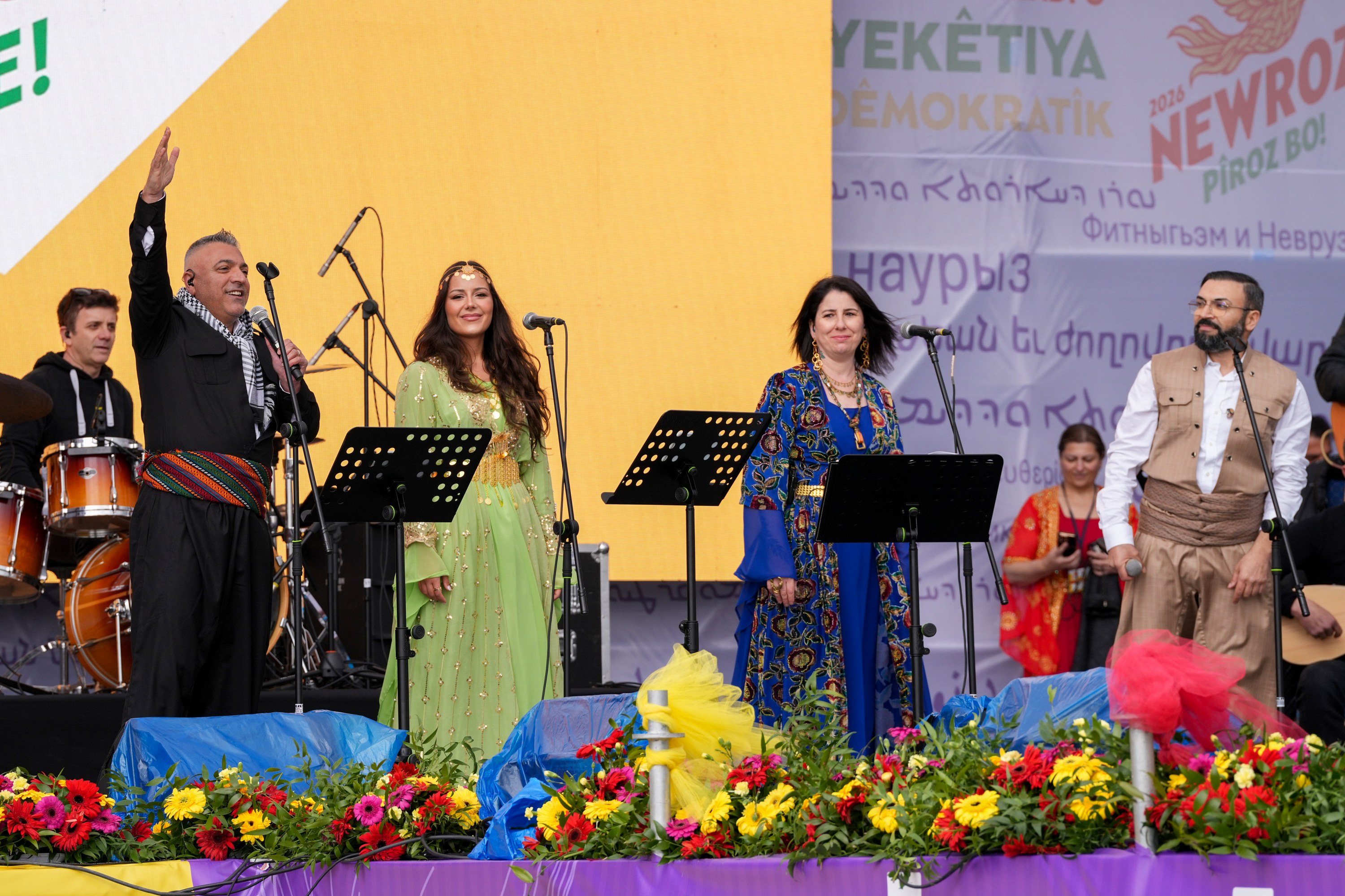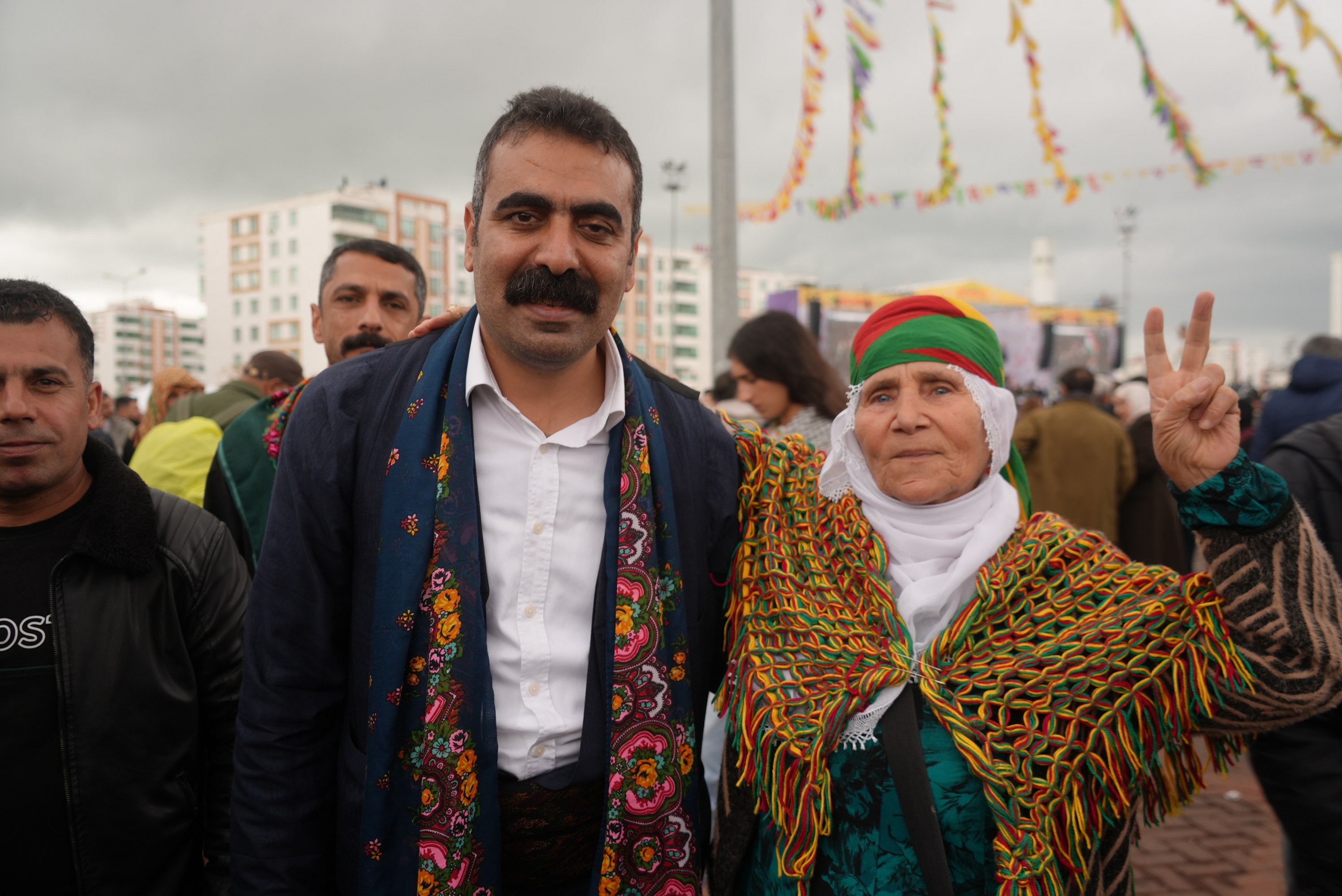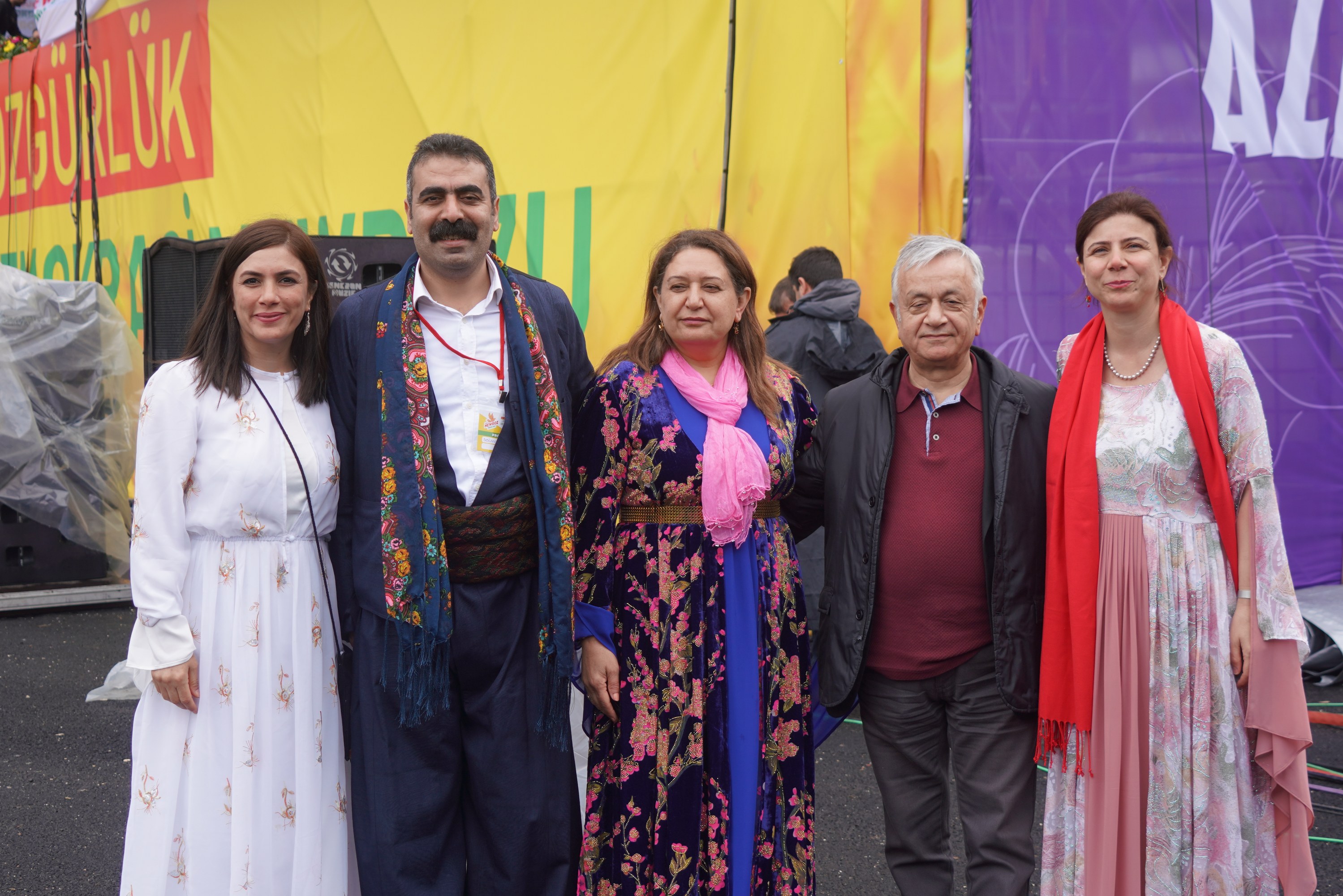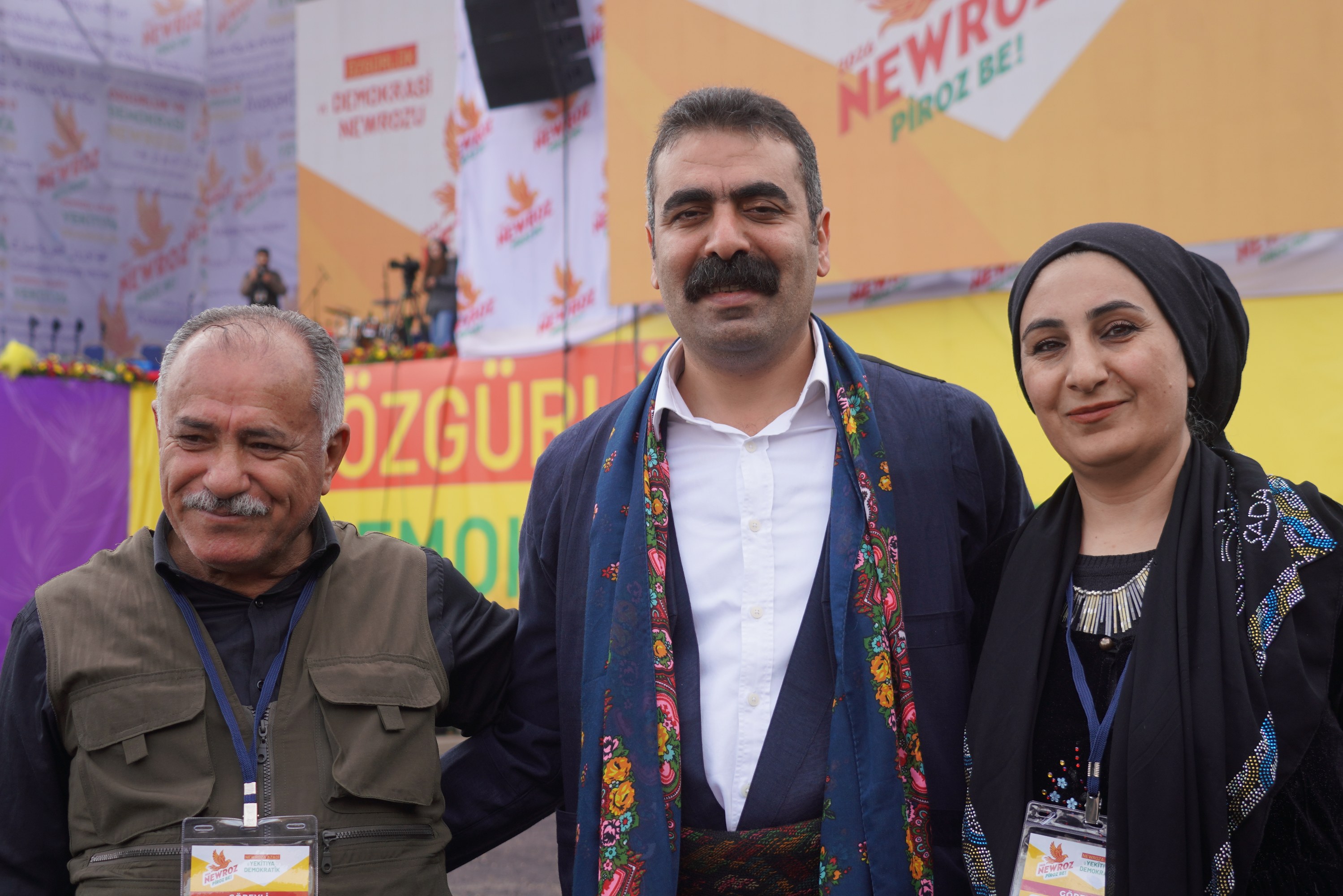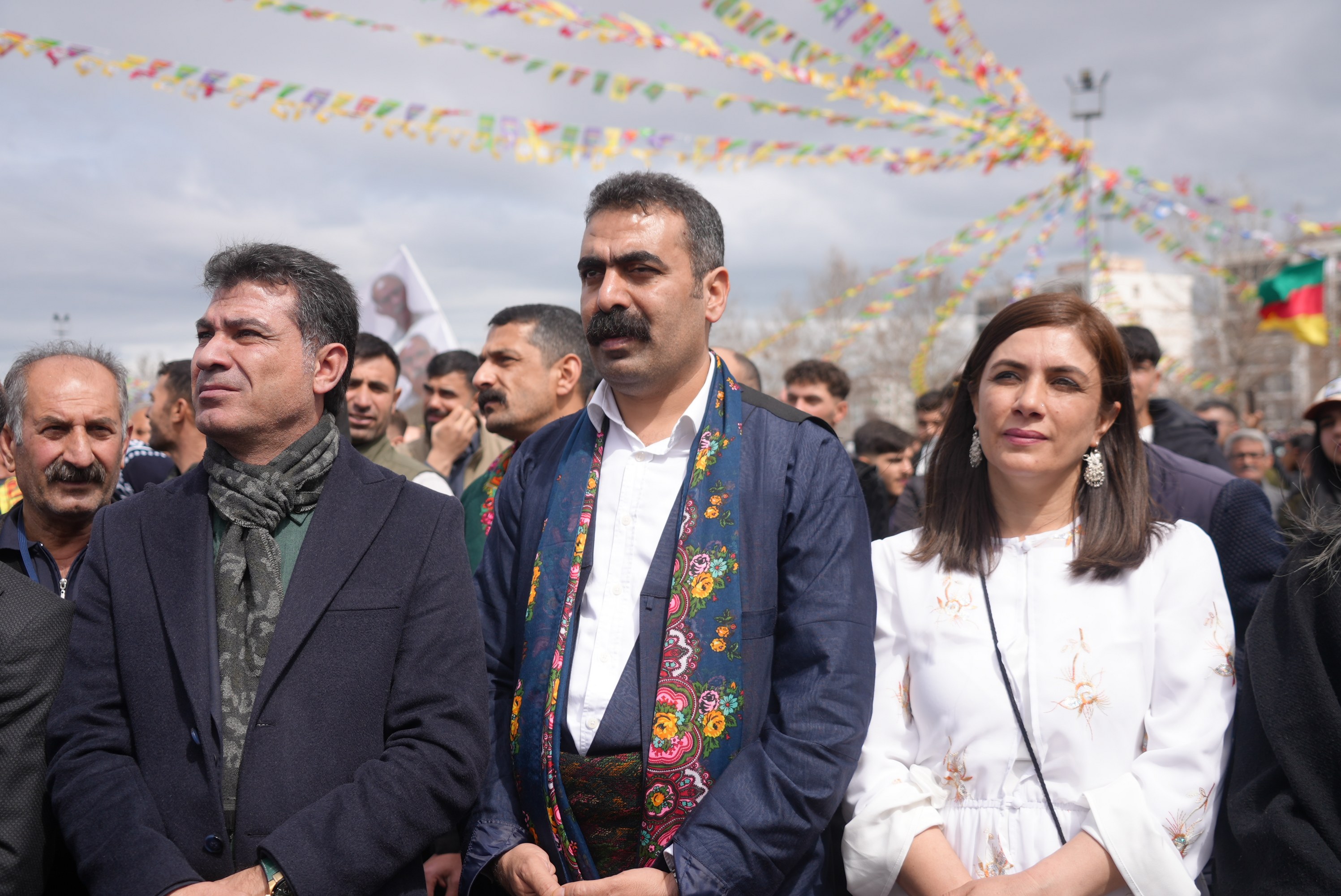 A commemoration was held for university student Kemal Kurkut, who was killed during Diyarbakır’s 2017 Newroz celebrations. Following this, Metropolitan Municipality Co-Mayors Bucak and Hatun took to the stage set up in Newroz Park and greeted the crowd of hundreds of thousands.