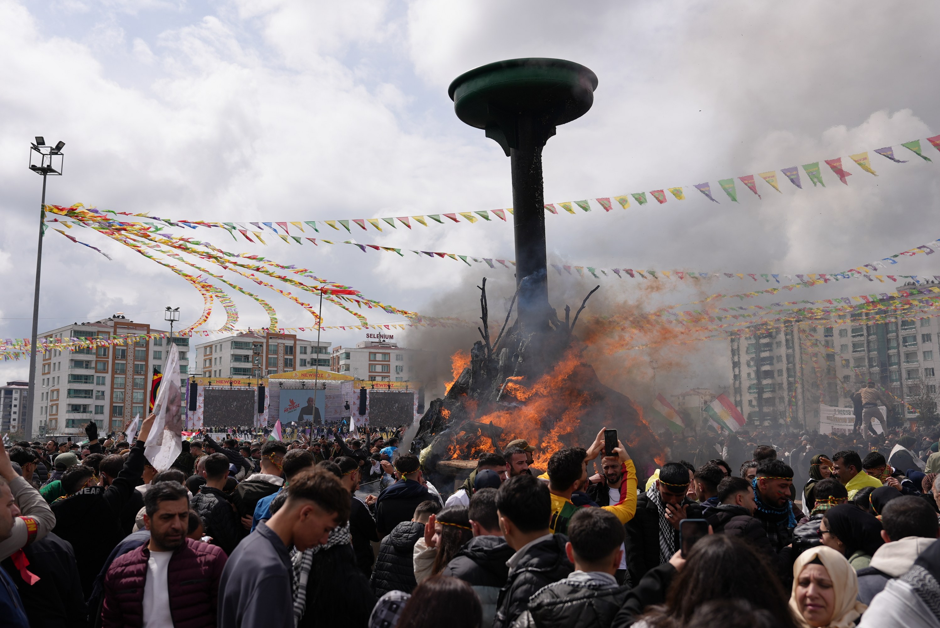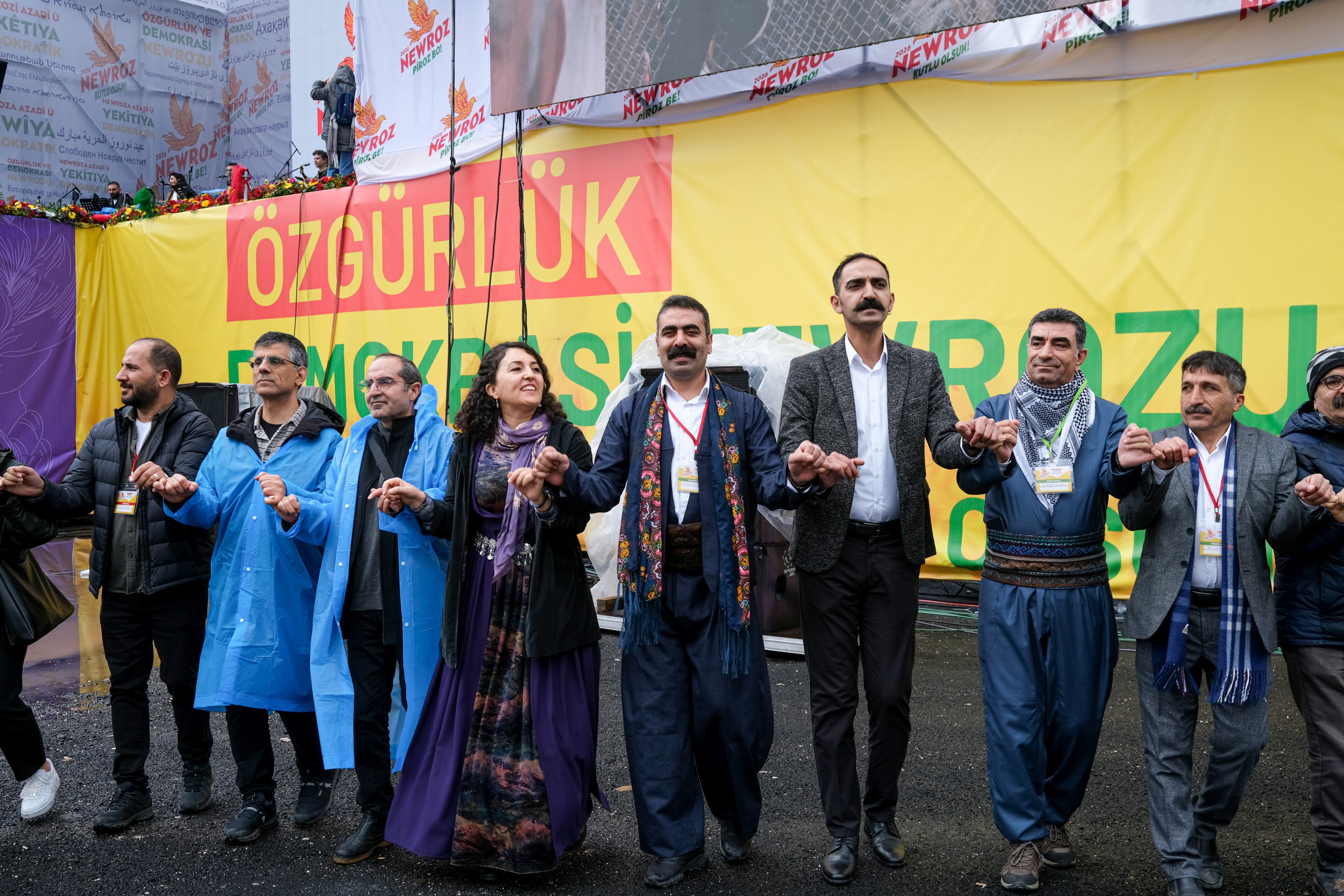 Newroz celebrations were held in Newroz Park in Diyarbakır’s Bağlar district under the slogan “Newroz of Freedom and Democracy”. Alongside the Metropolitan Municipality Co-Mayors Serra Bucak and Doğan Hatun, those attending included Democratic Regions Party (DBP) Co-Chairs Çiğdem Kılıçgün Uçar and Keskin Bayındır, Peoples’ Equality and Democracy Party (DEM Party) Co-Chair Tuncer Bakırhan, Democratic Unity Initiative Co-Spokespersons Gülcan Kaçmaz Sayyiğit and Mehmet Kamaç, numerous representatives of political parties and civil society organisations from abroad, and hundreds of thousands of residents.