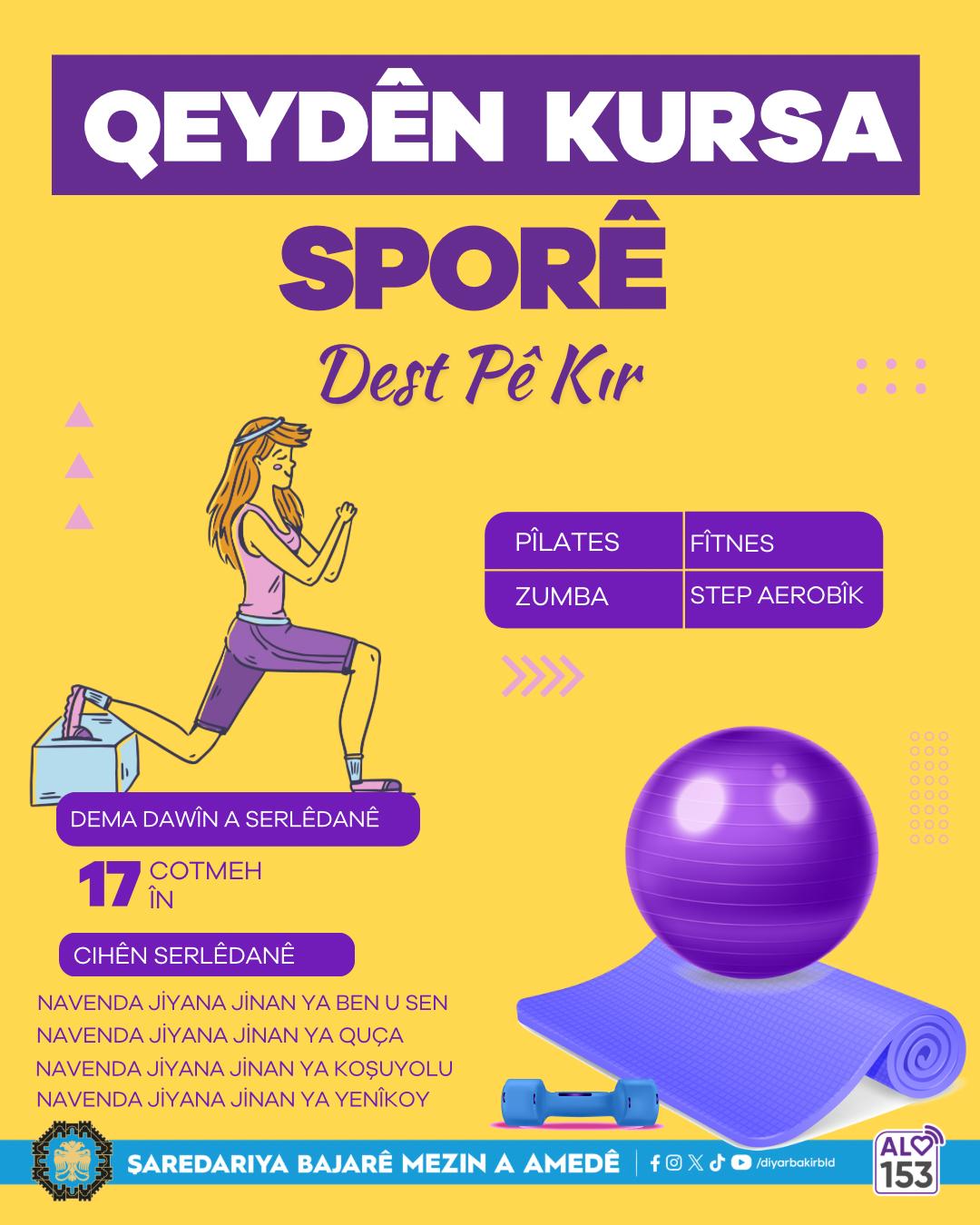 Spor kurslarına katılmak isteyenler 17 Ekim Cuma gününe kadar Ben û Sen, Quça, Koşuyolu ve Yeniköy Kadın Yaşam Merkezleri üzerinden başvuru yapılabilecek.