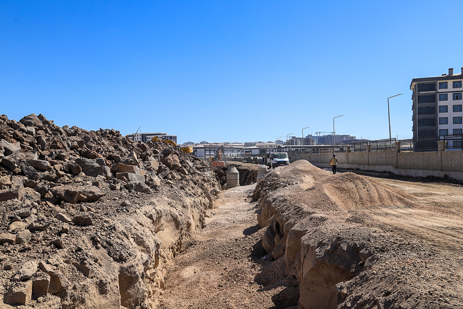 Diyarbakır Su ve Kanalizasyon İdaresi (DİSKİ) Genel Müdürlüğü Yatırım ve İnşaat Dairesi Başkanlığı, Şehir Hastanesinin altyapı sistemini kurmak amacıyla kapsamlı bir çalışma yürütüyor. Çalışmalar kapsamında bölgede muhtelif çaplarda 778 metre kanalizasyon hattı ve 3 bin 687 metre yağmursuyu hattı döşenecek. Bu hatlar, hastane kampüsü ve çevresindeki yerleşim alanlarının atık ve yağmursuyu yükünü güvenli biçimde taşıyacak şekilde projelendiriliyor. Proje, su taşkınları ve altyapı kaynaklı sağlık risklerini önlemeyi hedefliyor.